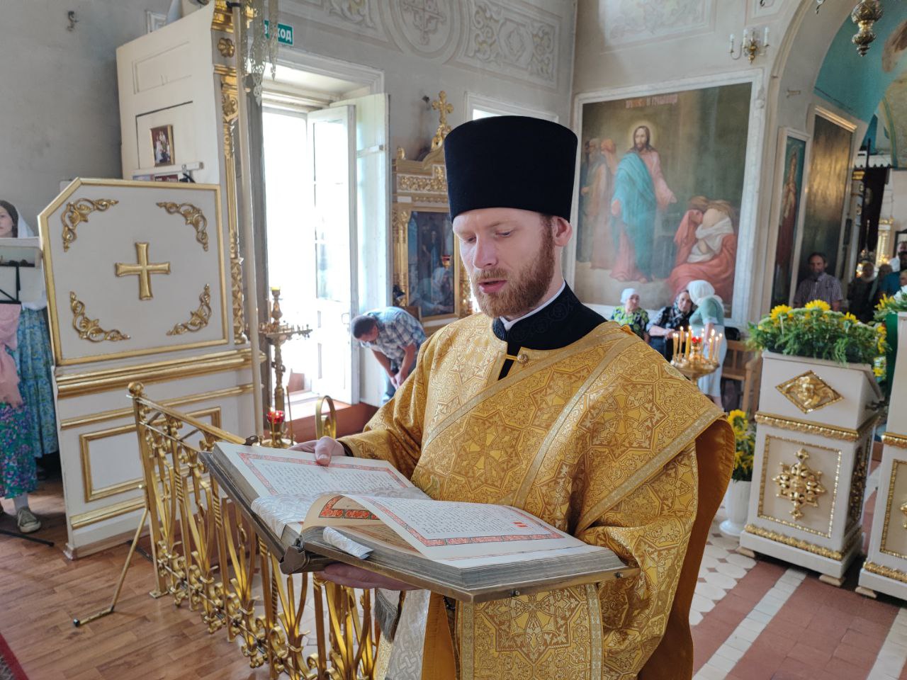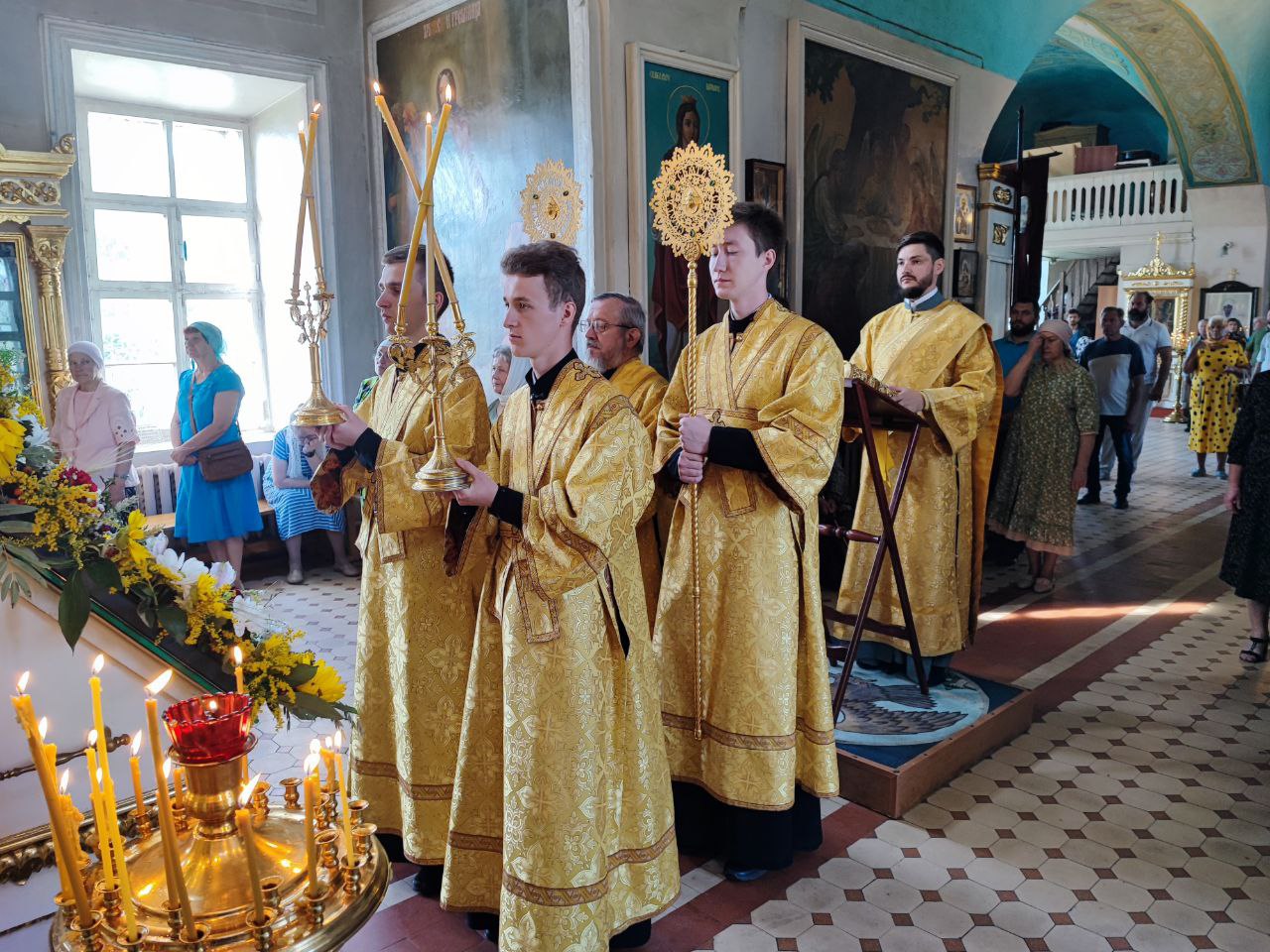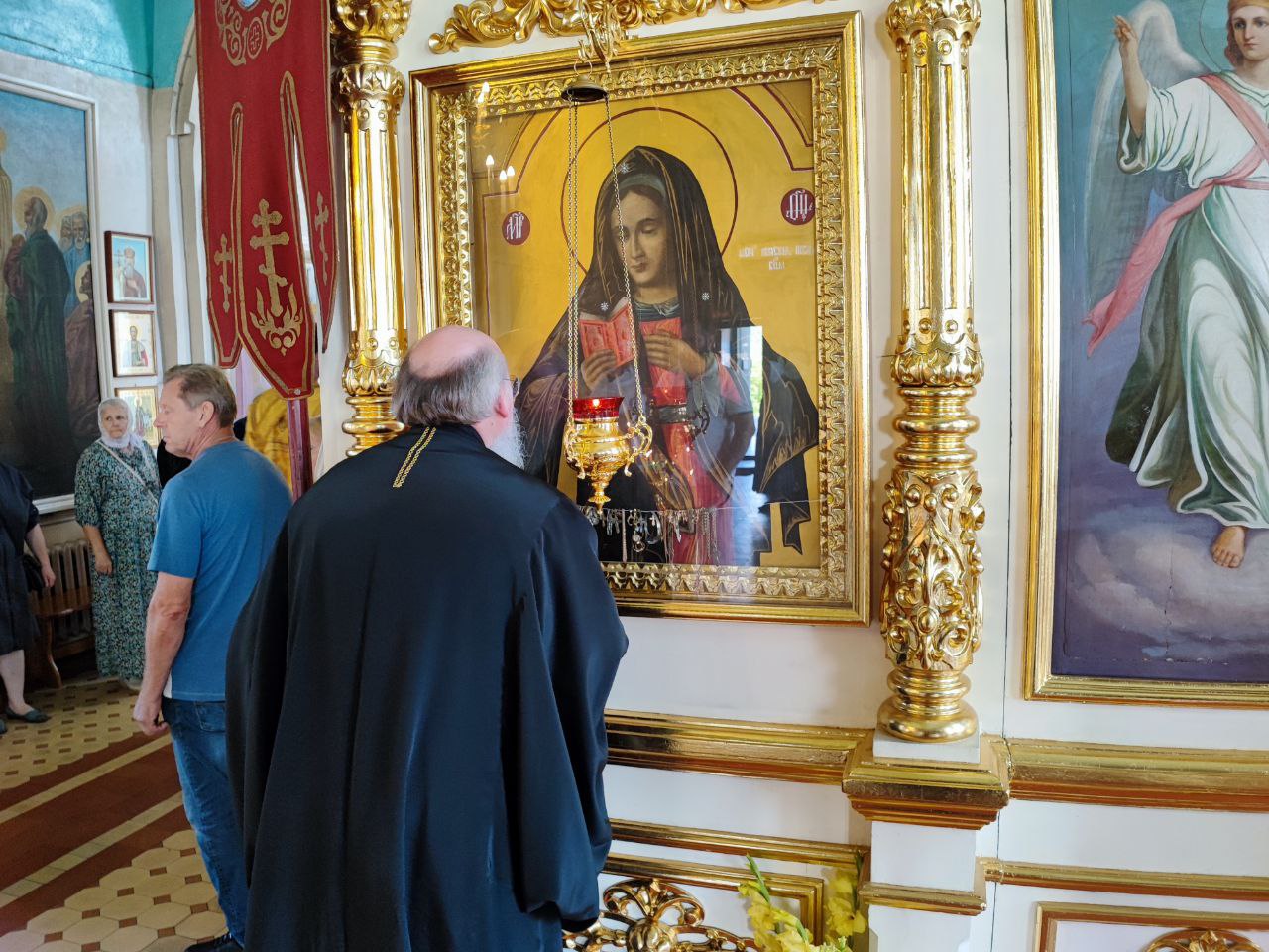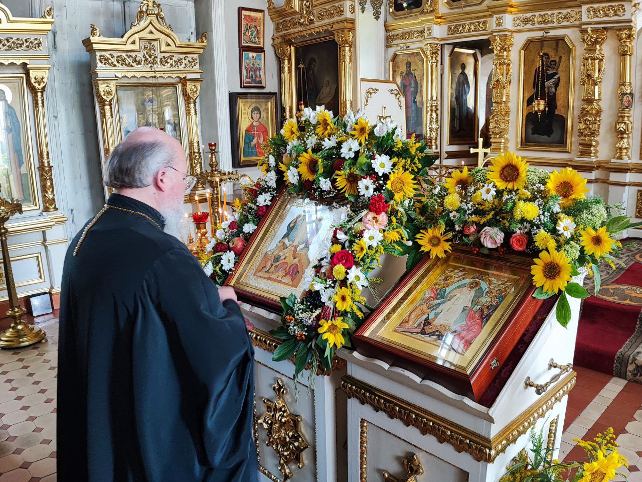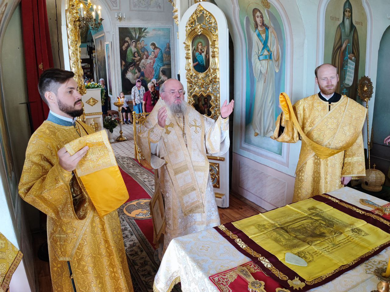 Преосвященнейшему владыке сослужили: протоиерей Павел Морозов, протоиерей Антоний Хатунцев, иерей Сергий Барыкин – настоятель прихода, диакон Евгений Васильев и иеродиакон Лука (Старостин).