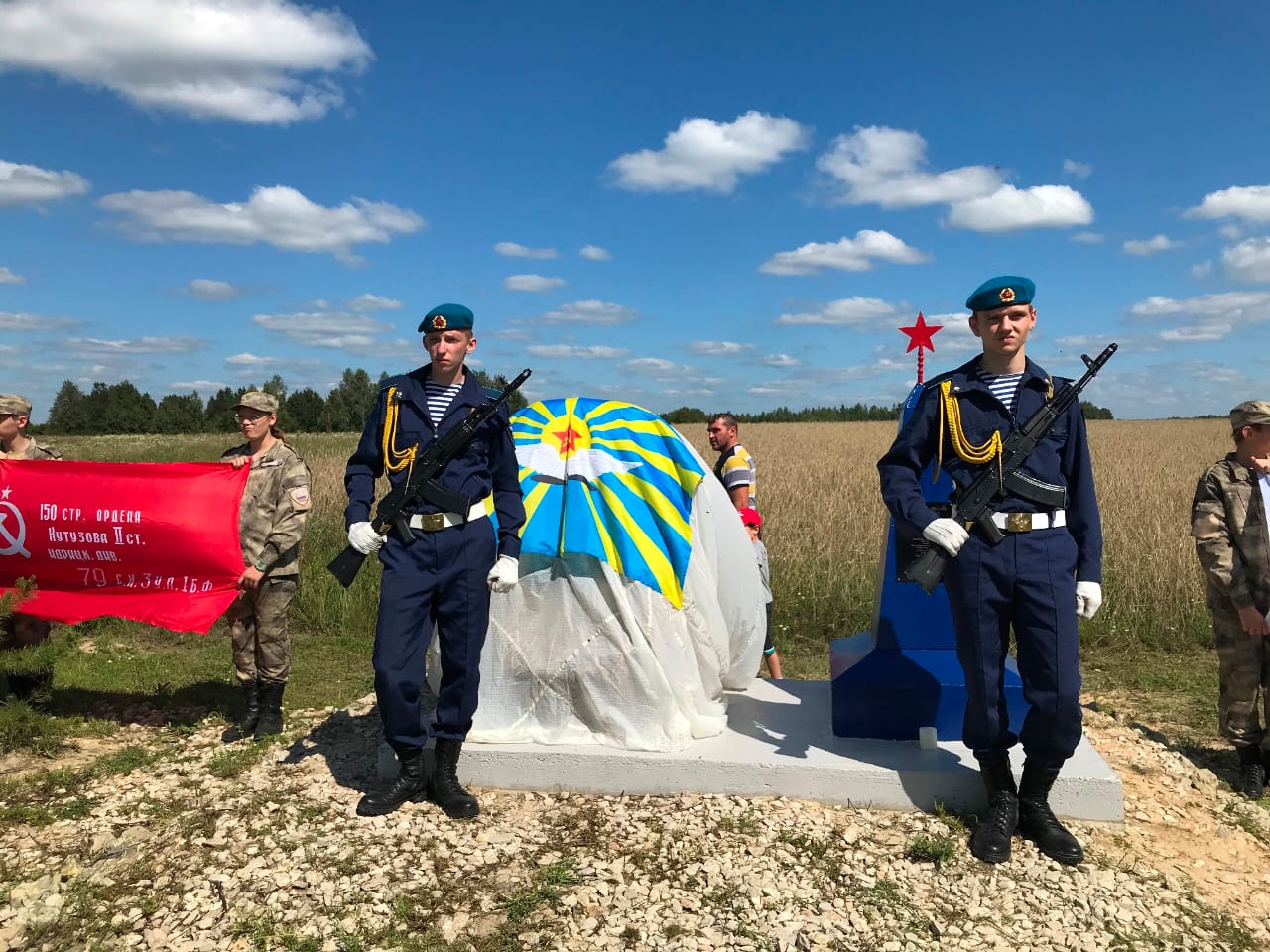 В тот же день на окраине села Хвастовичи состоялось открытие памятника летчикам, сражавшимся в небе над Хвастовичской землёй. Сам памятник и закладной камень были установлены ещё в прошлом году, но сейчас, в юбилейный год освобождения района, состоялось торжественное открытие. На митинге также выступил заместитель главы администрации МР «Хвастовичский район» Владимир Сергеевич Богачев. Он вручил благодарственное письмо руководителю отряда и высказал слова благодарности за ту работу, которую проводит отряд. Игорь Викторович Черкасов, военком Хвастовичского и Ульяновской районов, также поздравил всех с юбилейной датой, отметив что ещё не все, кто 80 лет назад воевал на этой земле, подняты из небытия.