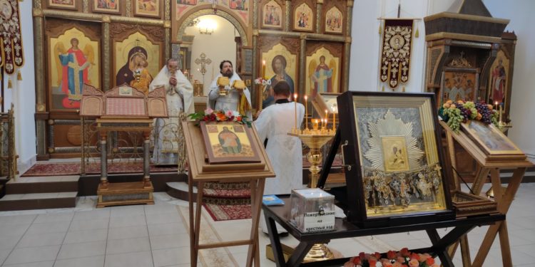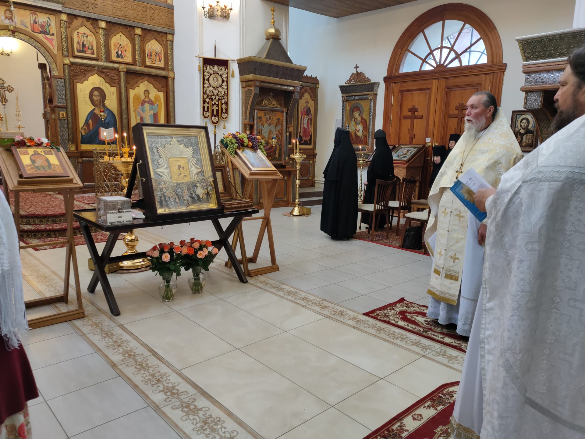 Утром 23 августа Божественную литургию служили благочинный Козельской епархии протоиерей Владимир Бахаев и духовник обители архимандрит Антоний (Гаврилов). К святыням приложились насельницы обители и многочисленные паломники, затем казаки с иконой посетили монастырскую богадельню и утешили больных лежачих матушек.