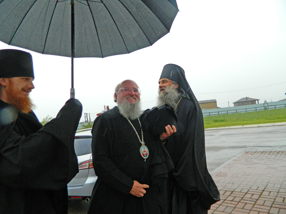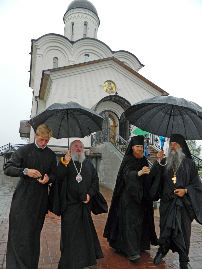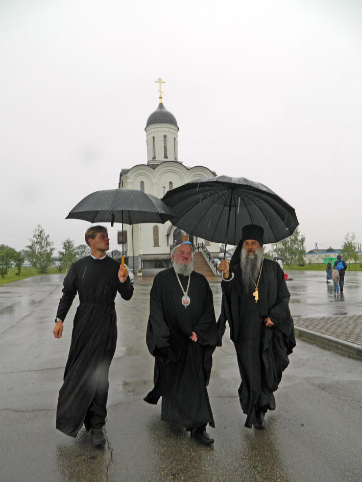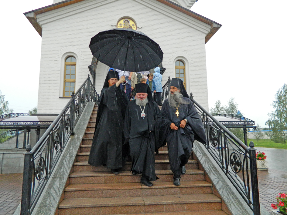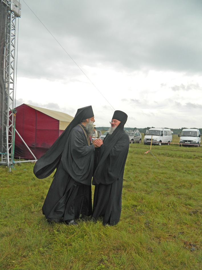 Фестиваль посетил епископ Козельский и Людиновский Никита. Владыка молился за богослужением в храме Владимирской иконы Божией Матери в скиту, а затем обратился с приветственным словом к участникам фестиваля.