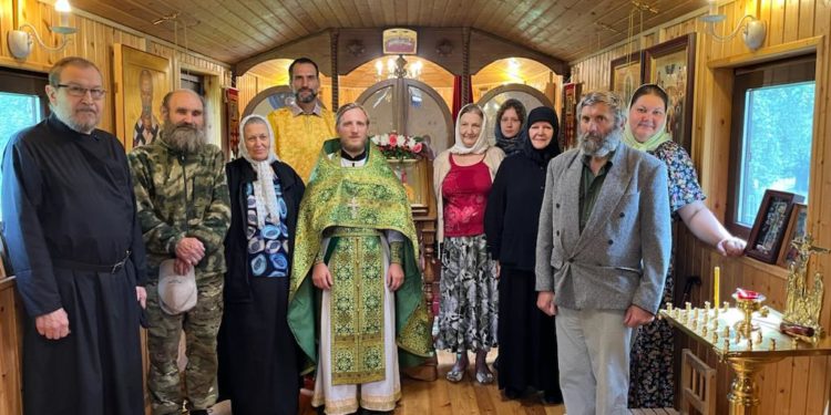 За богослужением молились немногочисленные прихожане из близлежащих сел. По окончании Литургии крестным ходом прошли вокруг храма, молясь о помощи Божией и заступничестве святого праведного Лаврентия, калужского чудотворца.