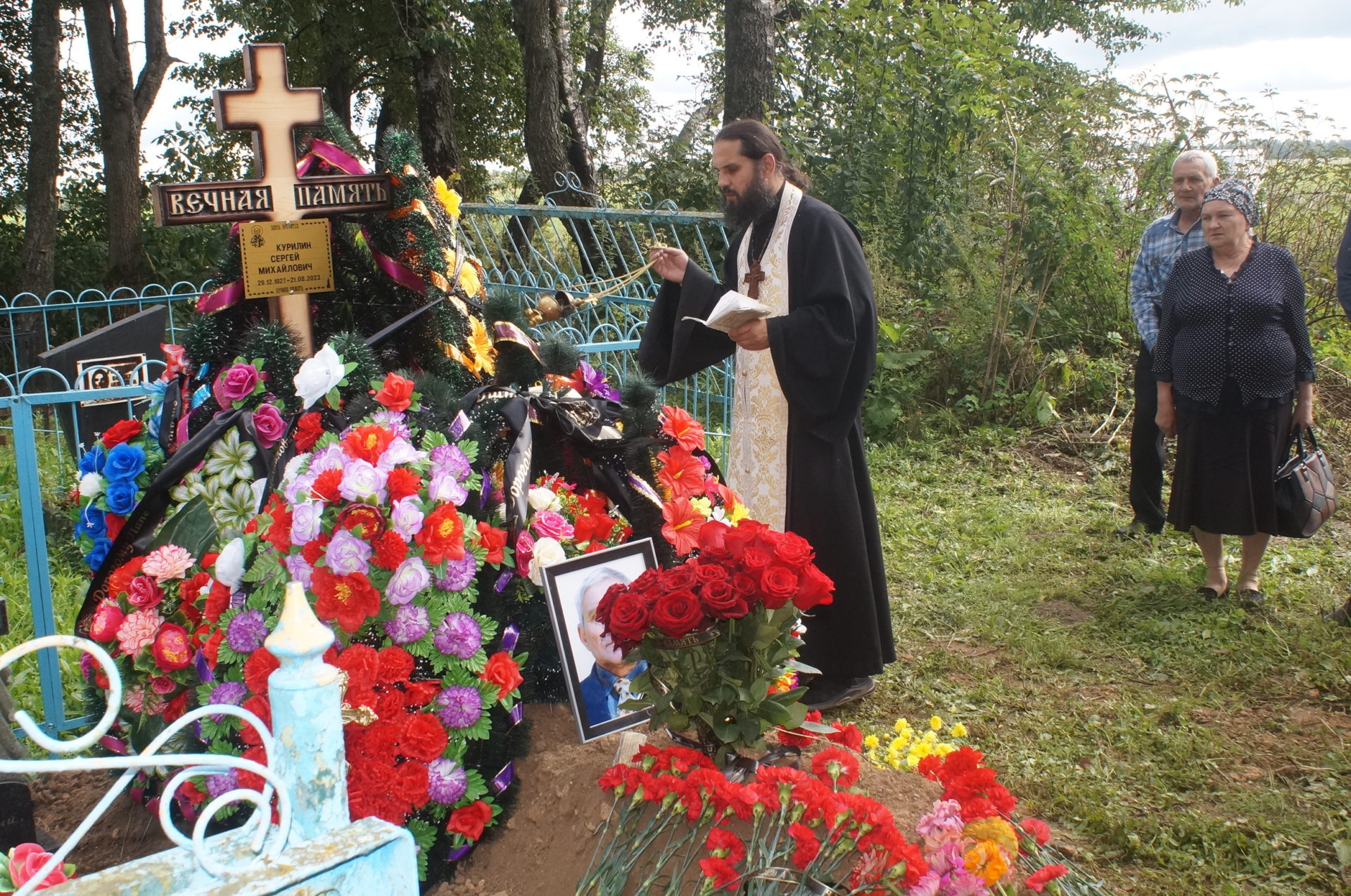 По окончании отпевания настоятель, родные ветерана, представители администрации Козельского района прошли до кладбища в селе Губино и там предали земле тело Сергея Михайловича.