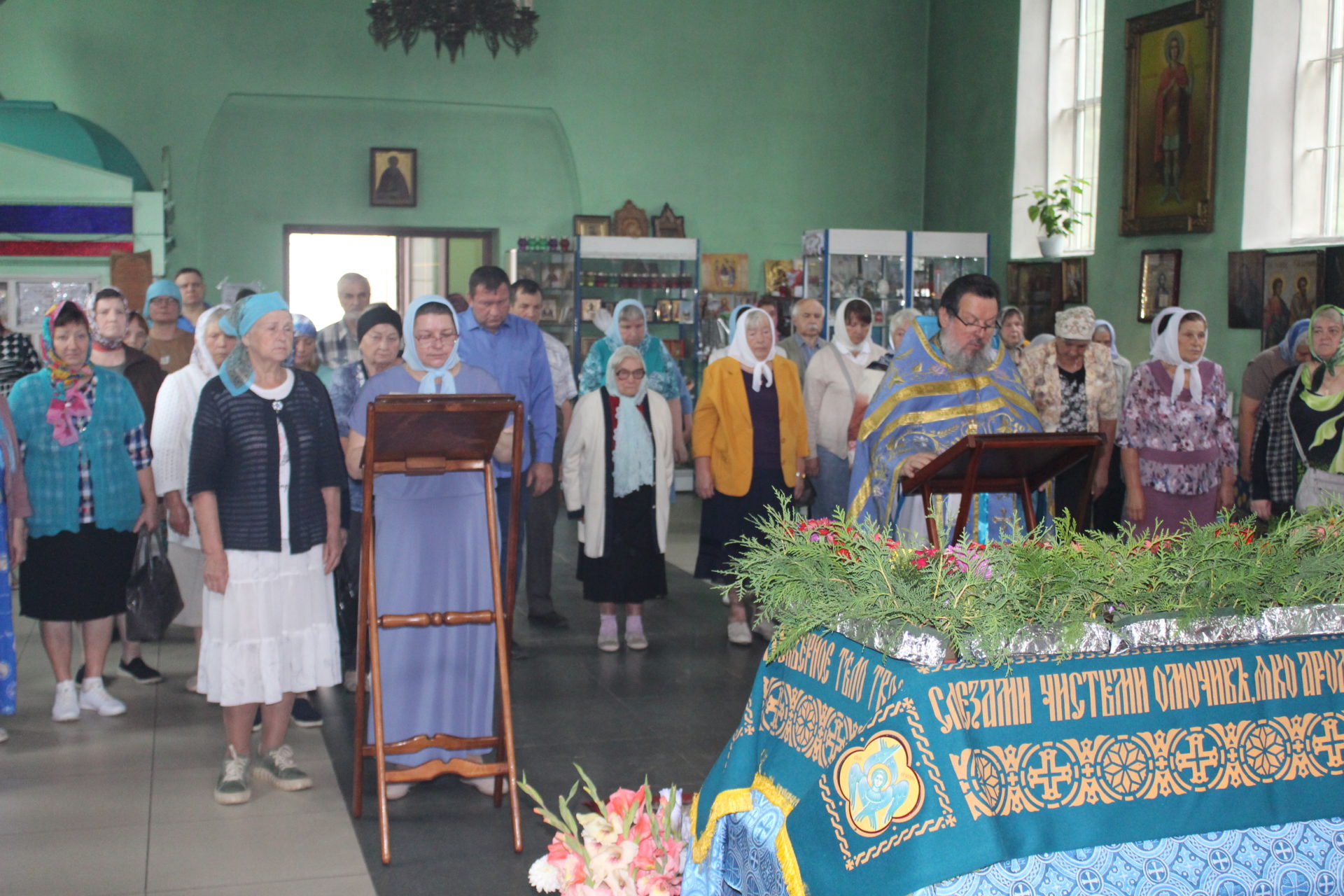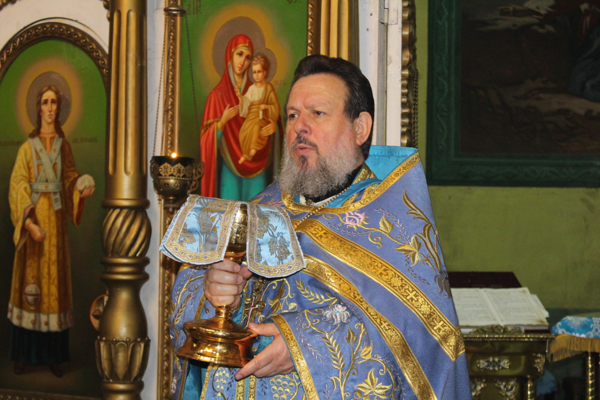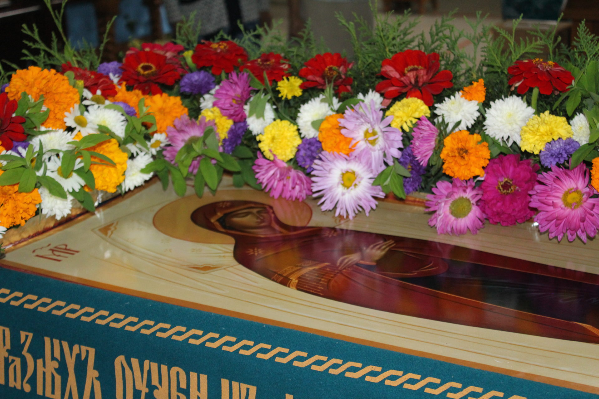 За Божественной литургией отец Василий обратился к прихожанам со словами поздравления: «Сегодня Успение Пресвятой Богородицы. Пусть этот день станет светлой широкой дорогой к вере. Пусть Её жизненный путь и святые молитвы согревают и наполняют благодатью души, пусть даруют терпение, понимание и доброту помыслов всем людям на земле. Царица Небесная жива, Она предстоит пред Престолом Сына Своего и молится за всех нас».