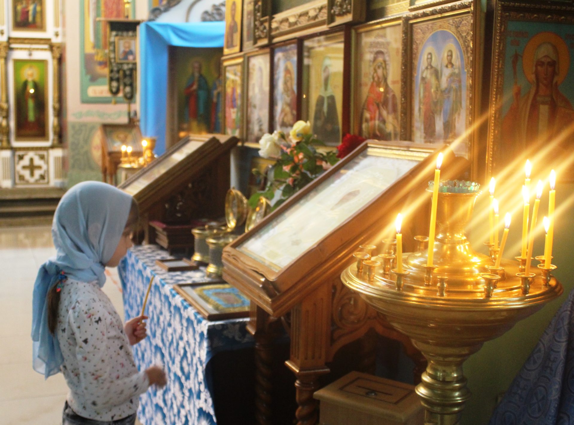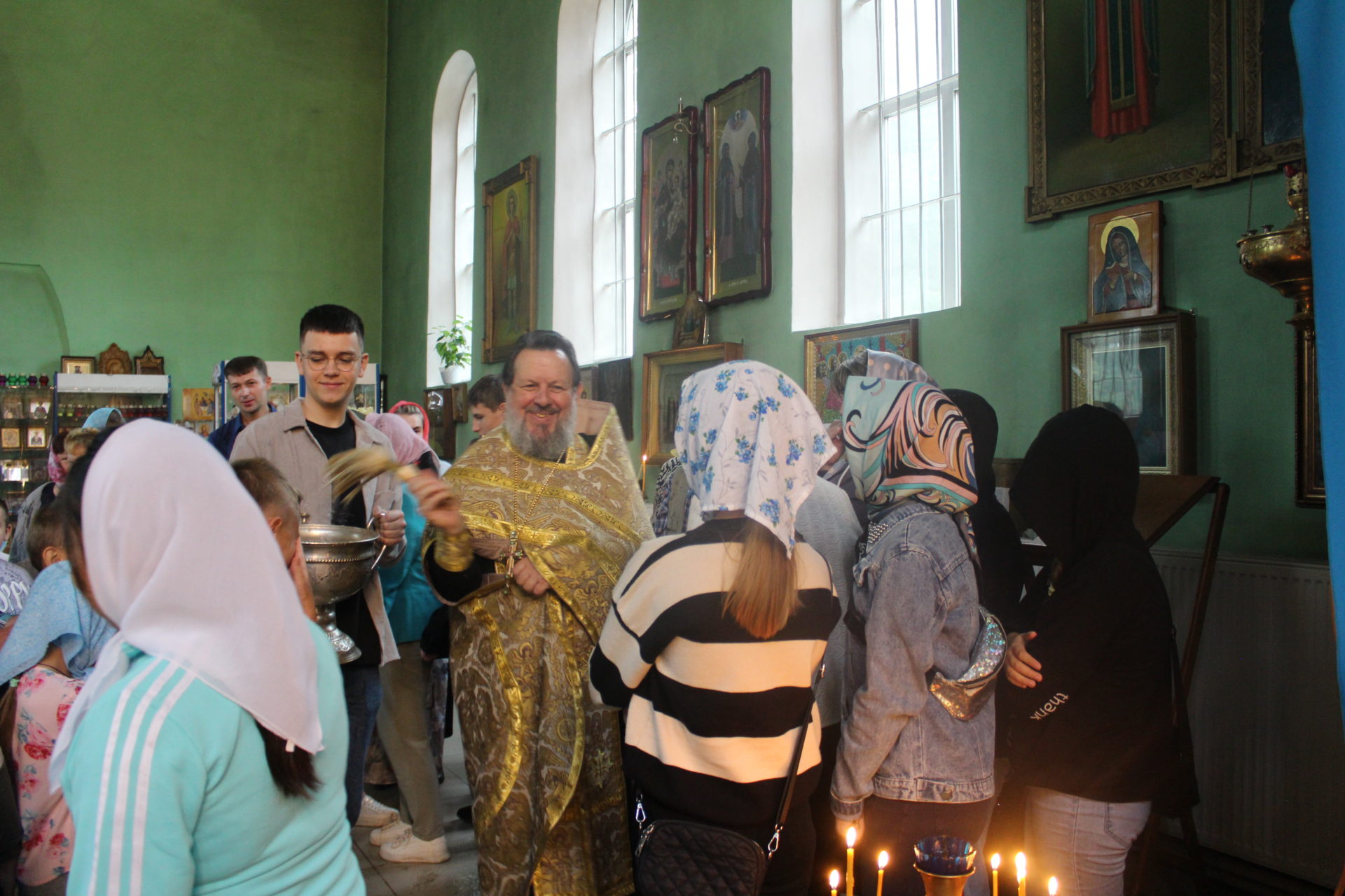 По церковной традиции отец Василий окропил участников молебна святой водой. По окончании молебного пения батюшка благословил всех на начало учебного года, матушка Анна подарила иконки всем присутствующим на молебне.