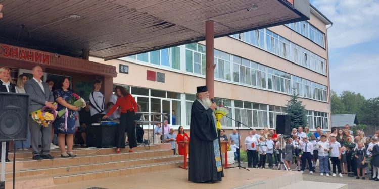 В этот праздничный и торжественный день благочинный Людиновского округа Козельской епархии настоятель Казанского собора протоиерей Алексий Жиганов посетил муниципальные образовательные учреждения города Людиново: «Среднюю школу №2» и «Среднюю школу №1».