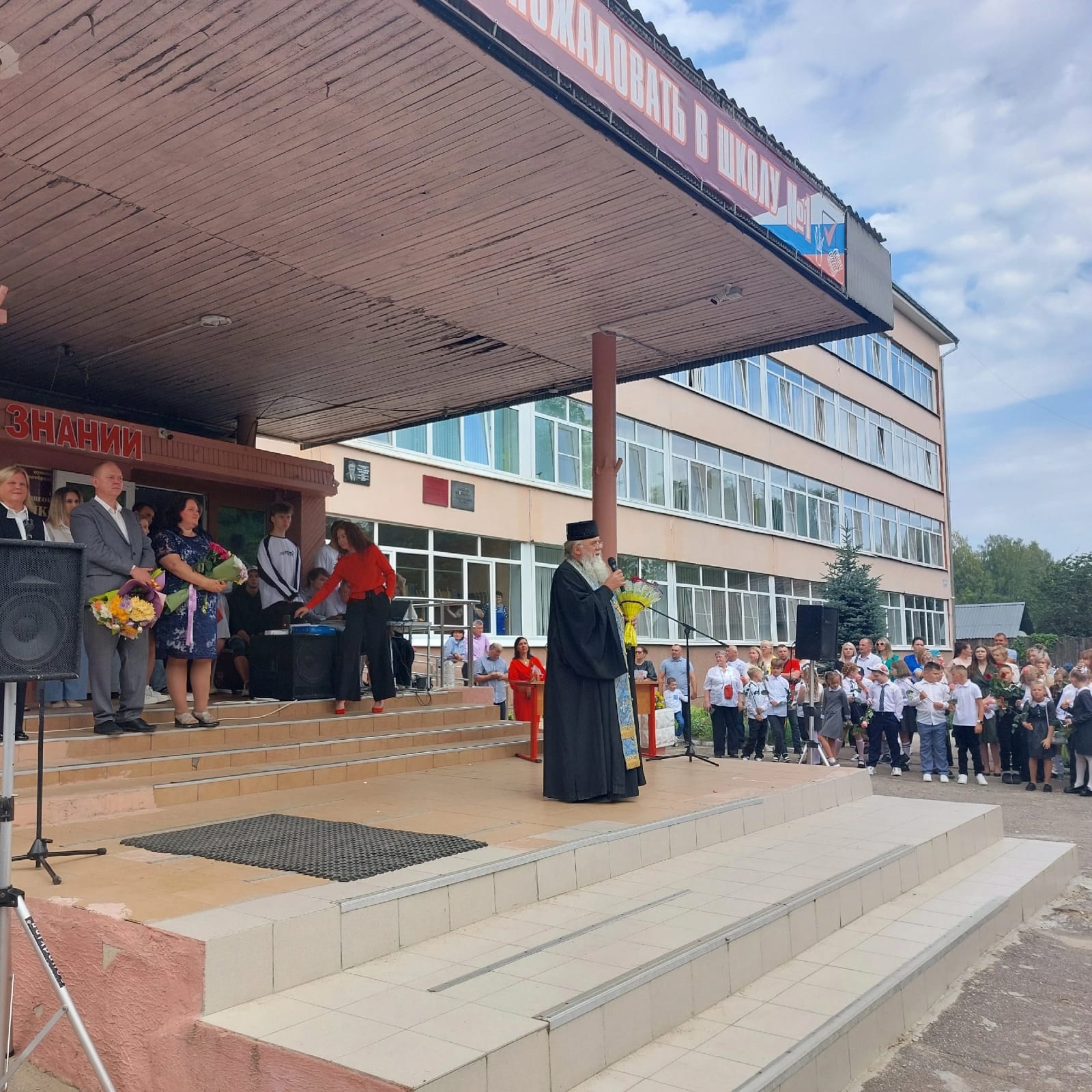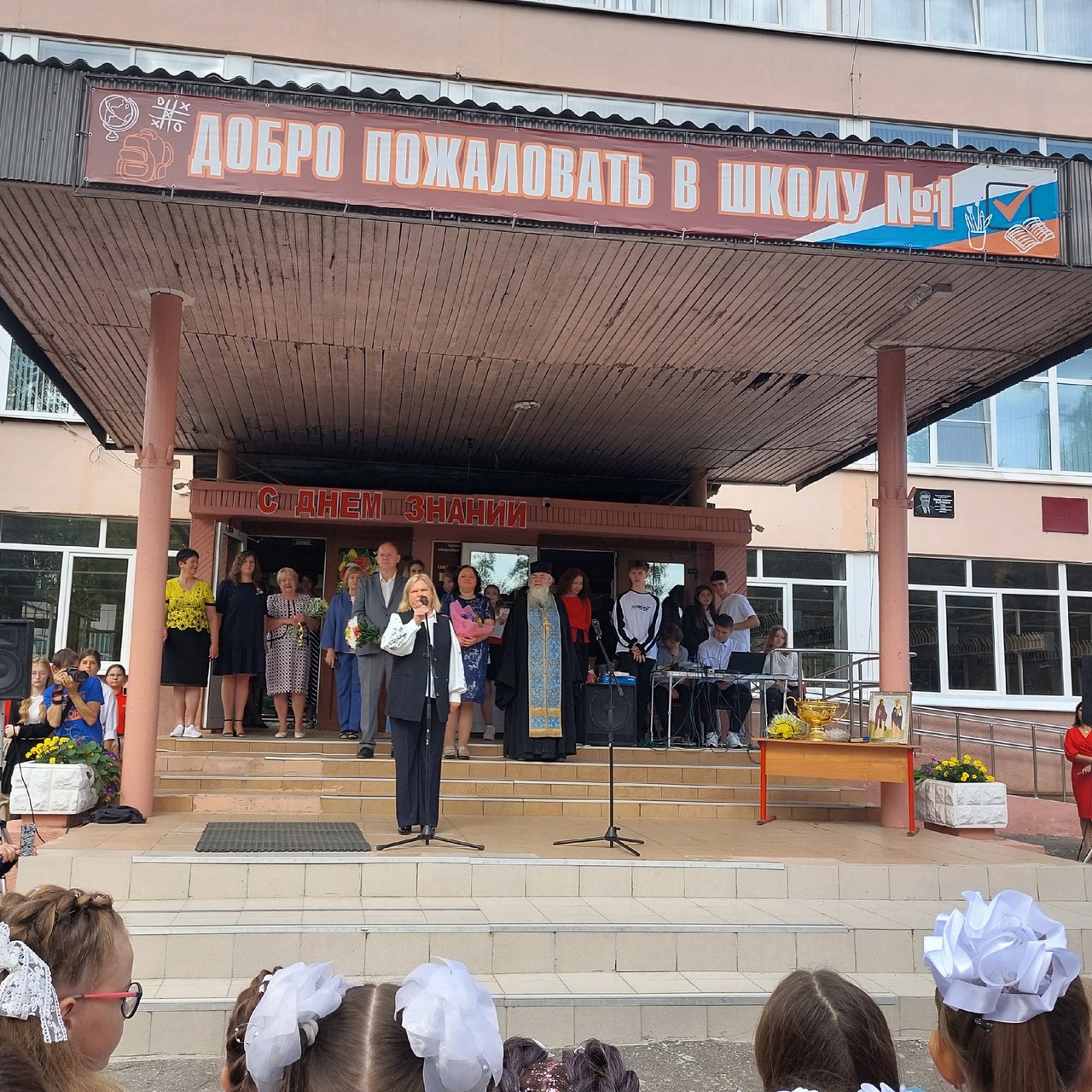 В МКОУ «Средняя школа №1» традиционно перед торжественной частью отец Алексий вознеся молитву перед учением: «Преблагий Господи, ниспосли нам благодать Духа Твоего Святаго, дарствующаго смысл и укрепляющаго душевныя наши силы, дабы, внимая преподаваемому нам учению, возросли мы Тебе, нашему Создателю, во славу, родителем же нашим на утешение, Церкви и Отечеству на пользу», окропил всех присутствующих святой водой.