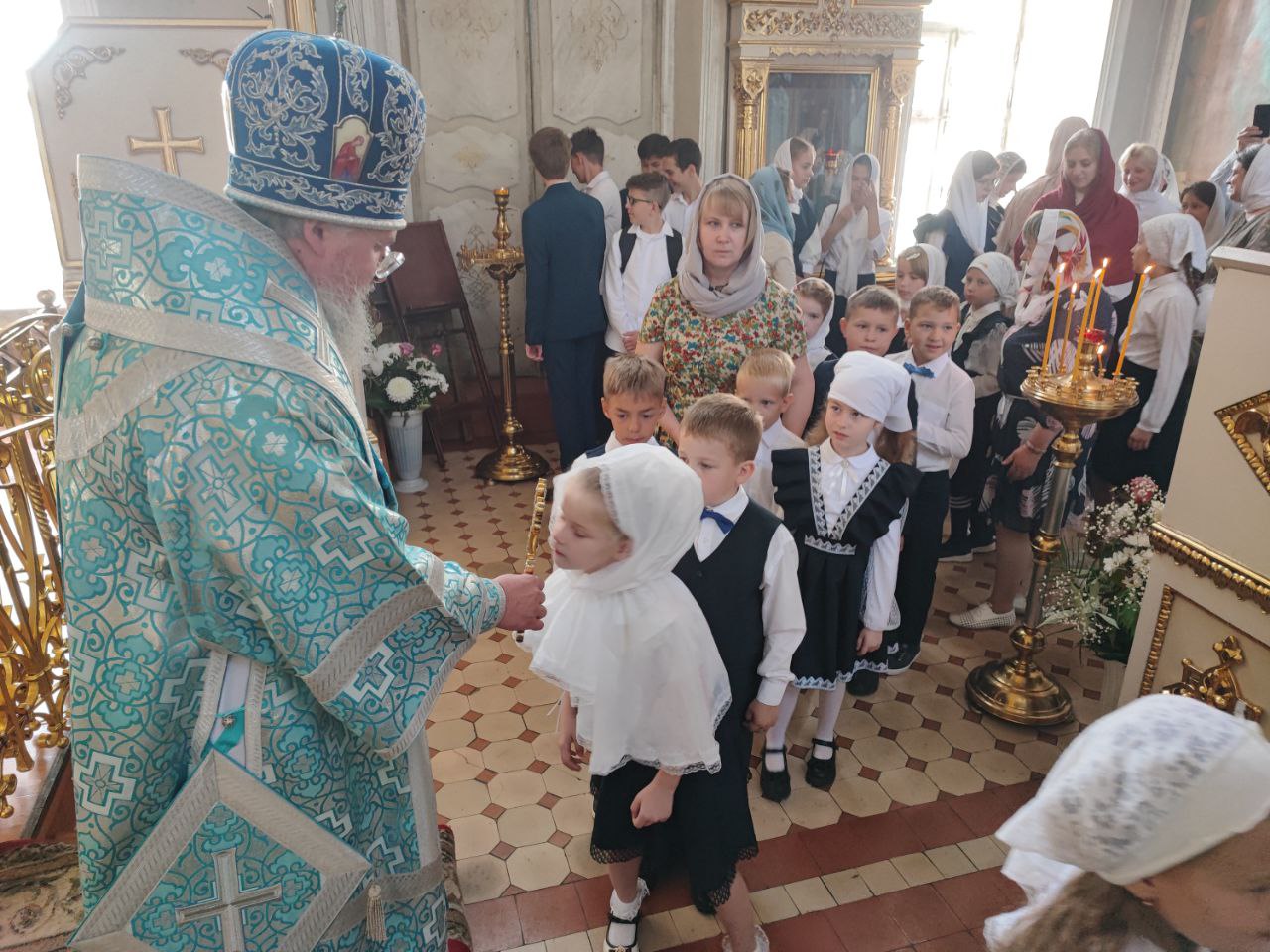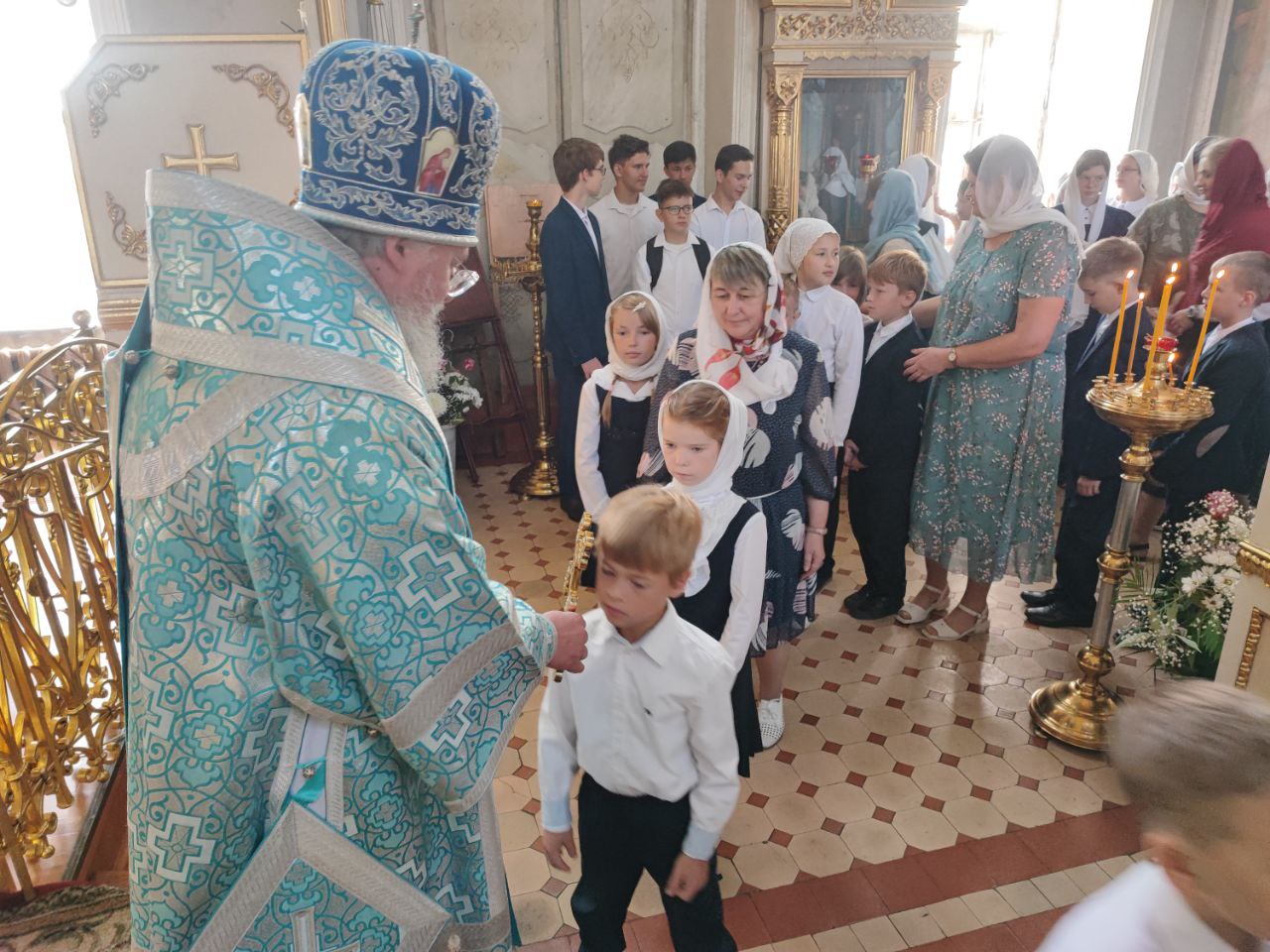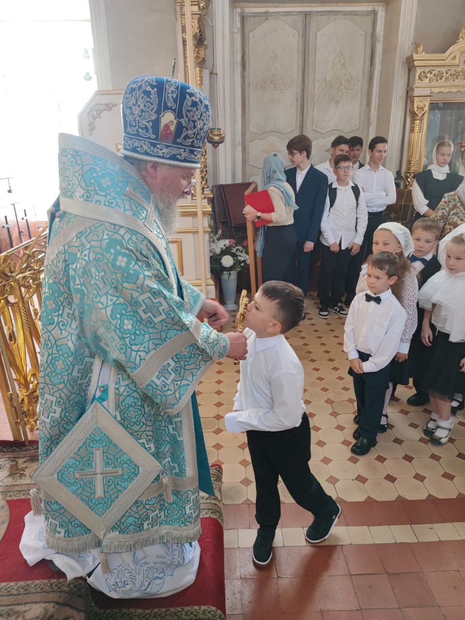 1 сентября  Благовещенском храме города Козельска епископ Козельский и Людиновский Никита совершил молебен на начало нового учебного года в Козельской православной гимназии.