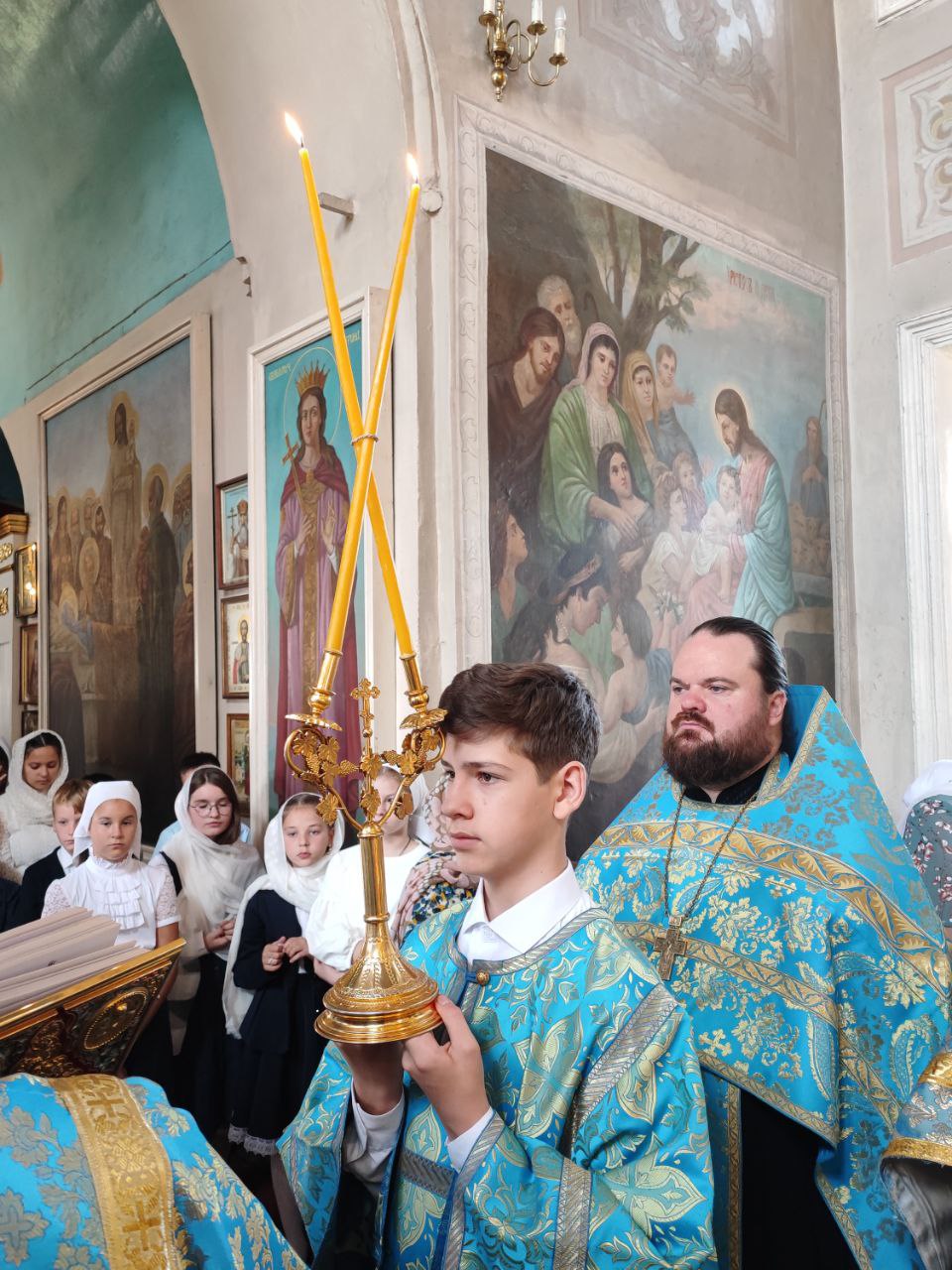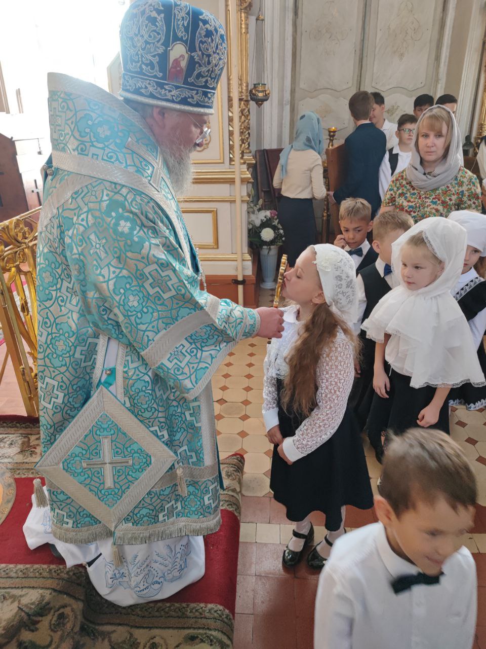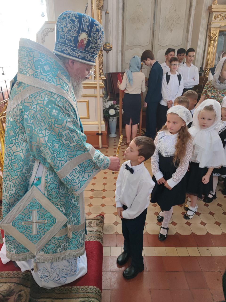 1 сентября  Благовещенском храме города Козельска епископ Козельский и Людиновский Никита совершил молебен на начало нового учебного года в Козельской православной гимназии.