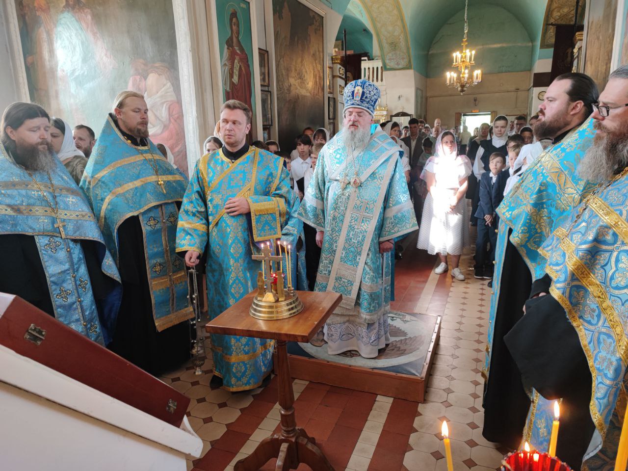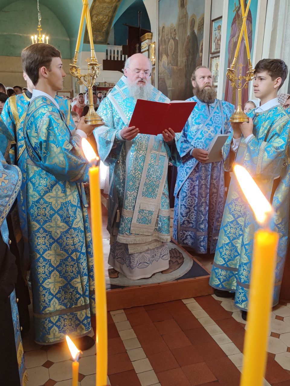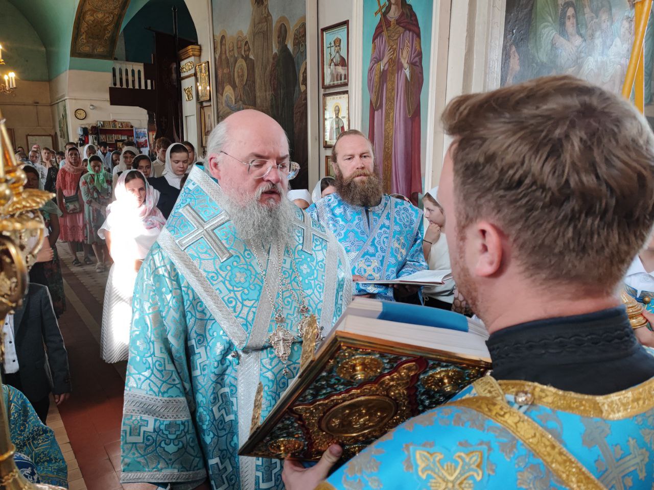 Архипастырю сослужили: настоятель храма, духовник гимназии  иерей Сергий Барыкин, протоиерей Сергий Сычев, протоиерей Ярослав Мудрый, иерей Алексий Боков, иерей Максим Изопов и диакон Евгений Ковригин.