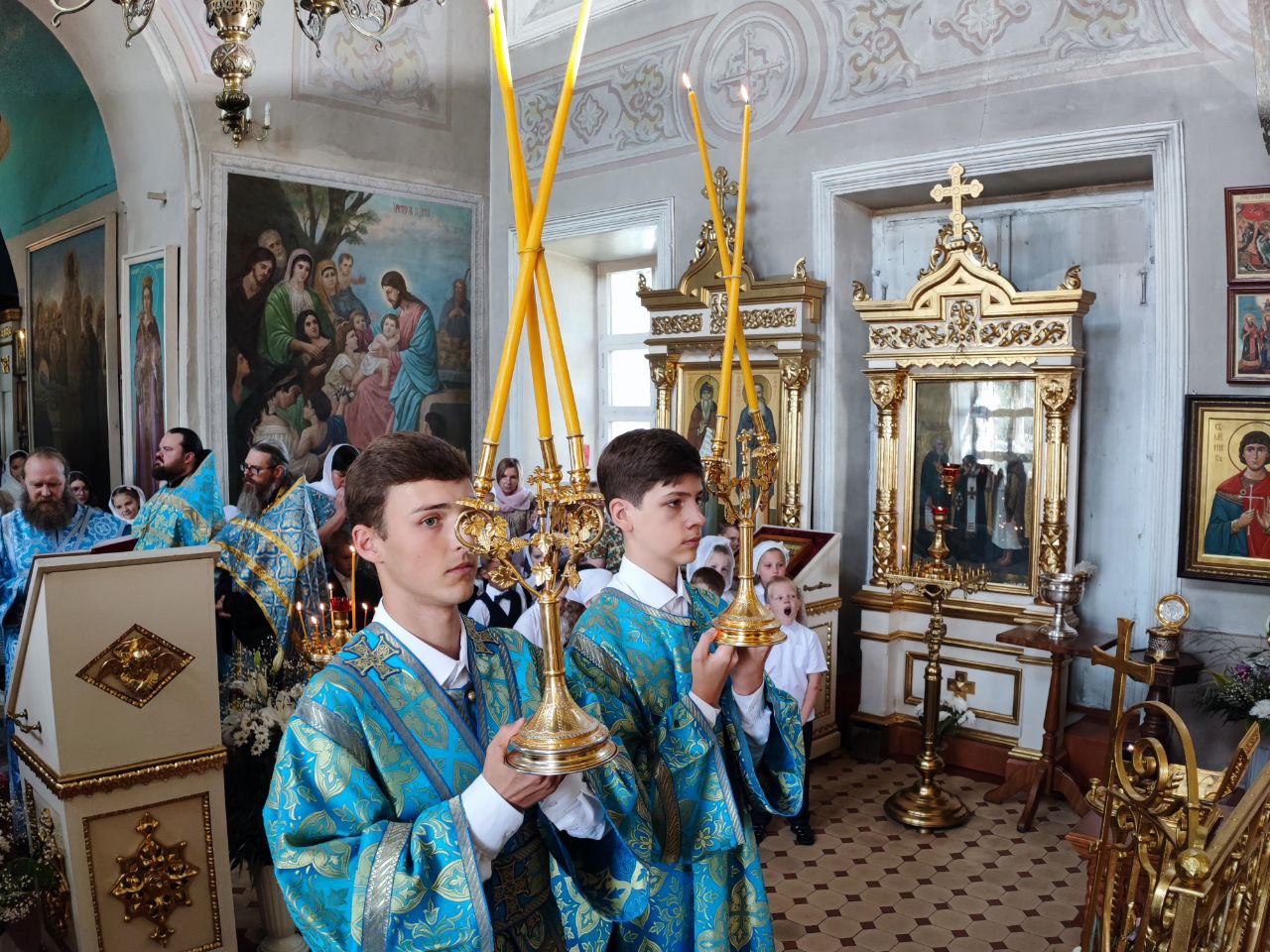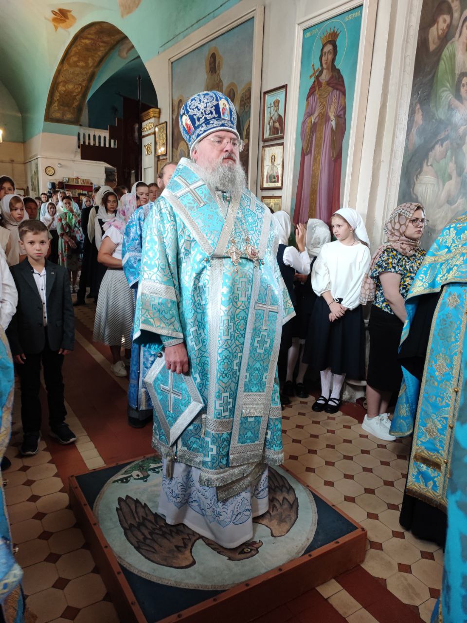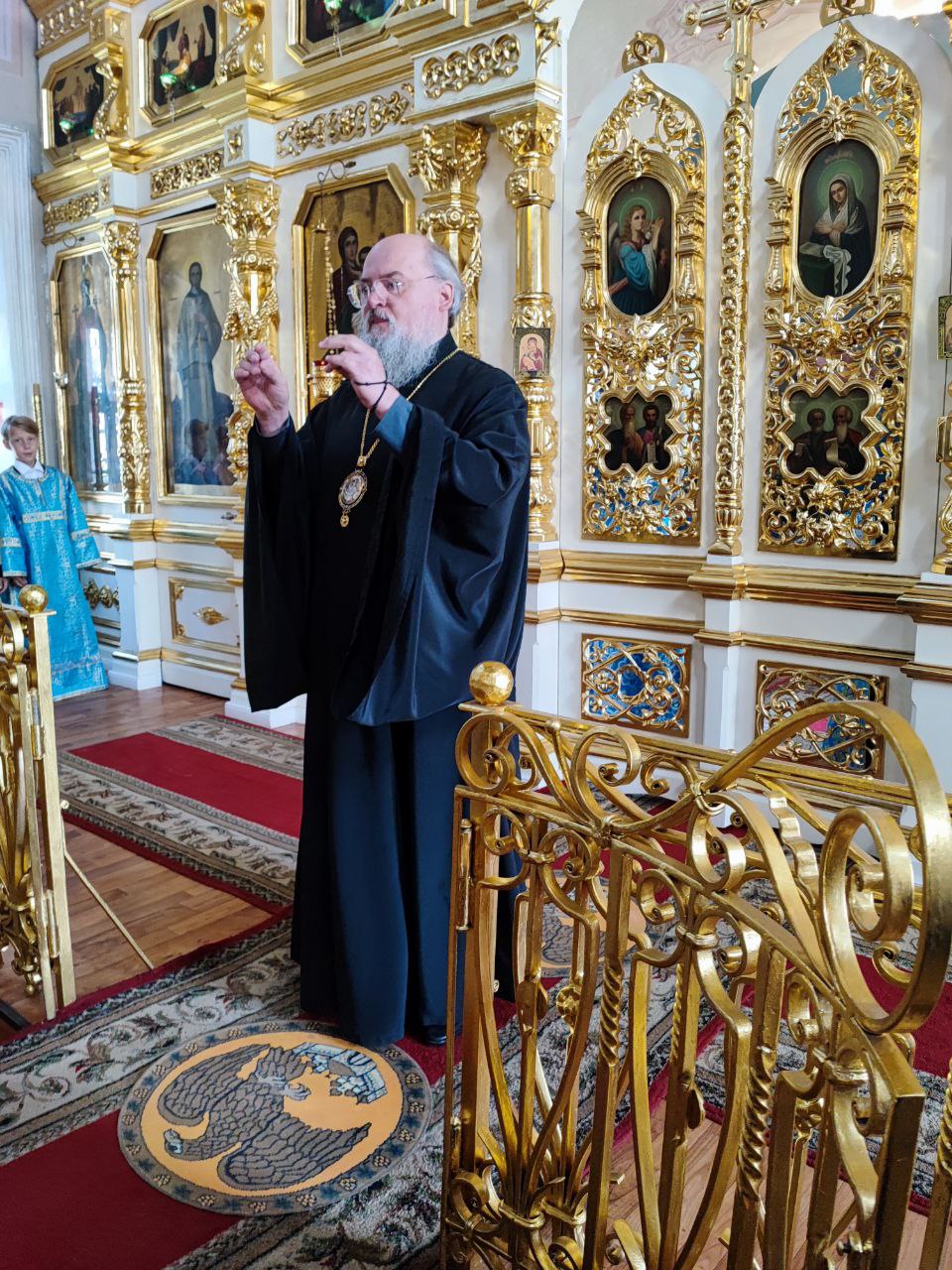 Архипастырю сослужили: настоятель храма, духовник гимназии  иерей Сергий Барыкин, протоиерей Сергий Сычев, протоиерей Ярослав Мудрый, иерей Алексий Боков, иерей Максим Изопов и диакон Евгений Ковригин.