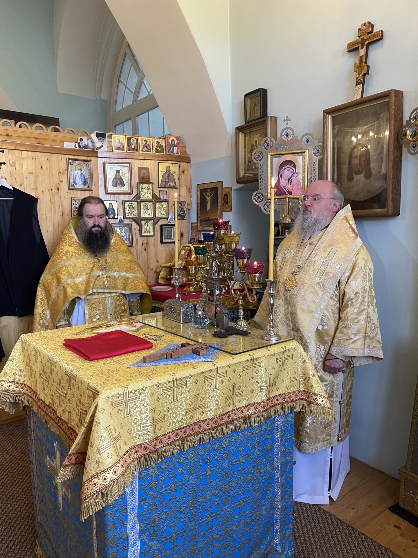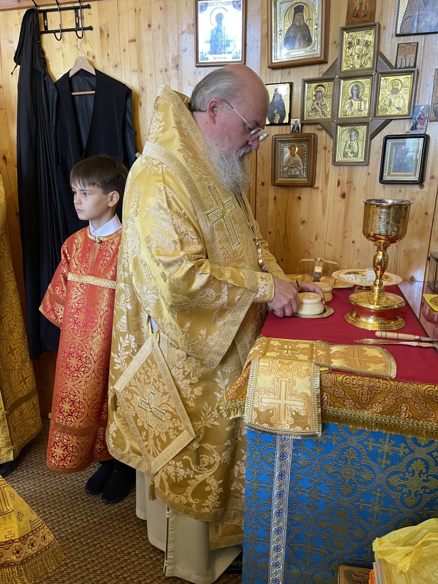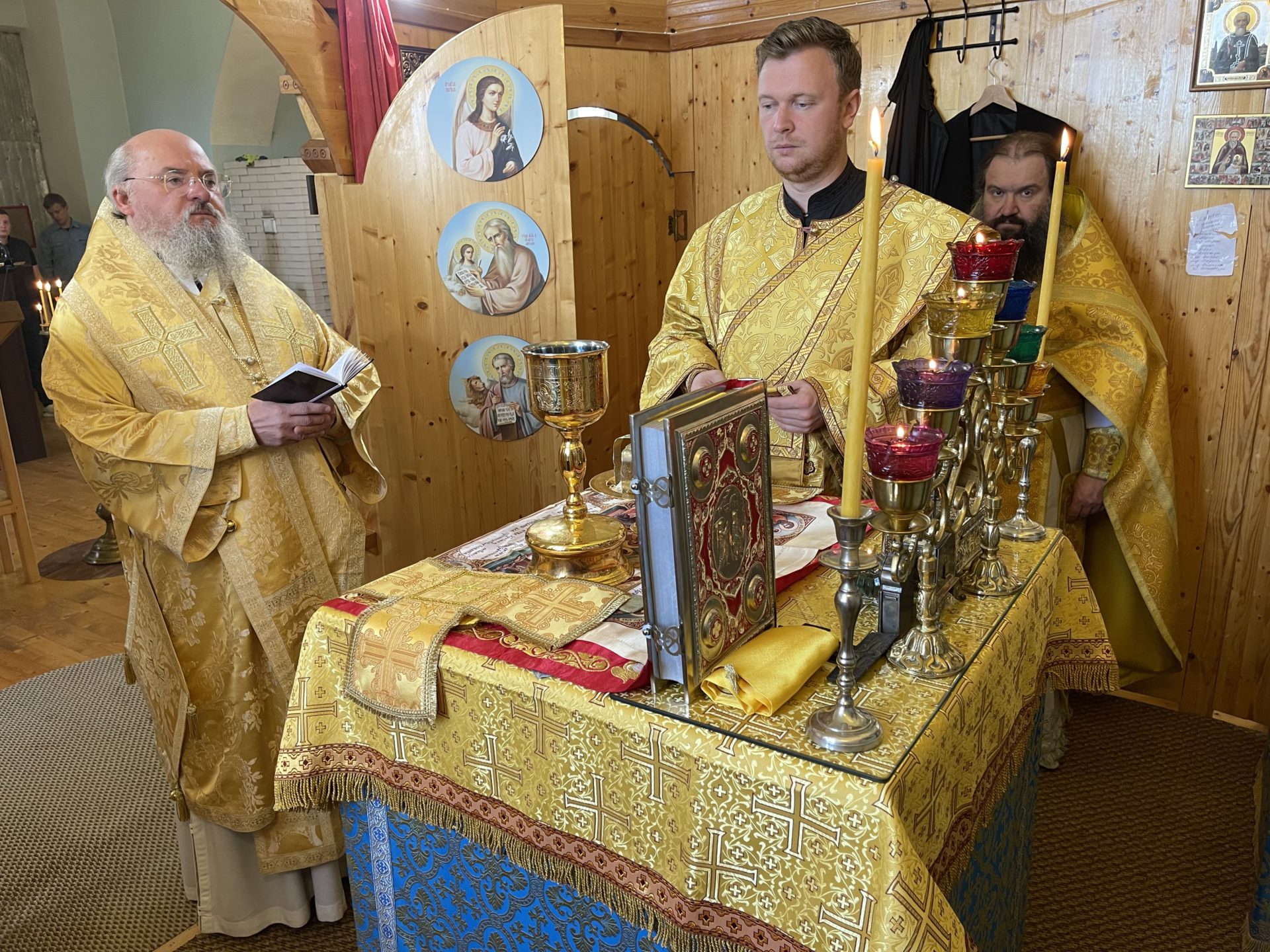Архипастырю сослужили: протоиерей Антоний Хатунцев, иеромонах Игнатий (Киселев) настоятель храма и диакон Евгений Ковригин.