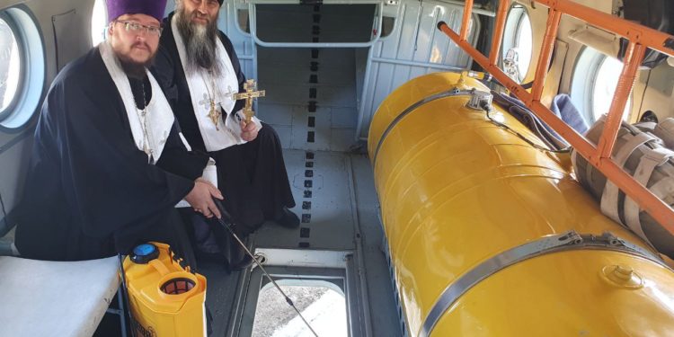 6 сентября по благословению правящего архиерея епископа Козельского и Людиновского Никиты при содействии командира Козельской ракетной дивизии Гвардии полковника Соколова Алексея Владимировича наместник монастыря Спаса Нерукотворного пустынь архимандрит Михаил (Семенов) со священнослужителями  епархии настоятелем Богоявленского храма города Козельска иереем Дионисием Куваевым и клириком Успенского кафедрального собора иереем Елисеем Тимофеевым  и военнослужащими дивизии совершили полет на вертолете над территорией Козельской епархии совершив молебен ко Господу Богу и Святым угодникам Божиим о мире и благополучии родной земли. В полёте окропили Крещенской водой благословенные пределы нашего края.