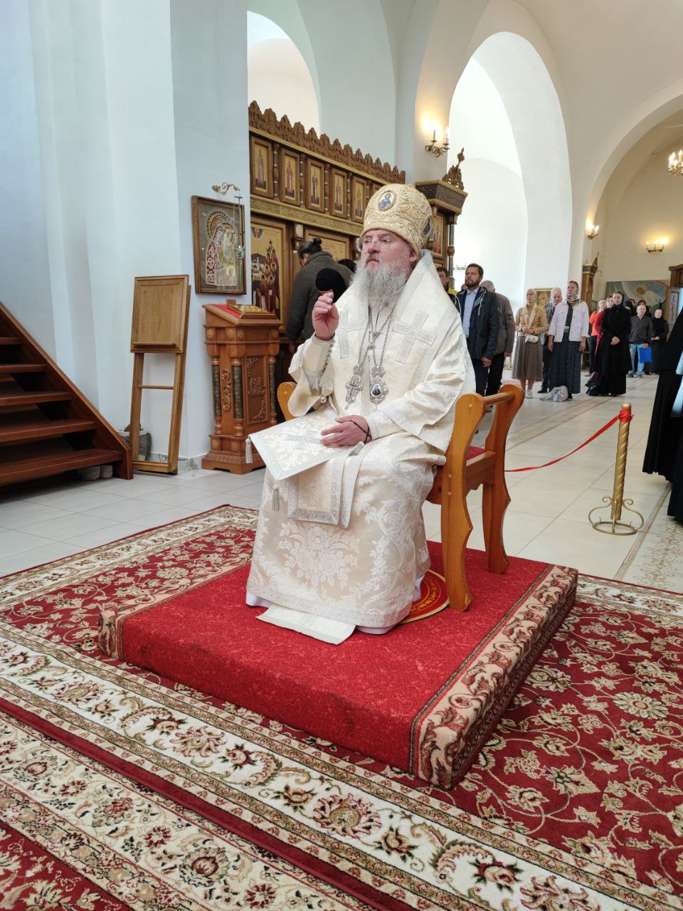 После сугубой ектении епископ Никита вознес молитву о Святой Руси. По благословению Святейшего Патриарха Московского и всея Руси Кирилла эта сугубая молитва совершается во всех храмах Русской Православной Церкви за каждым богослужением.
