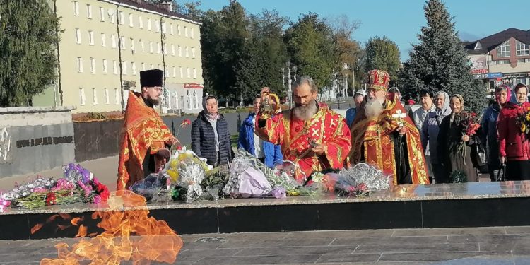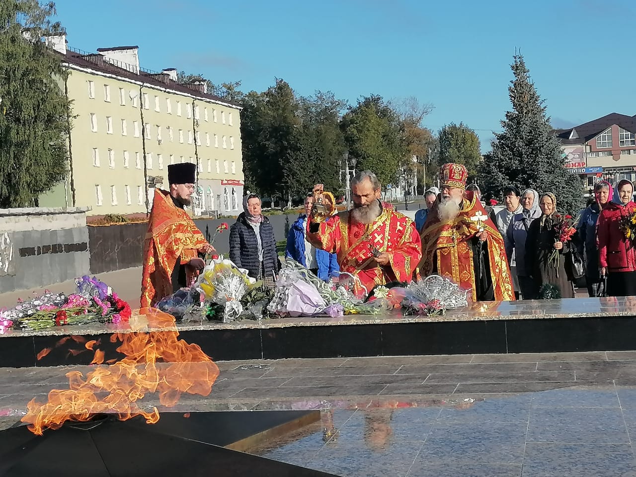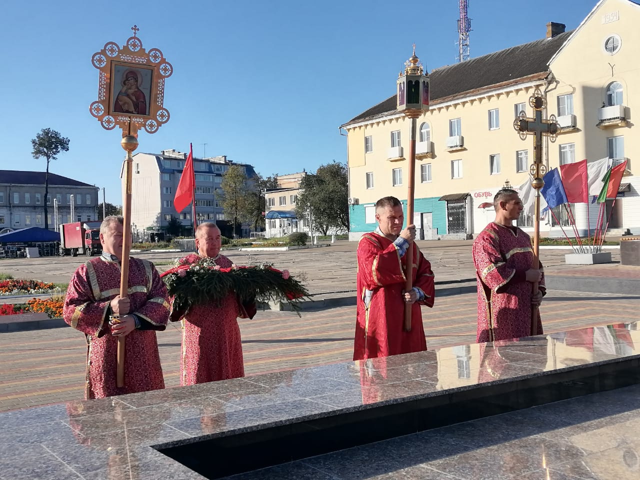 9 сентября 2023 года, в юбилейную дату – 80 лет со Дня освобождения города Людиново от немецко-фашистских захватчиков, прихожане Казанского собора Крестным ходом прошли от собора до Поклонного Креста на площадь Победы, где настоятелем протоиереем Алексием Жигановым в сослужении клириков храма  иереем Алексием Сначевым и диаконом Андреем Соколовым  была совершена заупокойная лития о всех погибших при освобождении города Людиново и Людиновского района, а также погибших в годы Великой Отечественной войны. К подножию Поклонного Креста, к Вечному огню и памятной стеле «Людиново – город воинской доблести», к памятнику Людиновским подпольщикам (расположенному на Набережной) были возложены гирлянда и цветы в память о погибших защитниках родного города. Отец Алексий поздравил всех с юбилейным памятным днём для нашего города и призвал сохранять в своих сердцах память о тех страшных событиях и отдавать дань уважения погибшим: «Это та самая незримая нить, которая связывает нас сегодняшних с нашими героическими предками и доказывает, что мы помним и чтим их подвиг, любим свою Родину. Миллионы людей отдали жизни, чтобы мы с вами были свободными в великой стране. И мы обязаны помнить, ценить этот подвиг и воспитывать наших детей и внуков в духе патриотизма, уважения и любви к своей малой Родине, к нашей великой России. Вечная память героям».