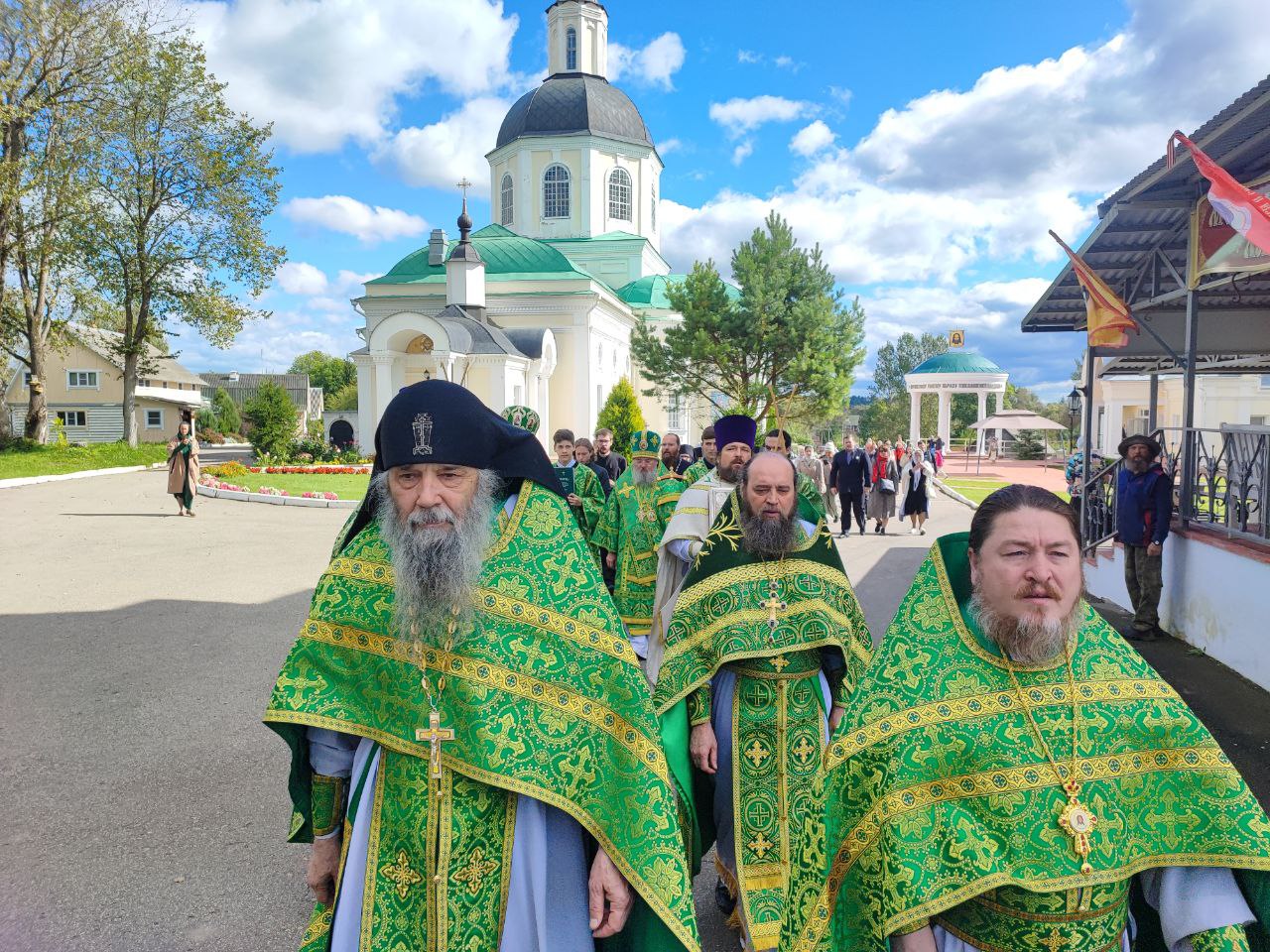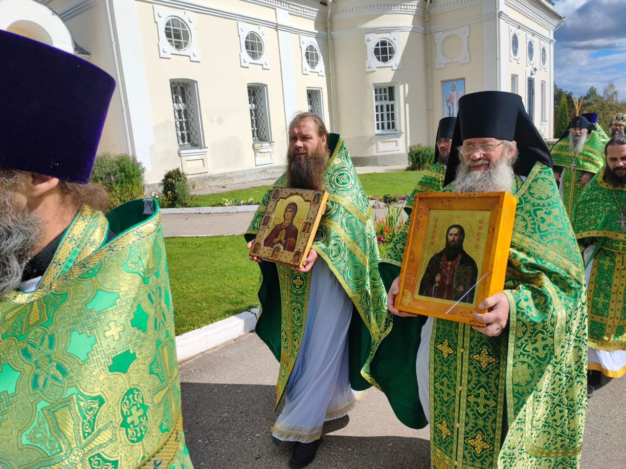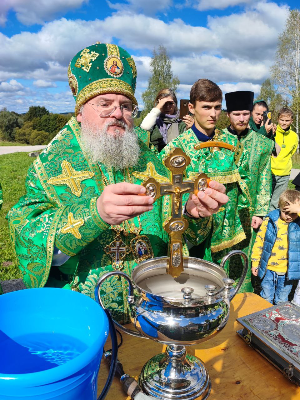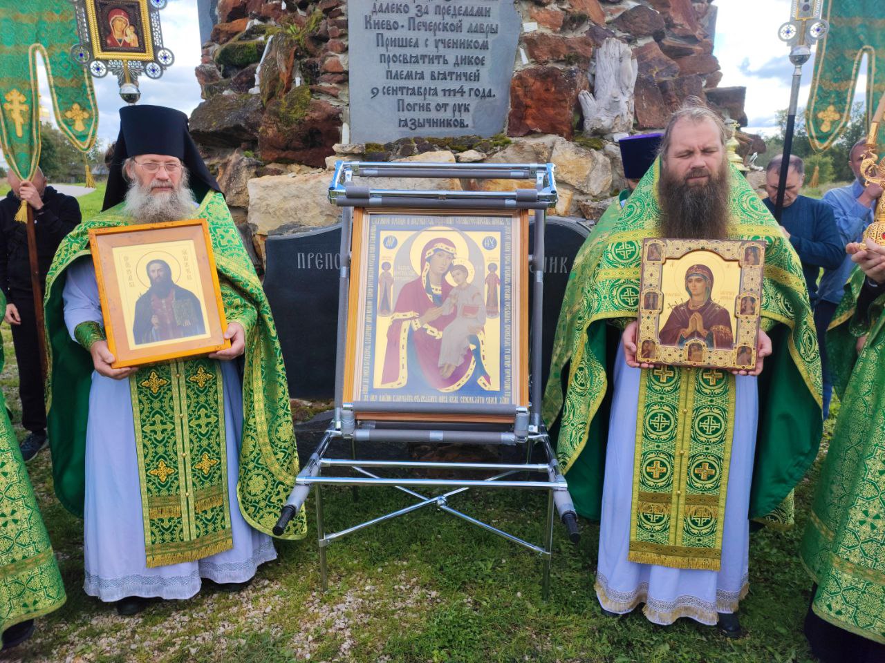 По отпусте литургии состоялся торжественный крестный ход к памятнику святому Кукше, установленному на подъезде к монастырю, где владыка совершил малое освящение воды и вознес молитву преподобномученику.