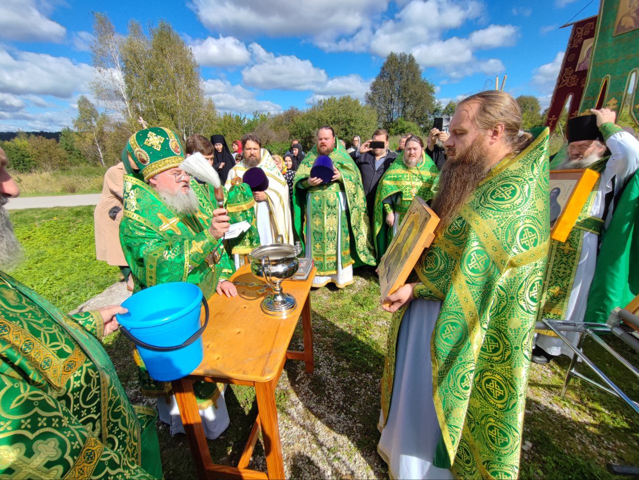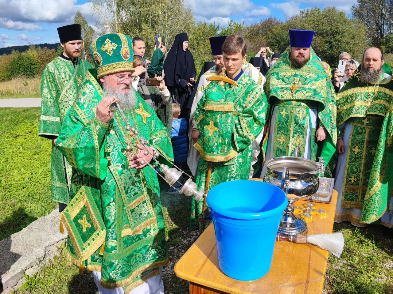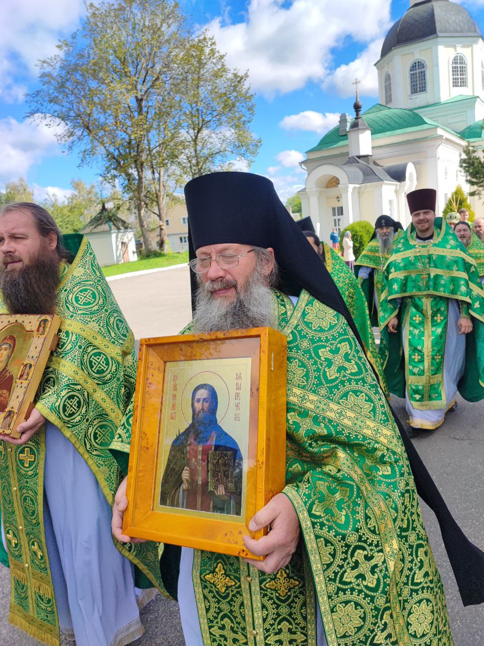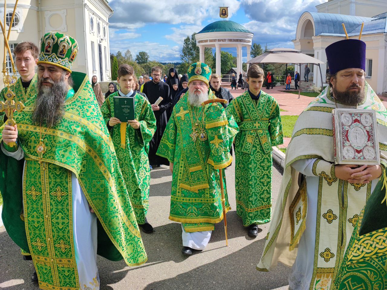 По отпусте литургии состоялся торжественный крестный ход к памятнику святому Кукше, установленному на подъезде к монастырю, где владыка совершил малое освящение воды и вознес молитву преподобномученику.