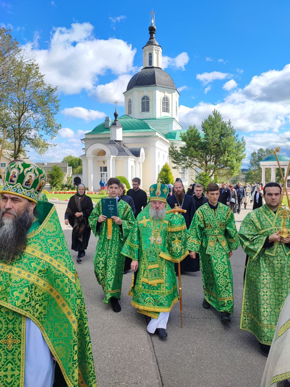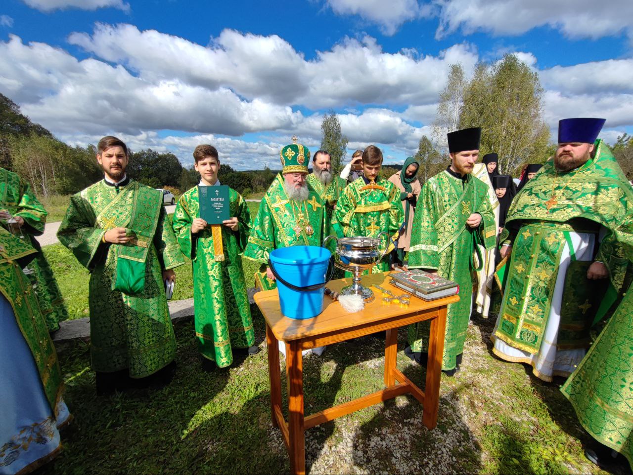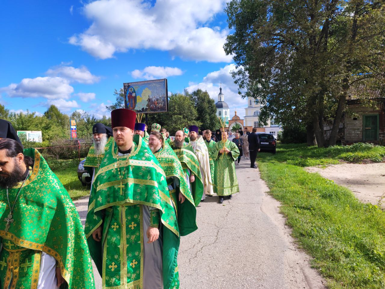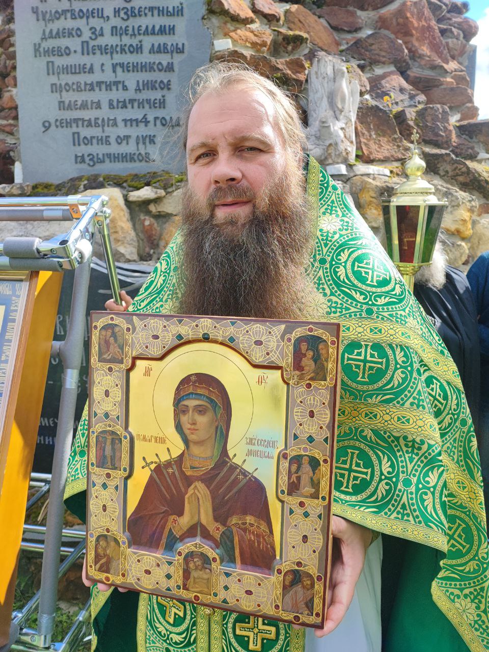 По отпусте литургии состоялся торжественный крестный ход к памятнику святому Кукше, установленному на подъезде к монастырю, где владыка совершил малое освящение воды и вознес молитву преподобномученику.