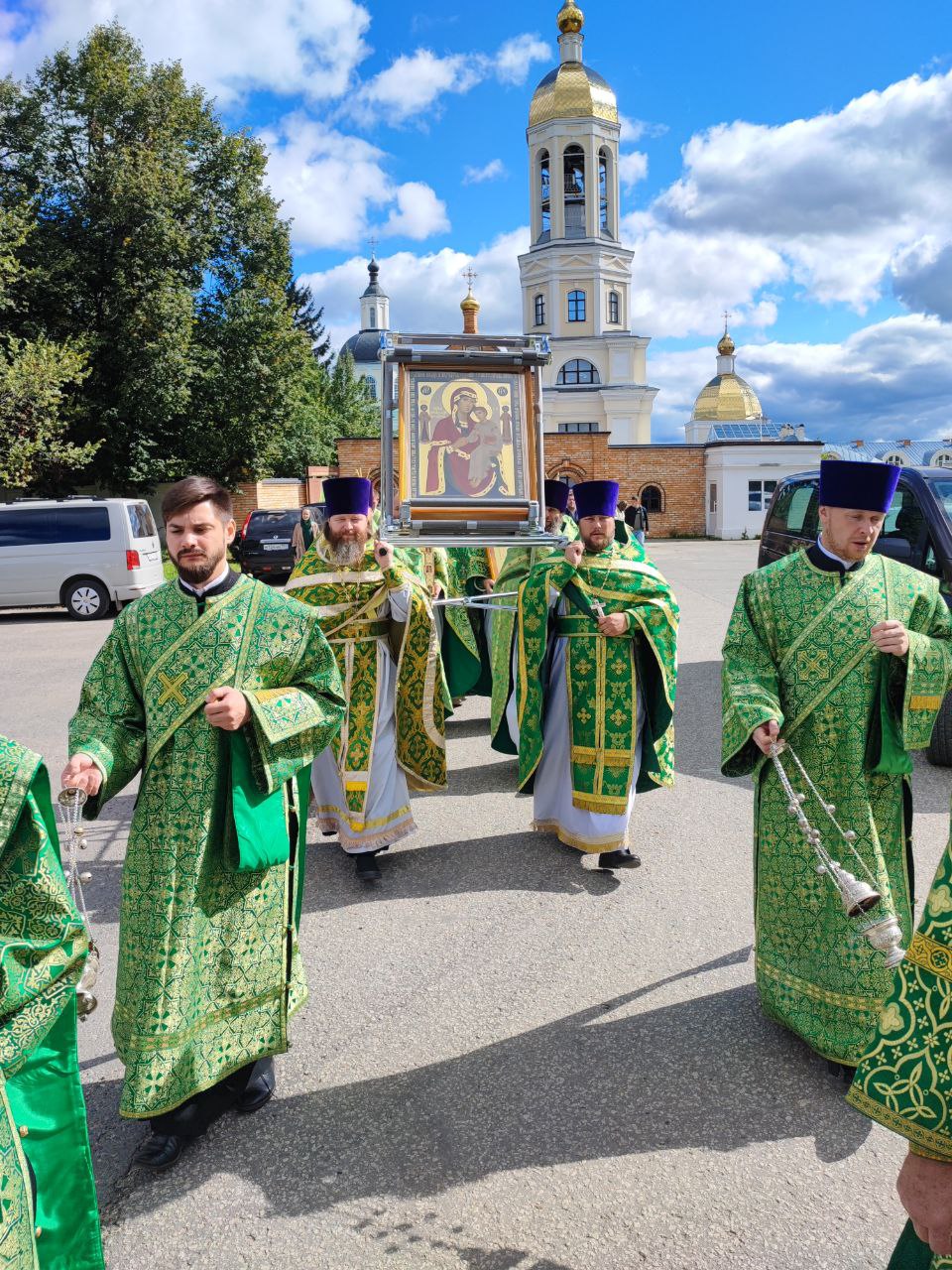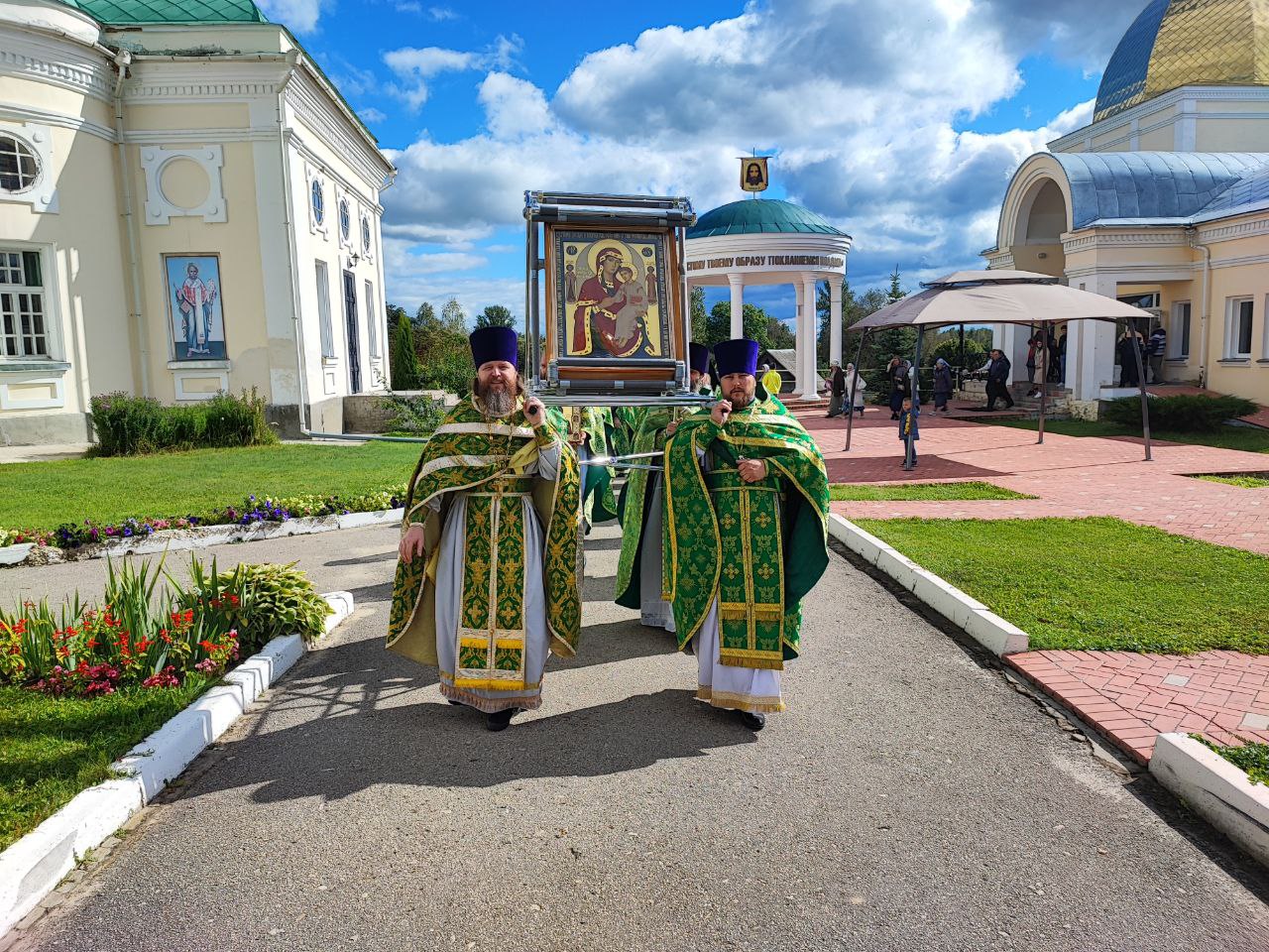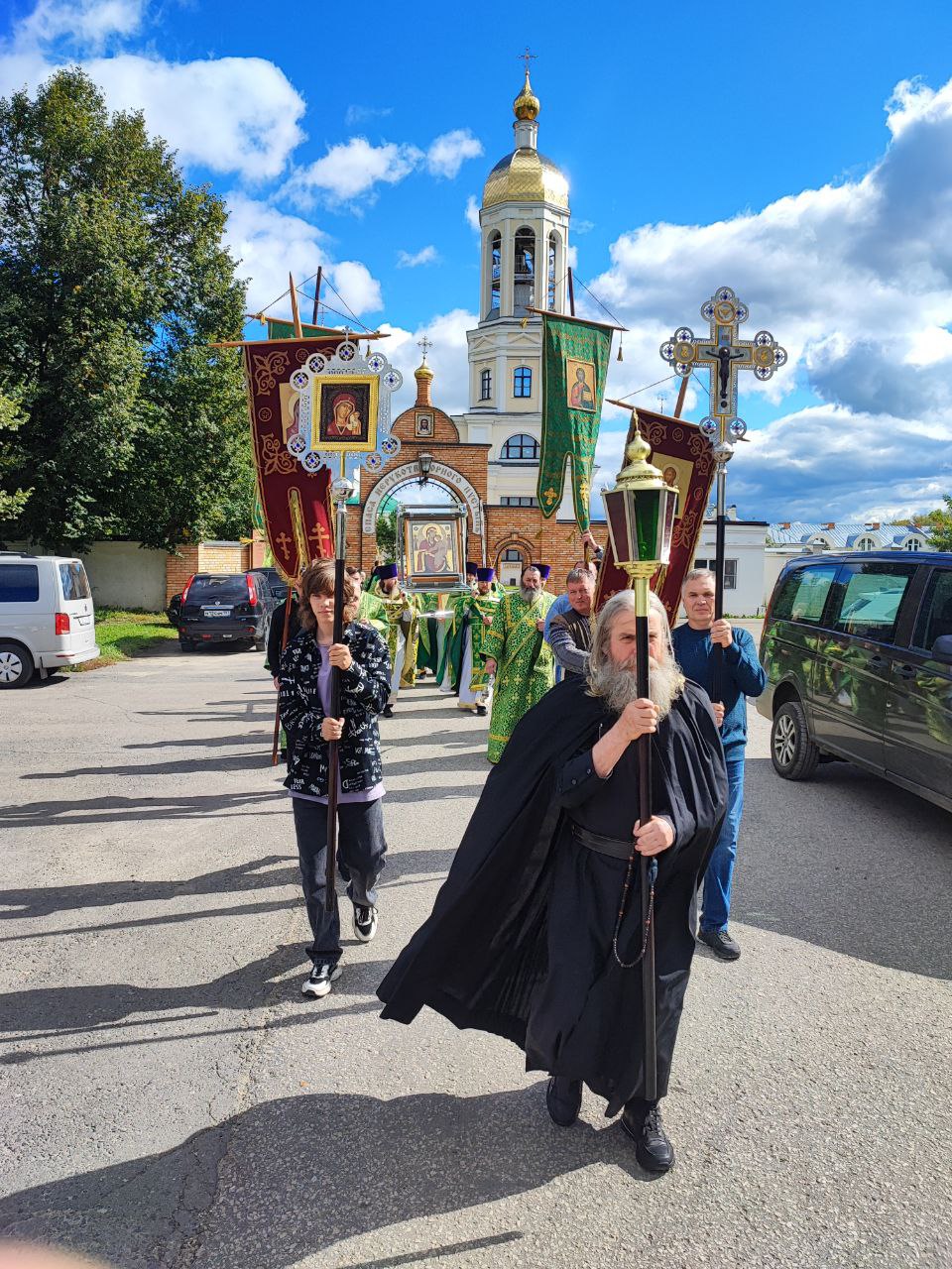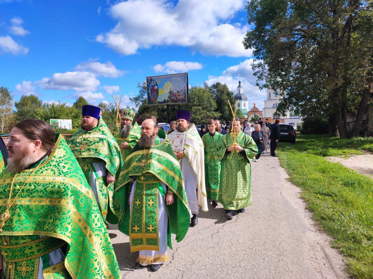 По отпусте литургии состоялся торжественный крестный ход к памятнику святому Кукше, установленному на подъезде к монастырю, где владыка совершил малое освящение воды и вознес молитву преподобномученику.