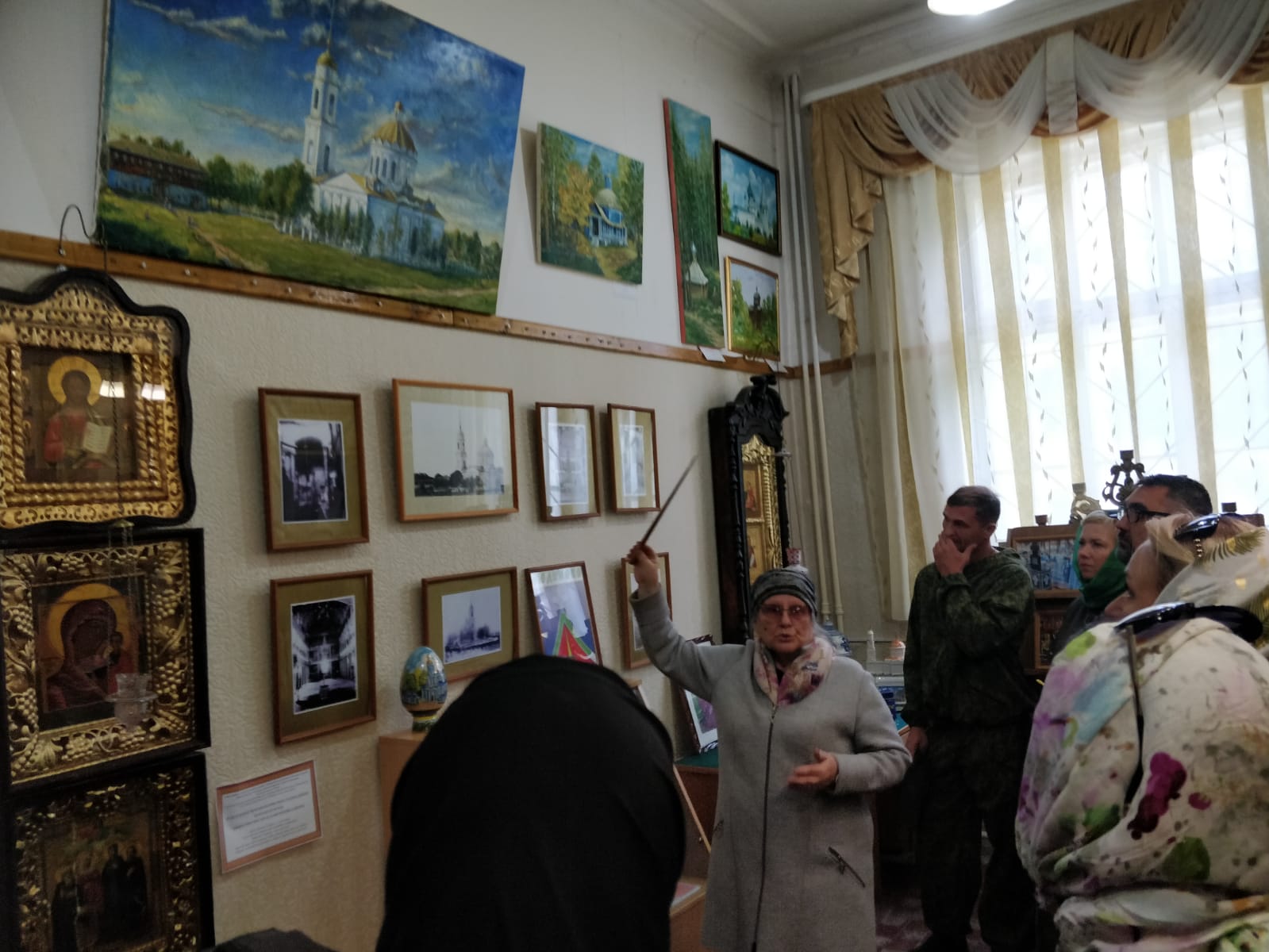 В этот же день  храм посетила делегация «Общества жен и матерей участников СВО» из Брянска. Сотрудником музея при храме Галиной Фёдоровной Гончаровой по благословению настоятеля для Марии Матвеевны Власенковой и гостей из Брянска была проведена обзорная экскурсия по экспозициям музея. В заключение встреч отец Алексий, поздравив гостей с праздником, с пожеланиями помощи Божией и здравия на многая благая лета, вручил им в честь юбилейной даты города подарки.