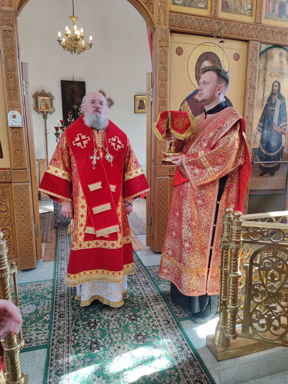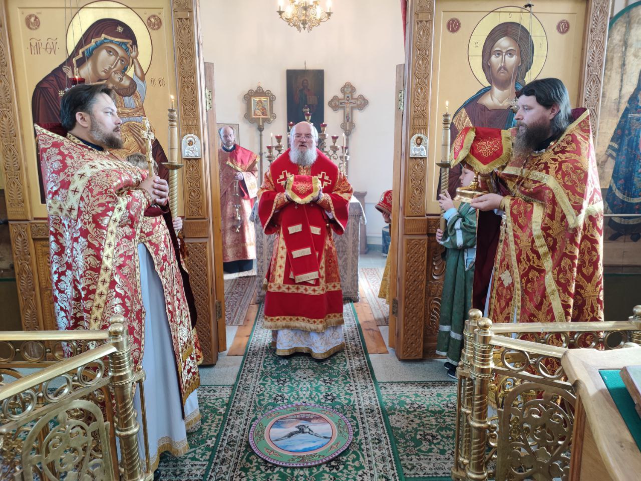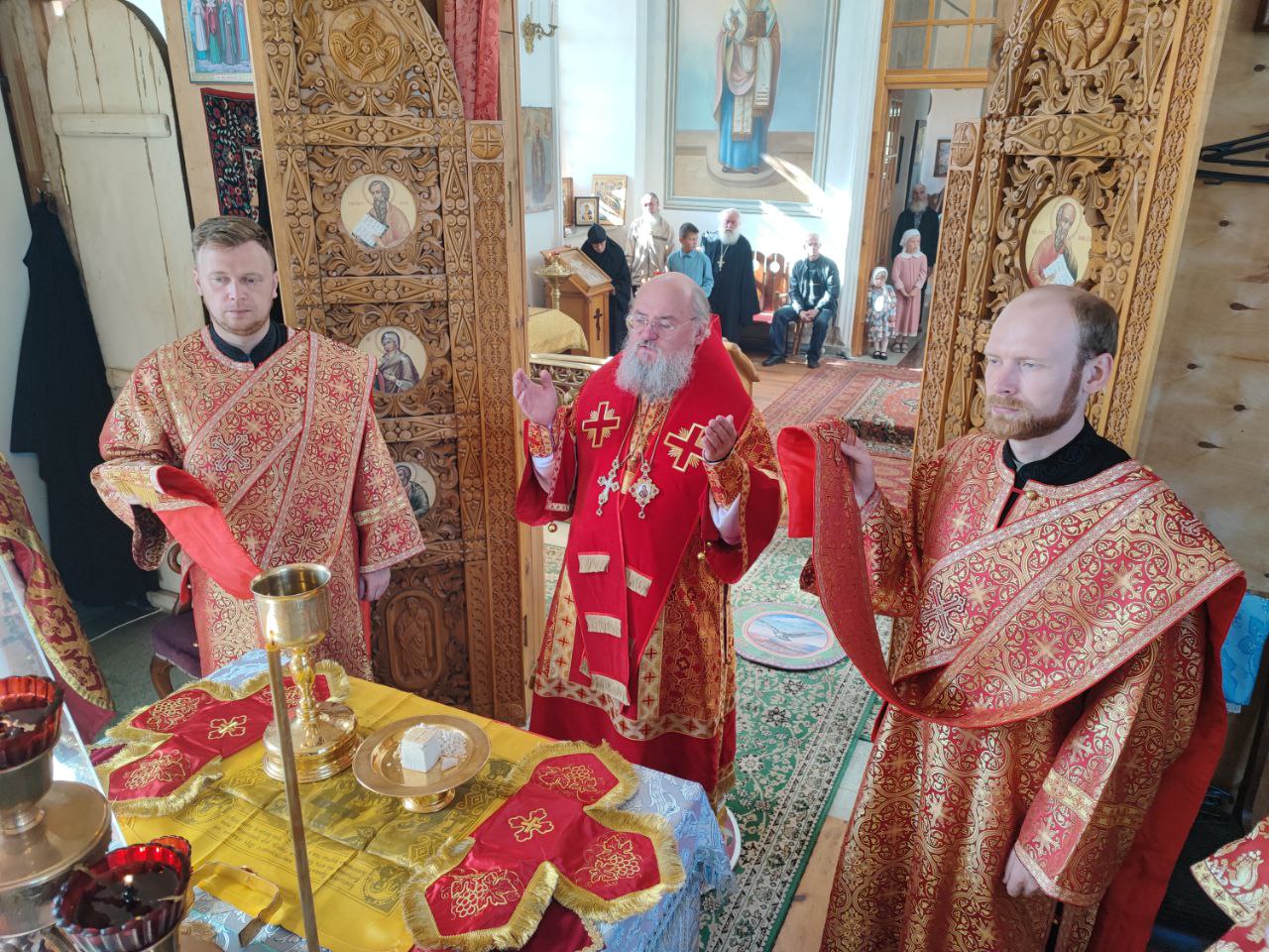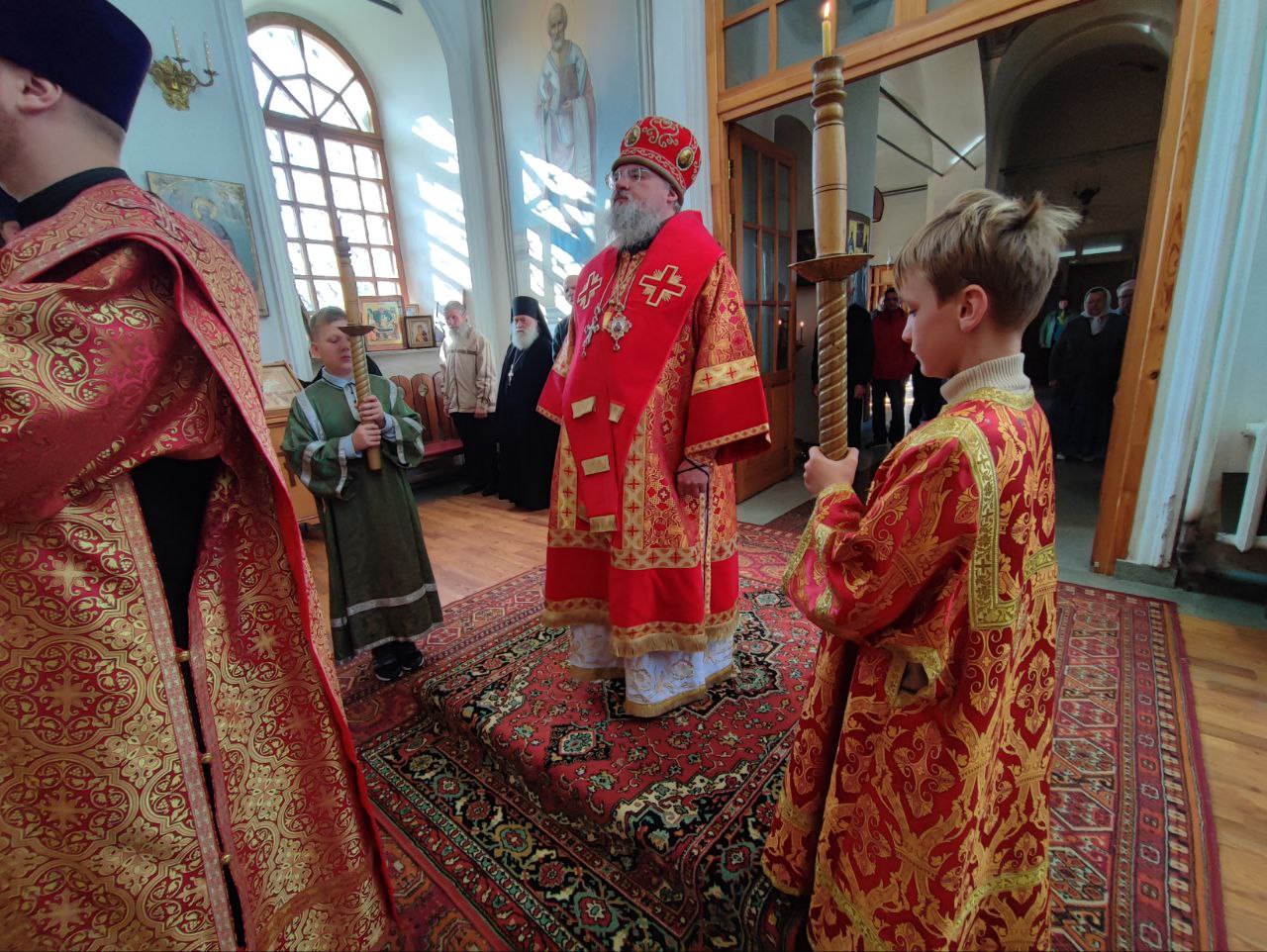 Преосвященному владыке сослужили: настоятель храма протоиерей Ярослав Мудрый, протоиерей Антоний Хатунцев, диакон Евгений Ковригин и иеродиакон Лука (Старостин).