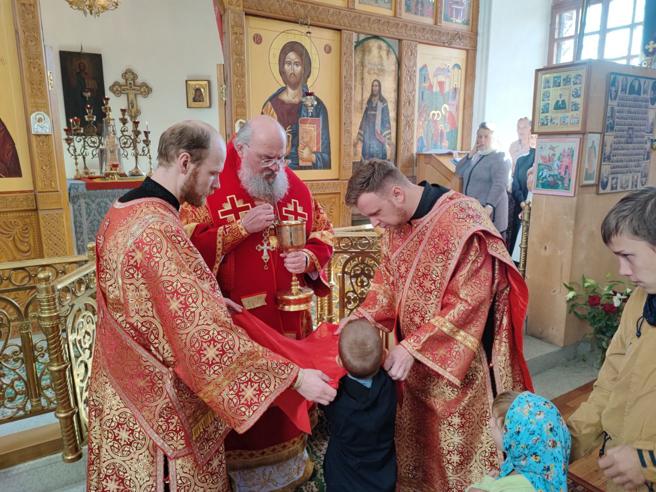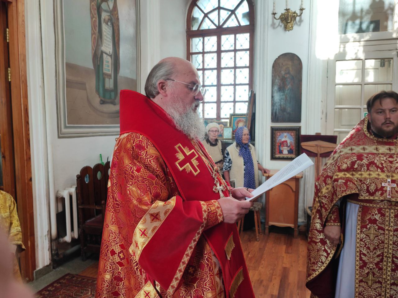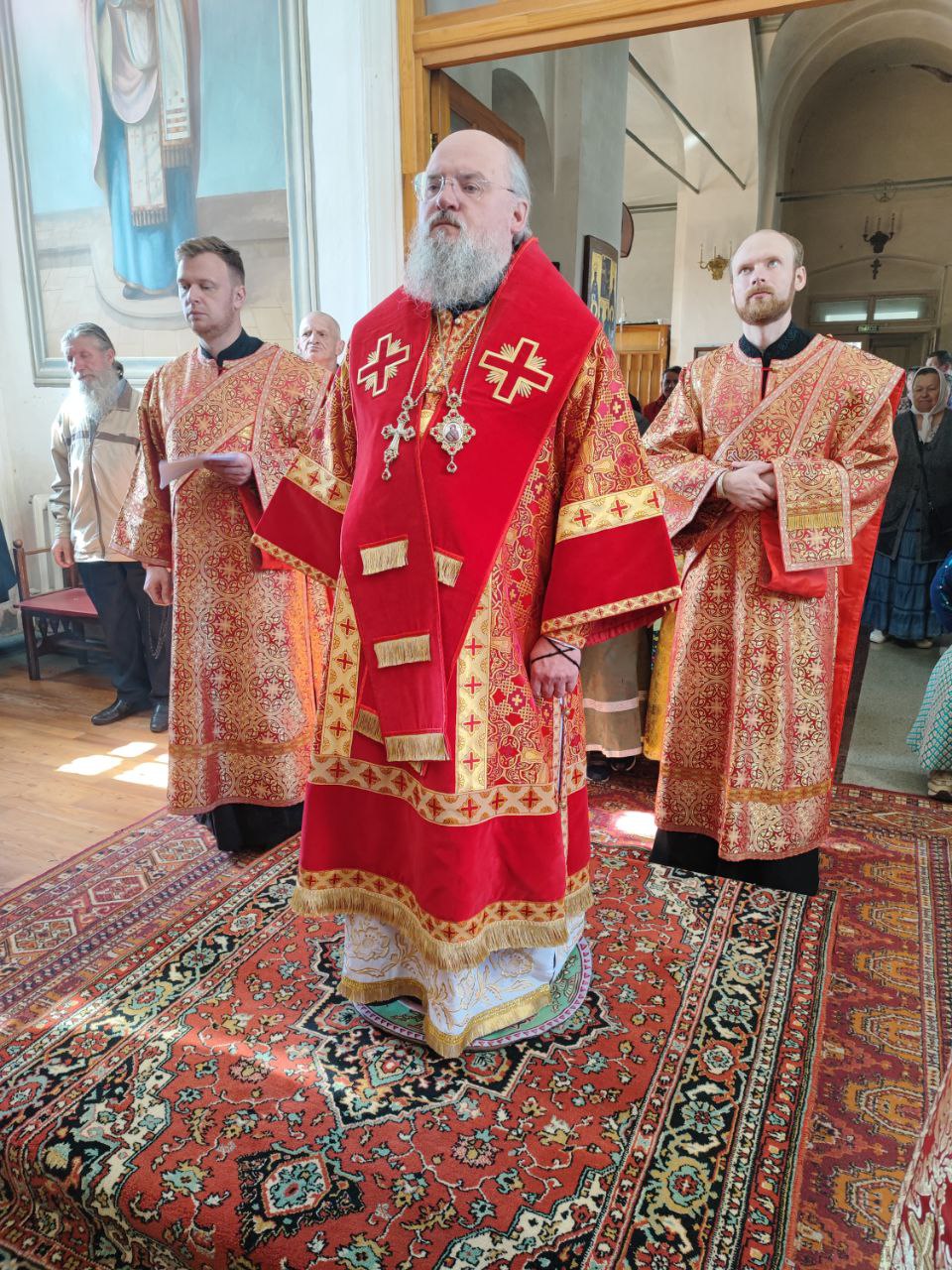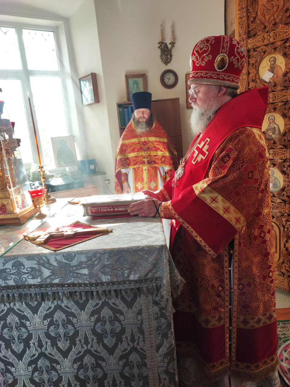 Преосвященному владыке сослужили: настоятель храма протоиерей Ярослав Мудрый, протоиерей Антоний Хатунцев, диакон Евгений Ковригин и иеродиакон Лука (Старостин).