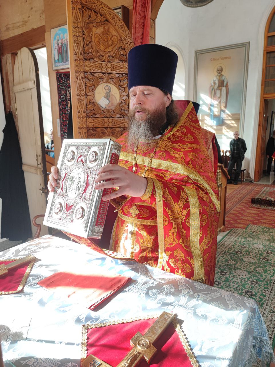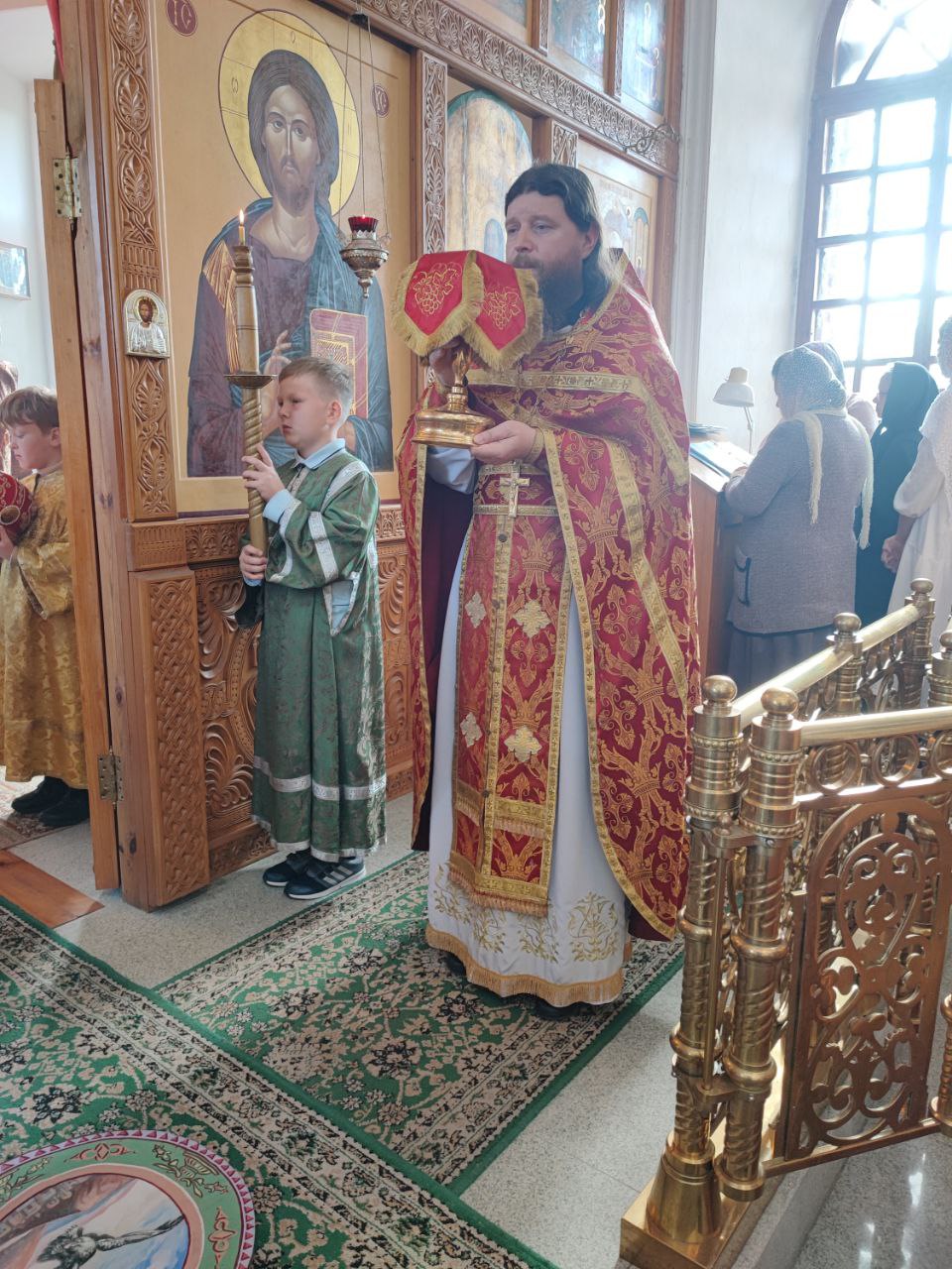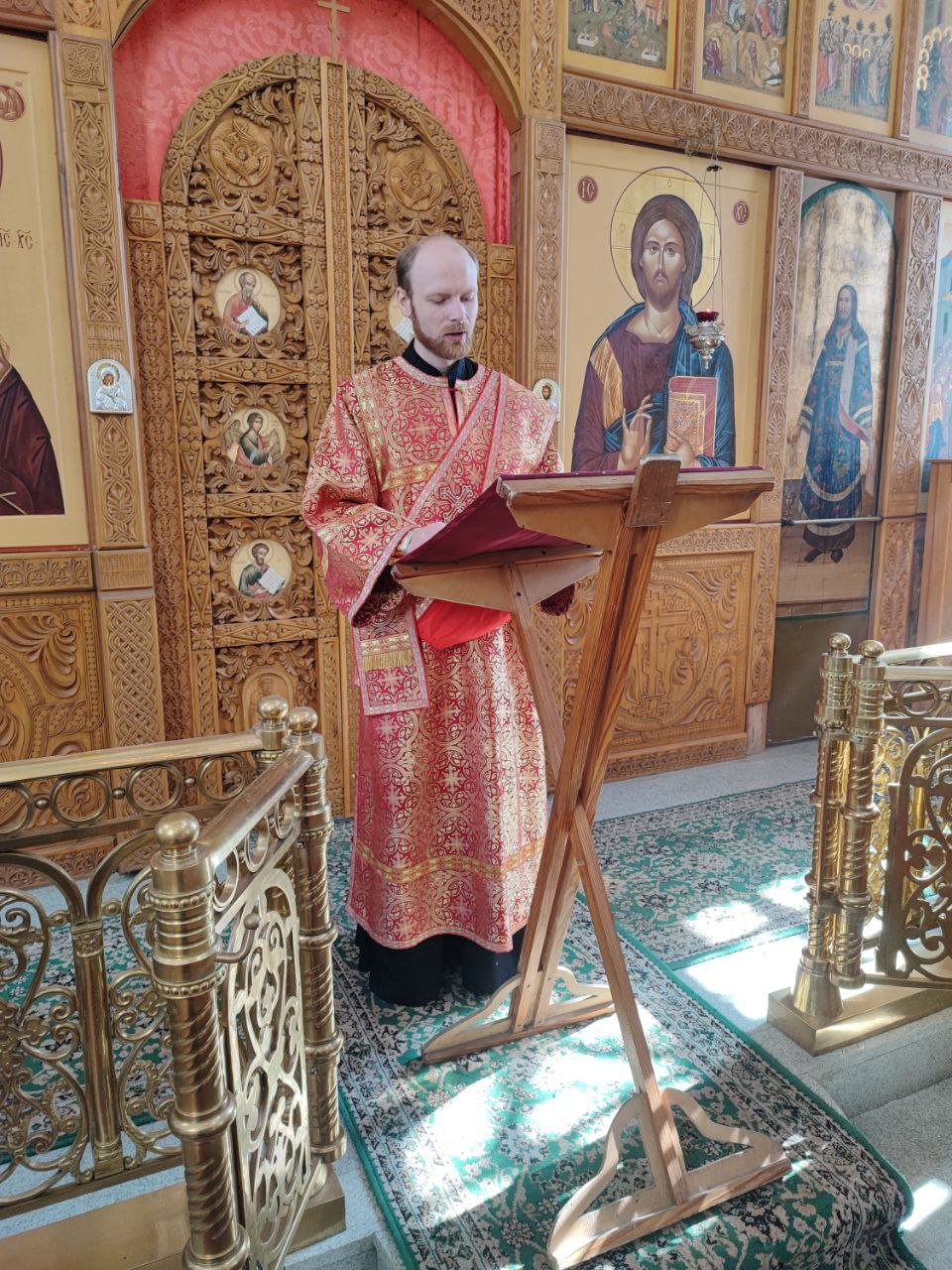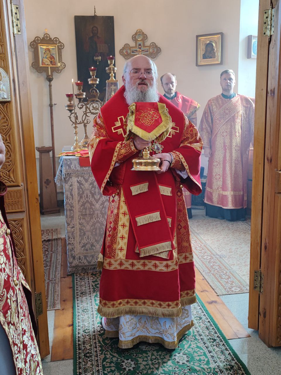 Преосвященному владыке сослужили: настоятель храма протоиерей Ярослав Мудрый, протоиерей Антоний Хатунцев, диакон Евгений Ковригин и иеродиакон Лука (Старостин).