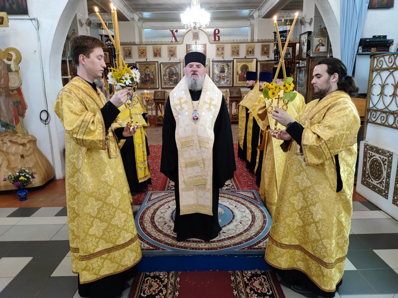 Архипастырю сослужили клирики храмов города Людиново.