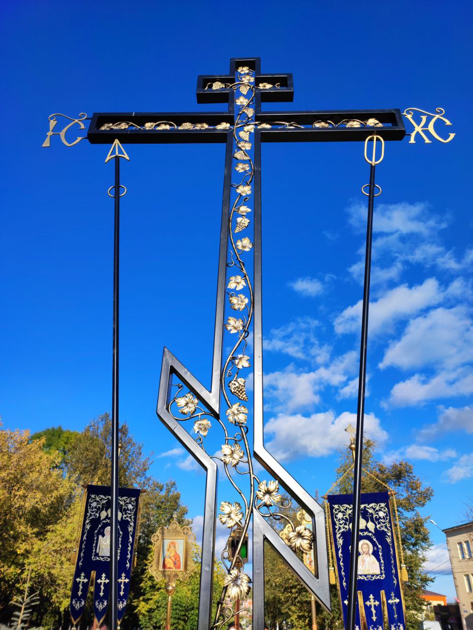 «Спаси Господи, люди Твоя и благослови достояние Твое победы православным христианом на сопротивныя даруя, и Твое сохраняя Крестом Твоим жительство»
