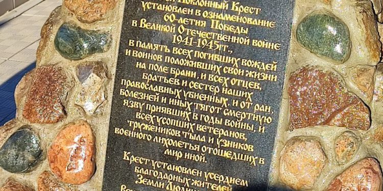 Епископ Никита освятил Поклонный Крест на площади победы в городе Людиново