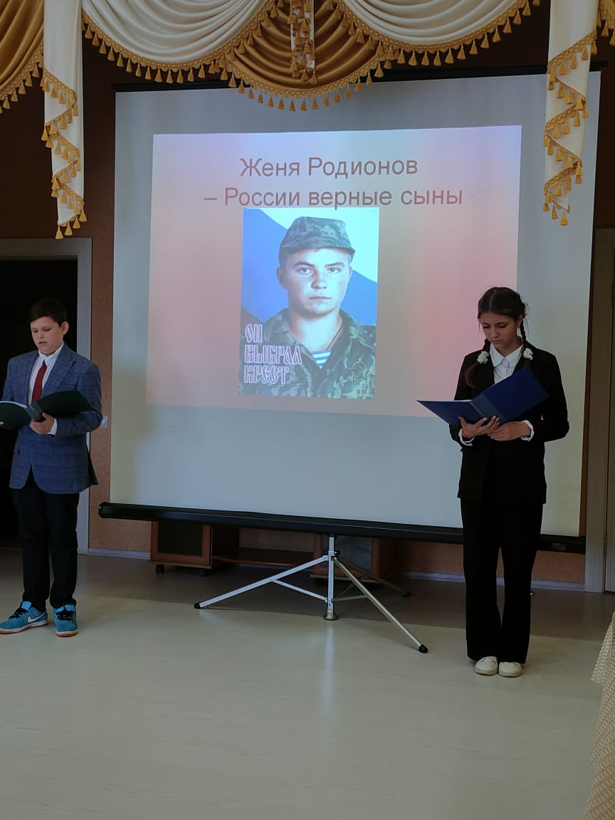 Алексашин Алексей, Демин Иван, Силичева Анжелика Зареченская СШ «Он выбрал крест», рассказ о Евгении Родионове.