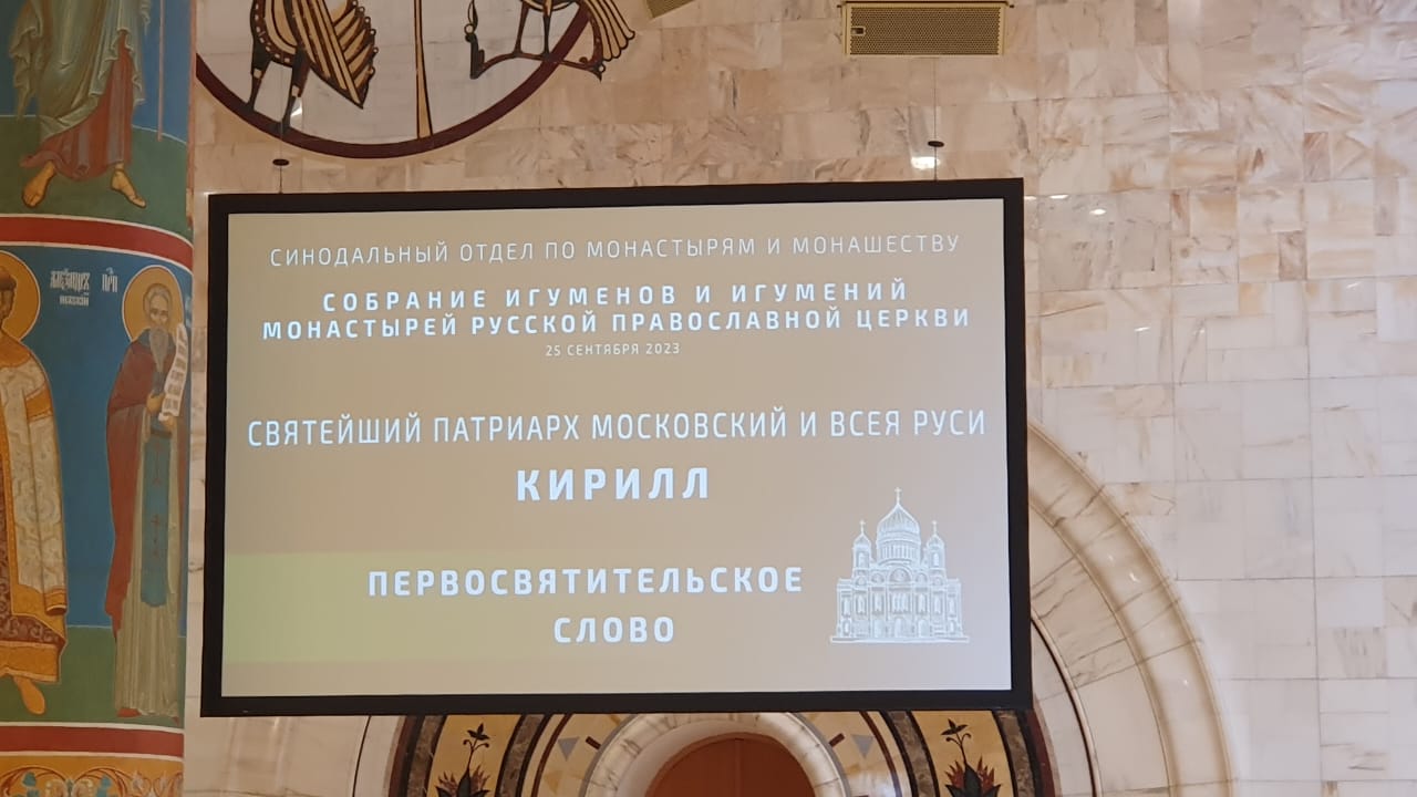 25 сентября 2023 года в Зале церковных соборов кафедрального соборного Храма Христа Спасителя в Москве Святейший Патриарх Московский и всея Руси Кирилл возглавил работу Собрания игуменов и игумений монастырей Русской Православной Церкви. Перед началом собрания в нижней Преображенской церкви кафедрального соборного Храма Христа Спасителя была совершена Божественная литургия.Богослужение совершили: председатель Синодального отдела по монастырям и монашеству, наместник Донского ставропигиального мужского монастыря г. Москвы митрополит Каширский Феогност; председатель Комиссии по организации жизни монастырей и монашества Межсоборного присутствия Русской Православной Церкви митрополит Нижегородский и Арзамасский Георгиймитрополит Саранский и Мордовский Зиновий; столичное духовенство. За богослужением молились участники собрания, которые по окончании Литургии проследовали в Зал церковных соборов. Места в президиуме заседания заняли: Святейший Патриарх Московский и всея Руси Кирилл; управляющий делами Московской Патриархии, наместник Новоспасского ставропигиального мужского монастыря г. Москвы митрополит Воскресенский Дионисий; митрополит Каширский Феогност; митрополит Нижегородский и Арзамасский Георгий; заместитель председателя Синодального отдела по монастырям и монашеству, настоятельница Зачатьевского ставропигиального женского монастыря г. Москвы игумения Иулиания (Каледа). В собрании приняли участие ряд архиереев, игумены и игумении монастырей из епархий Русской Православной Церкви. Открывая заседание, митрополит Каширский Феогност приветствовал Святейшего Патриарха Кирилла от лица всех собравшихся. Предстоятель Русской Православной Церкви выступил с основным докладом. Затем с докладом «Монашеский подвиг как путь христианской аскезы» выступил митрополит Саранский и Мордовский Зиновий.