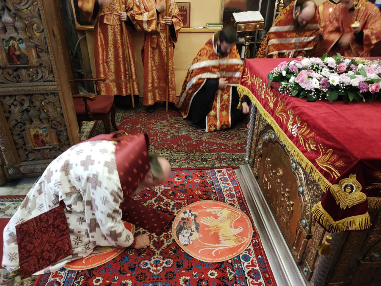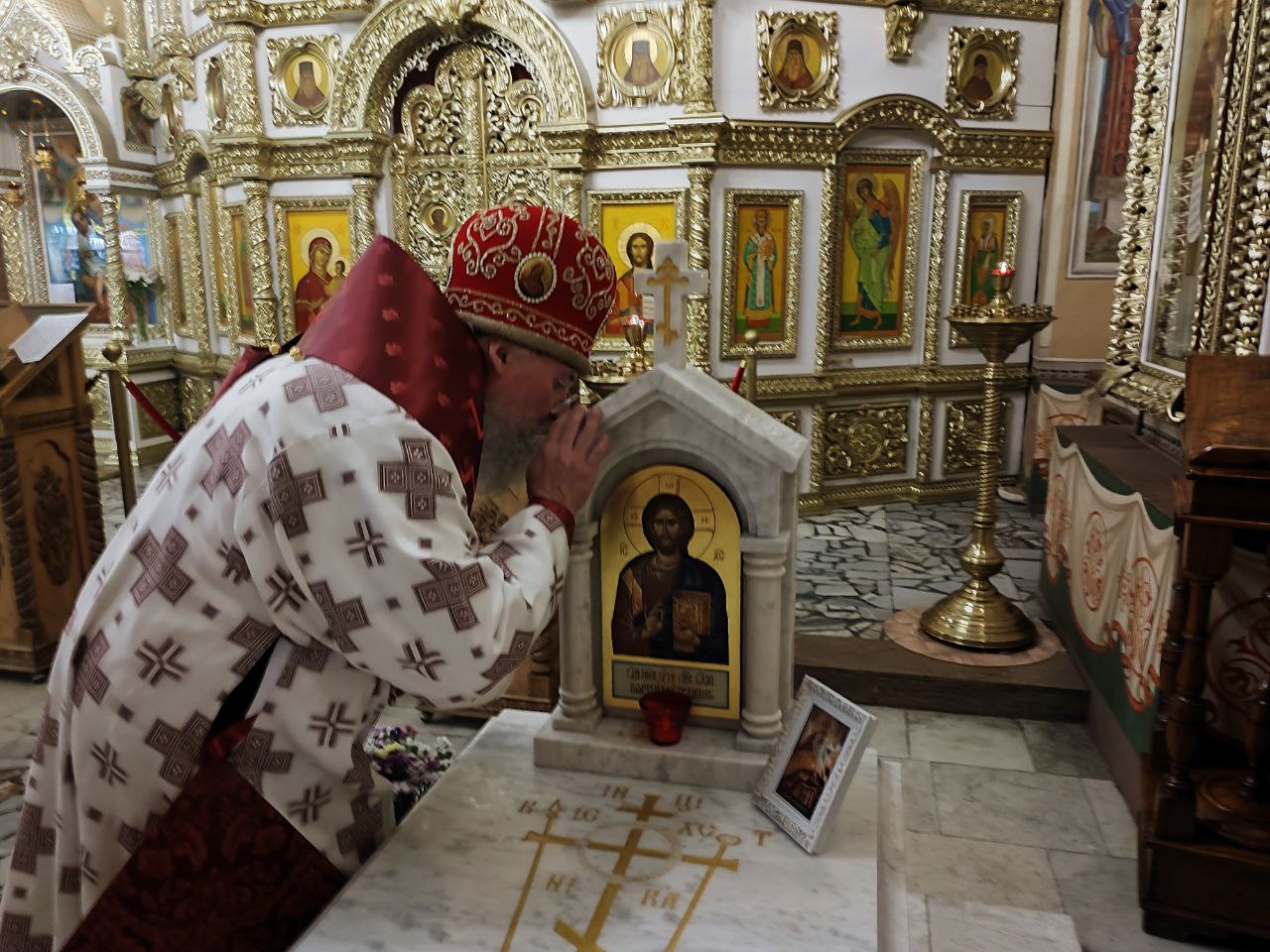 На праздничной утрени по великом славословии владыка совершил  вынос Креста в центр храма и  Чин Воздвижения.