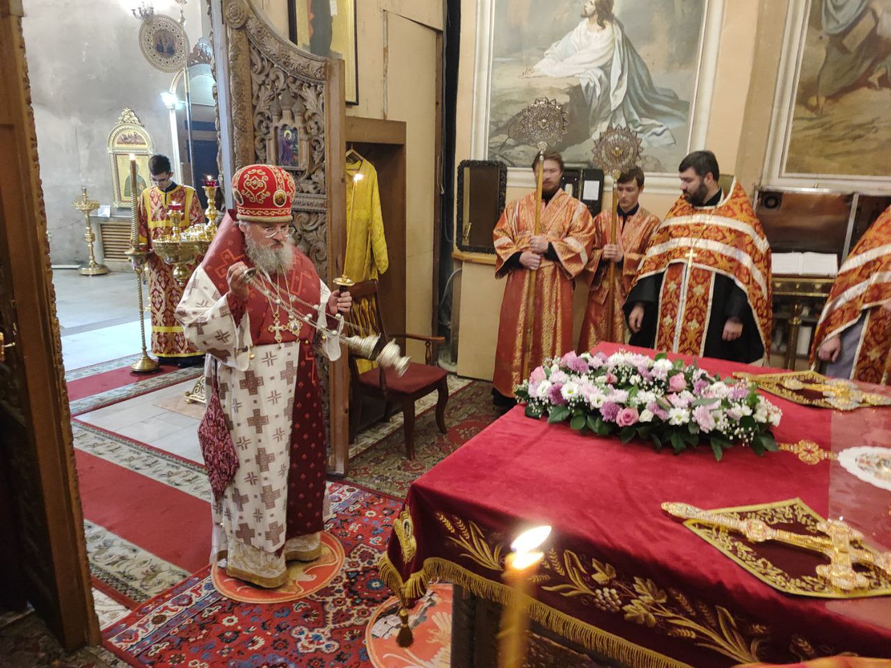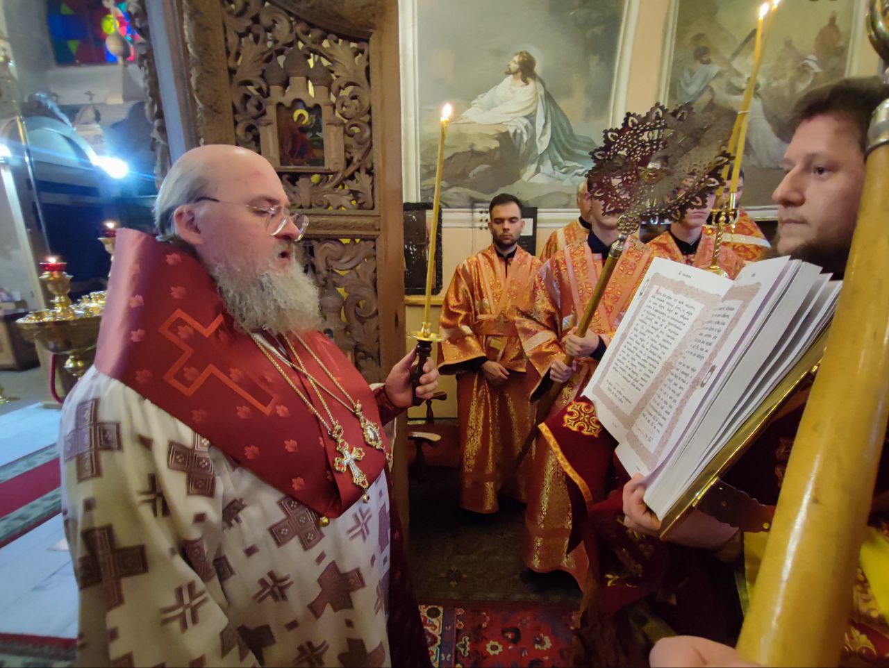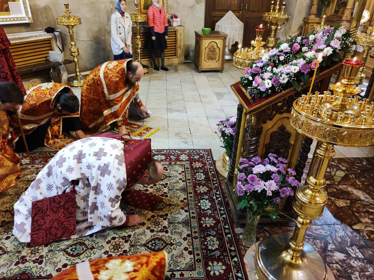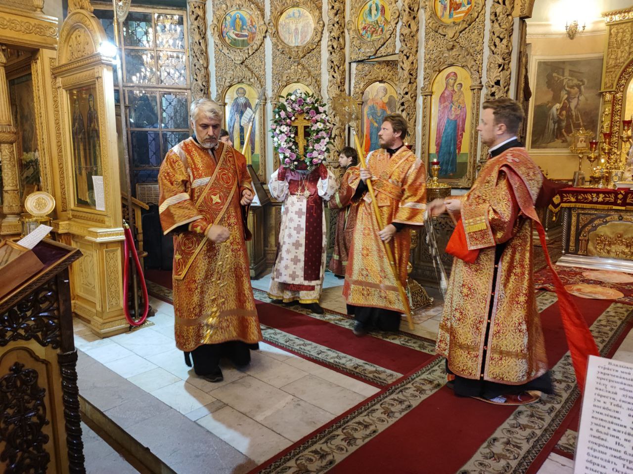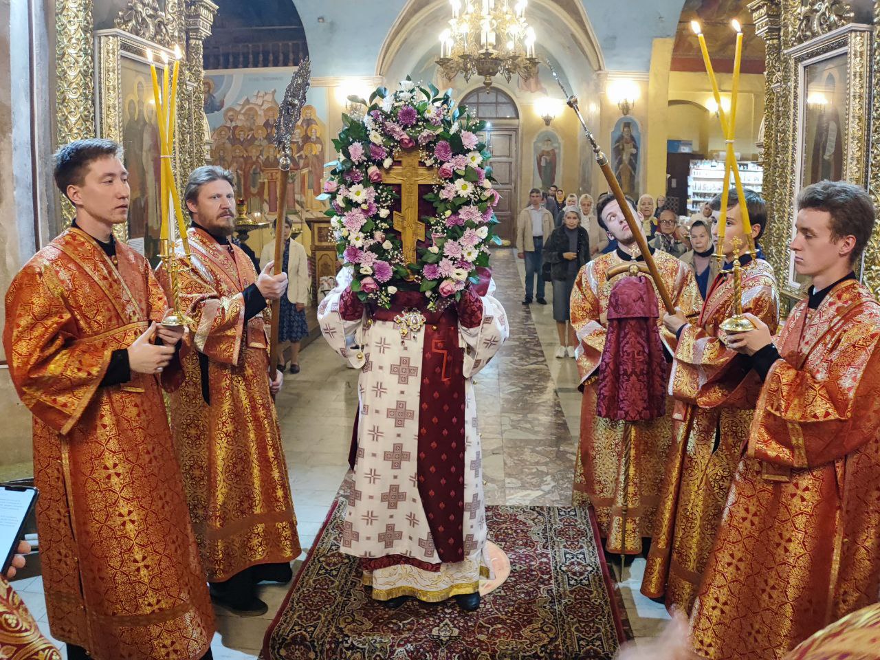 26 сентября, накануне великого двунадесятого праздника Воздвижения Честнаго и Животворящего Креста Господня, епископ Козельский и Людиновский Никита, по благословению митрополита Калужского и Боровского Климента, совершил всенощное бдение в храме святых Жен Мироносиц города Калуги.