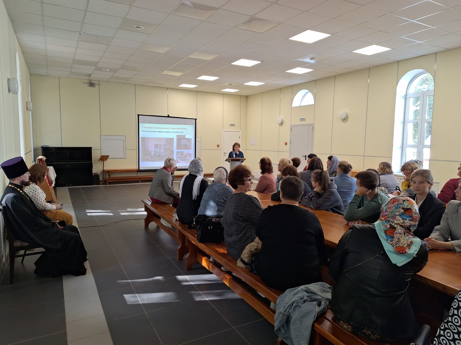 На второй дискуссионной площадке в большом зале Духовно – просветительского центра «Светоч» при Казанском соборе города Людиново, куратором которой был клирик Казанского собора Людинова иерей Алексий Сначёв, обсуждалась не менее интересная и волнующая тема «Опыт и взаимодействия Русской Православной Церкви и светских организаций». С докладами из опыта работы выступали представители дошкольных и других организаций. Эта была самая многочисленная секция, где священнослужители, преподаватели ОПК, воспитатели детских садов дискутировали и высказывали свое мнение по наболевшим вопросам, делились опытом своей деятельности.