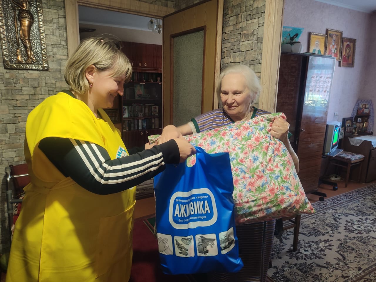 1 октября – Международный день пожилого человека. В этот день волонтеры «Милосердие — Людиново» социальной службы при Казанском соборе города Людиново (руководитель Елена Васильевна Коношенко) тоже не остались в стороне. Ко дню пожилого человека провели акции внимания: навещали бабушек и дедушек, приносили подарки одиноким пожилым людям. Радует, что подушки, подаренные пожилым людям к празднику, были изготовлены с любовью и заботой швейным волонтерским подразделением «Милосердие-Людиново». Праздничные подарки были переданы пенсионерам Центра социального обслуживания, членам Всероссийского общества инвалидов и Всероссийского общества слепых города Людиново, в том числе жителям Жиздринского района, пожилым прихожанам Казанского собора и Лазаревского храма. Во все времена самым важным было и остается внимание и забота о близких людях! Но в этот день стоит не только вспомнить о тех, кто подарил жизнь лично нам, но и поблагодарить всех пожилых людей. Давайте сегодня поздравим не только наших родных, но и тех, кто окружает нас: соседей по подъезду, дому, двору! Пусть им станет тепло на душе от внимания и добрых слов! С праздником, с пожеланием самого главного в этот день – крепкого здоровья и самых радостных дней. Пусть ваша жизнь будет наполнена активными и яркими событиями, а наша любовь и забота будут всегда рядом с вами!