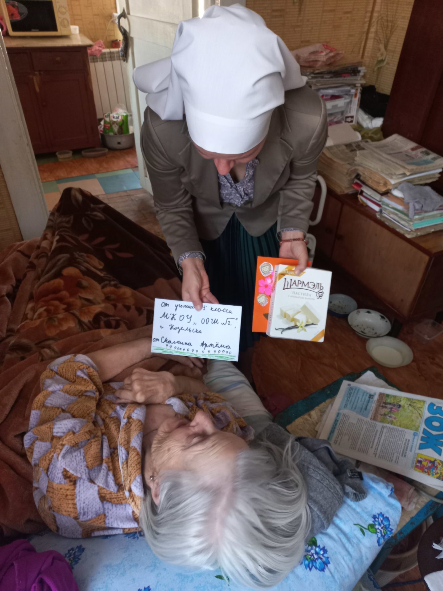 Епархиальное Сестричество Милосердия в честь святой царицы Александры Феодоровны в преддверии Дня пожилого человека посетило Козельскую  Основную Общеобразовательную школу №2 , где юные друзья, ученики 5 класса, подготовили для пожилых подопечных сделанные своими руками поздравительные открытки и именные письма, приложив разные сладкие угощения!