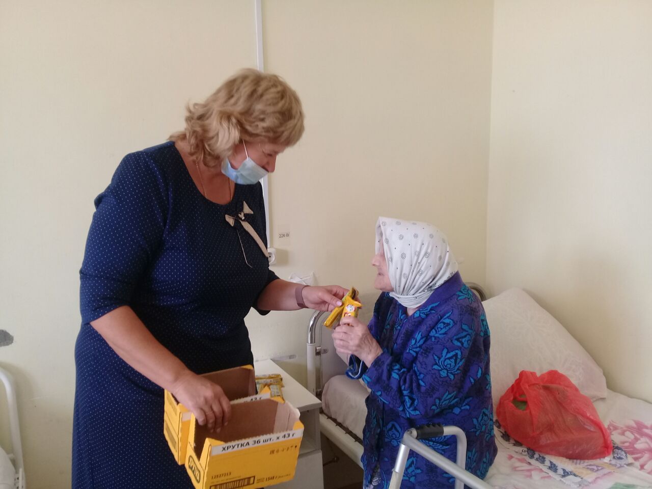 3 октября, настоятель храма Воскресения Христова в селе Ульяново, протоиерей Максим Садовников вместе с социальным отделом Ульяновского района побывали в районной больнице. Заведующий отделом социальной защиты населения администрации МР «Ульяновский район» Ульяшина Юлия Петровна и заведующая отделением в Ульяновском районе социального обслуживания граждан пожилого возраста и инвалидов Полякова Татьяна Петровна, посетили престарелых людей в палатах сестринского ухода, чтобы поздравить с международным денем пожилого человека. Всем преподнесли сладкие подарки и поздравили с праздником. Священника и работников социального отдела района встречали с радостью. Пожилым людям сказали много хороших, добрых слов и пожеланий.