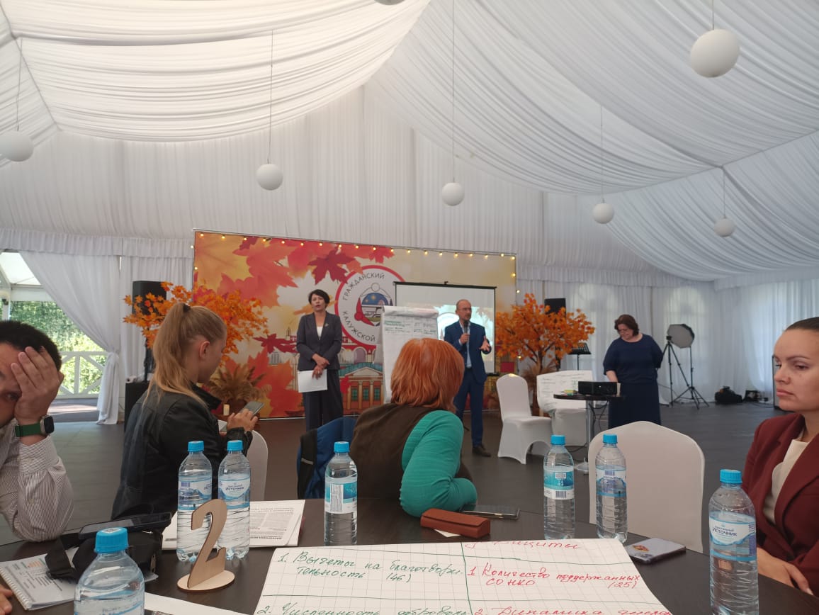 29 сентября в Эко-парке «Голицыно» прошел V Гражданский форум Калужской области. Самые активные общественные организации собрались для знакомства, обмена опытом, подведения итогов свой работы. Директор Епархиального Социального центра помощи семье и детям «Рождественский» Марина Куклина принимала в нем участие. Цель форума-диалог и объединение усилий представителей НКО, бизнес-сообщества и органов исполнительной власти для формирования современного гражданского общества.  Участниками мероприятия стали руководители и члены некоммерческих организаций, члены Общественной палаты Калужской области, представители региональных органов исполнительной власти, представители Государственной Думы и Общественной палаты РФ. Началом работы форума было торжественное награждение активистов НКО калужской области. В рамках мероприятия прошла деловая игра «Региональный рейтинг «Регион-НКО»: дефициты и «точки роста» третьего сектора в Калужской области». Цель игры — разработка дорожной карты развития некоммерческого сектора региона на 2024 год.