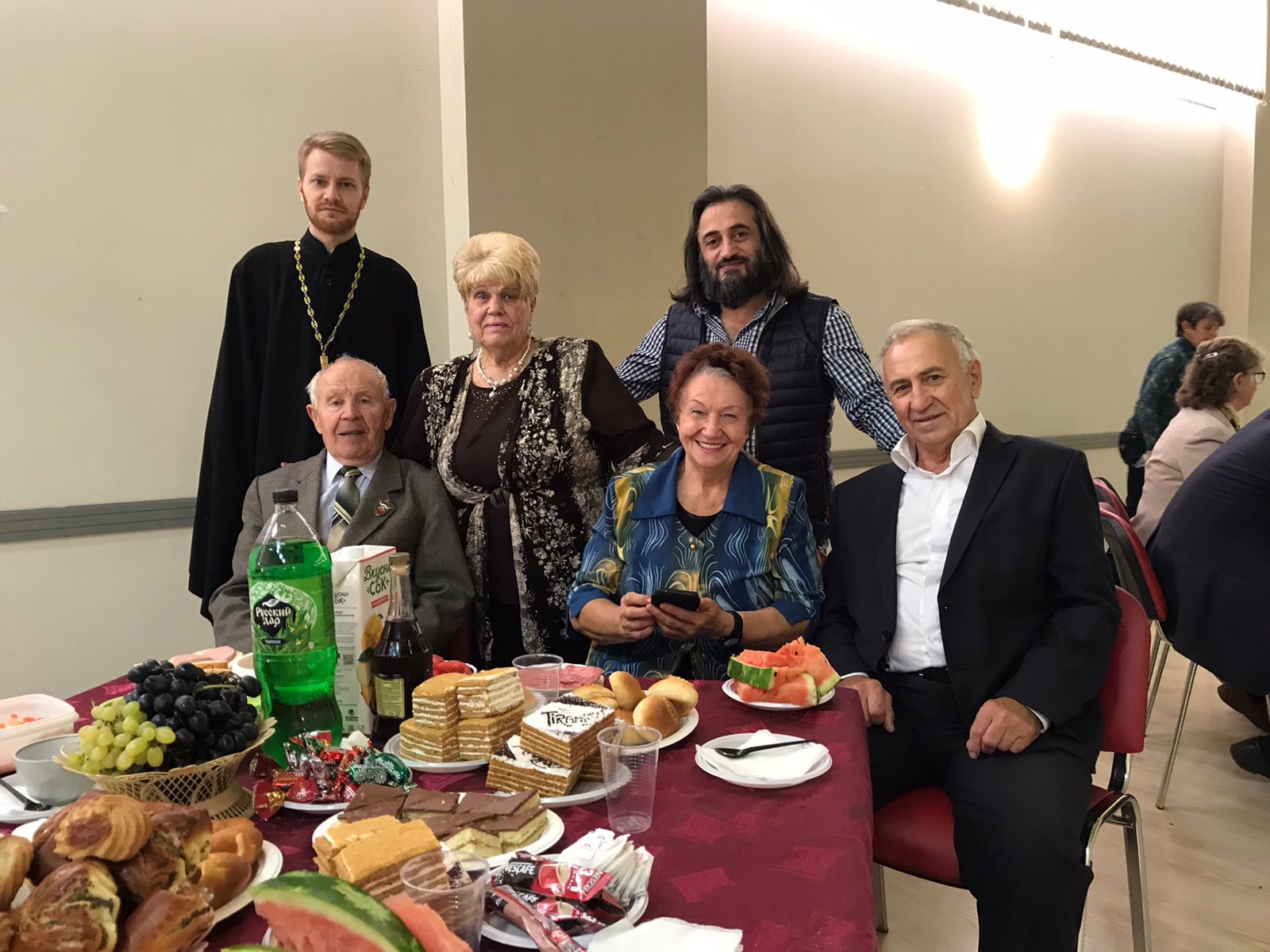 На празднование был приглашен клирик Успенского кафедрального собора иерей Елисей Тимофеев. Отец Елисей поздравил всех собравшихся с Днем Пожилого человека, а также с прошедшими праздниками Крестовоздвижения и днем памяти святых мучениц Веры, Надежды, Любови и матери их Софии.