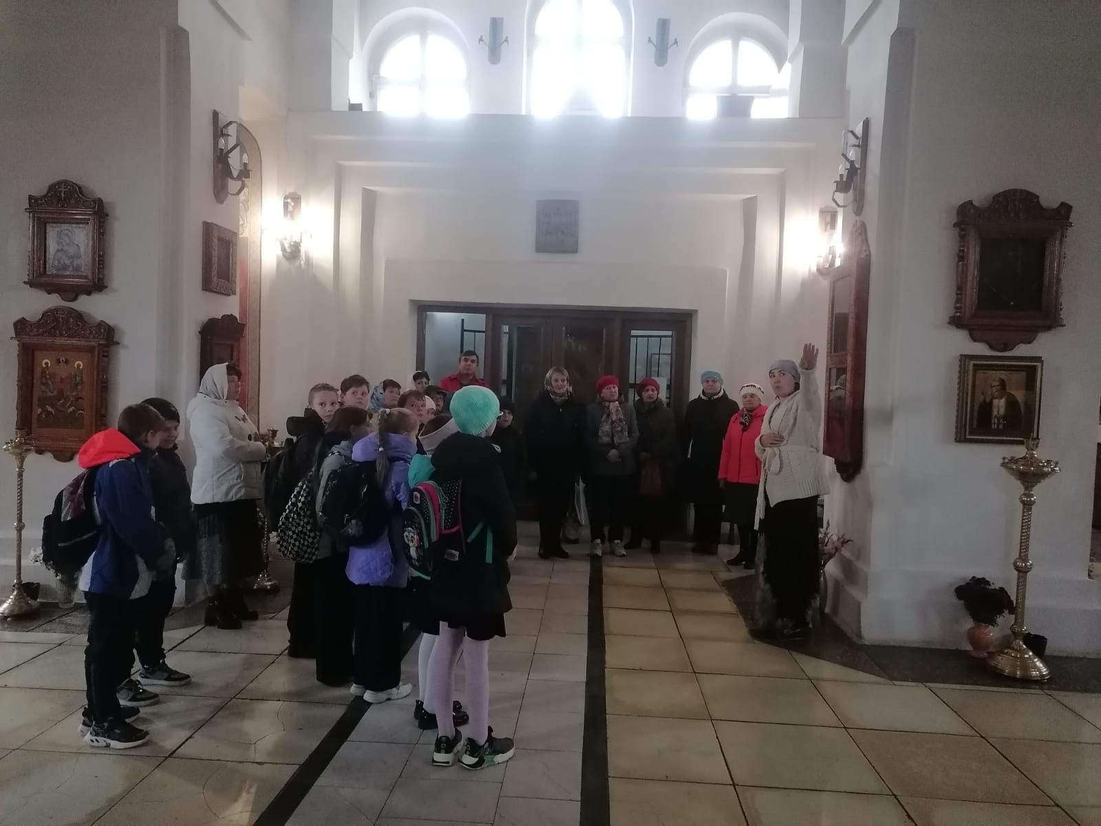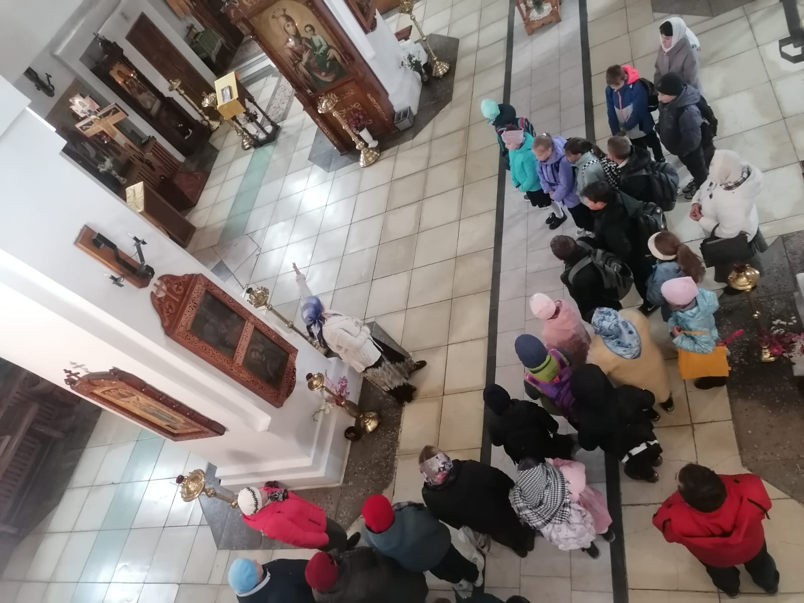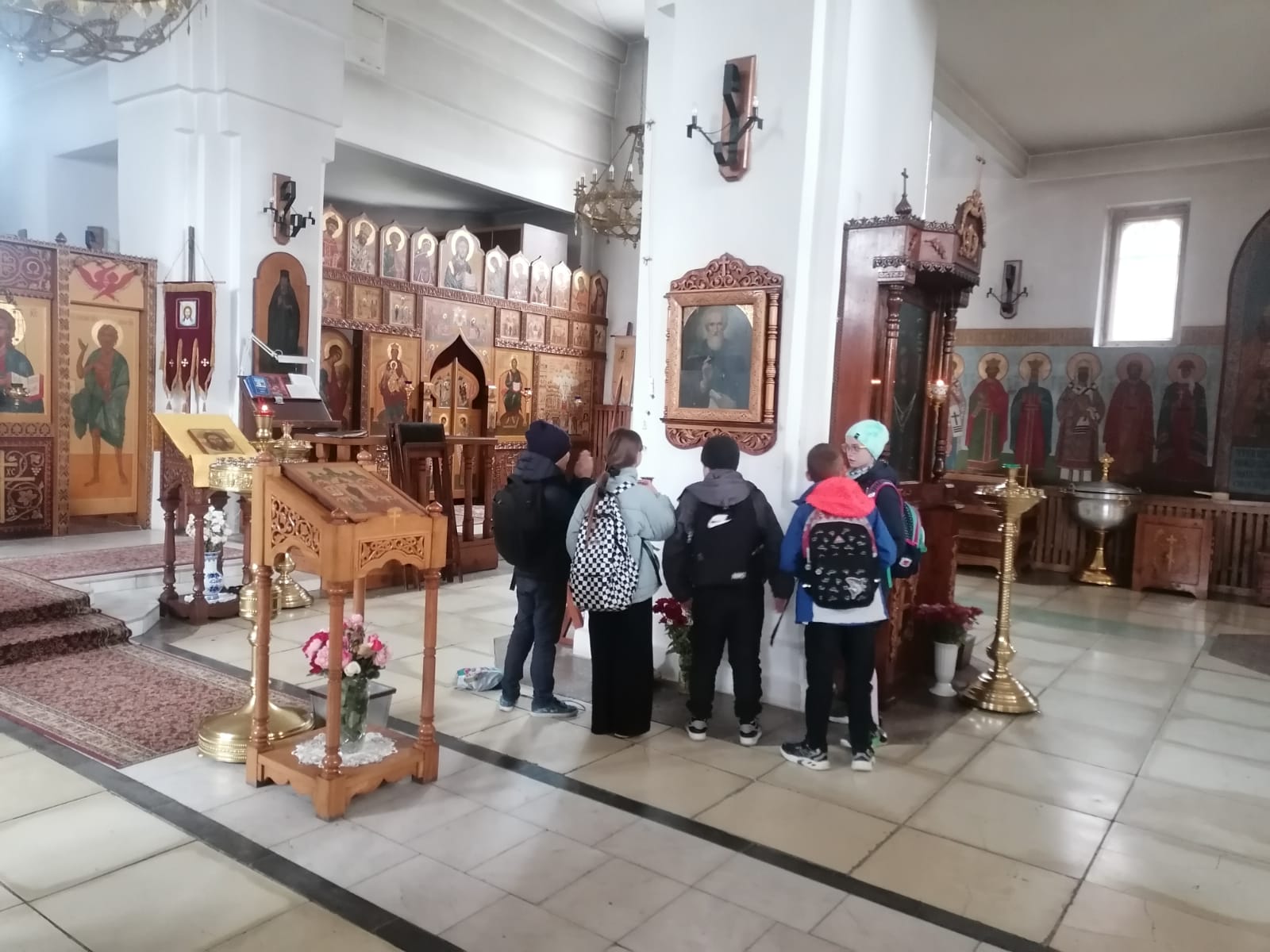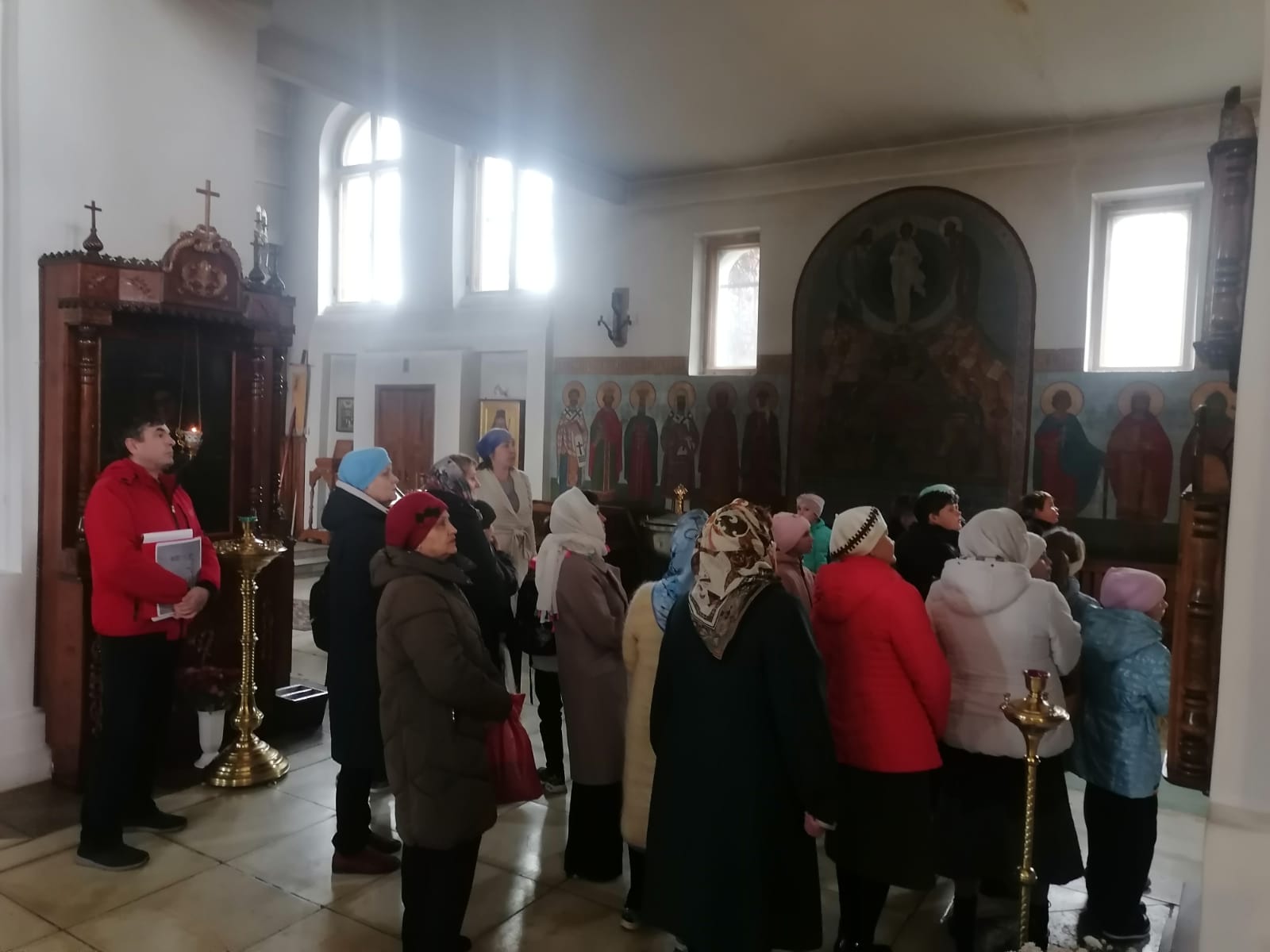 Вначале пришедшие к храму узнали о наполненной драматическими событиями истории храма, затем сотрудница рассказала о внутреннем устройстве и убранстве, о наиболее чтимых иконах.