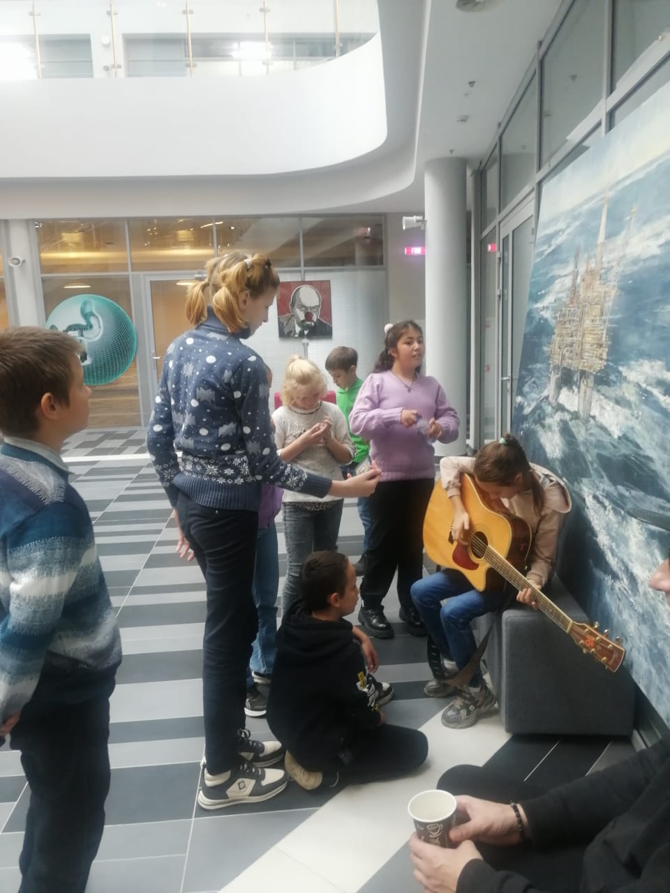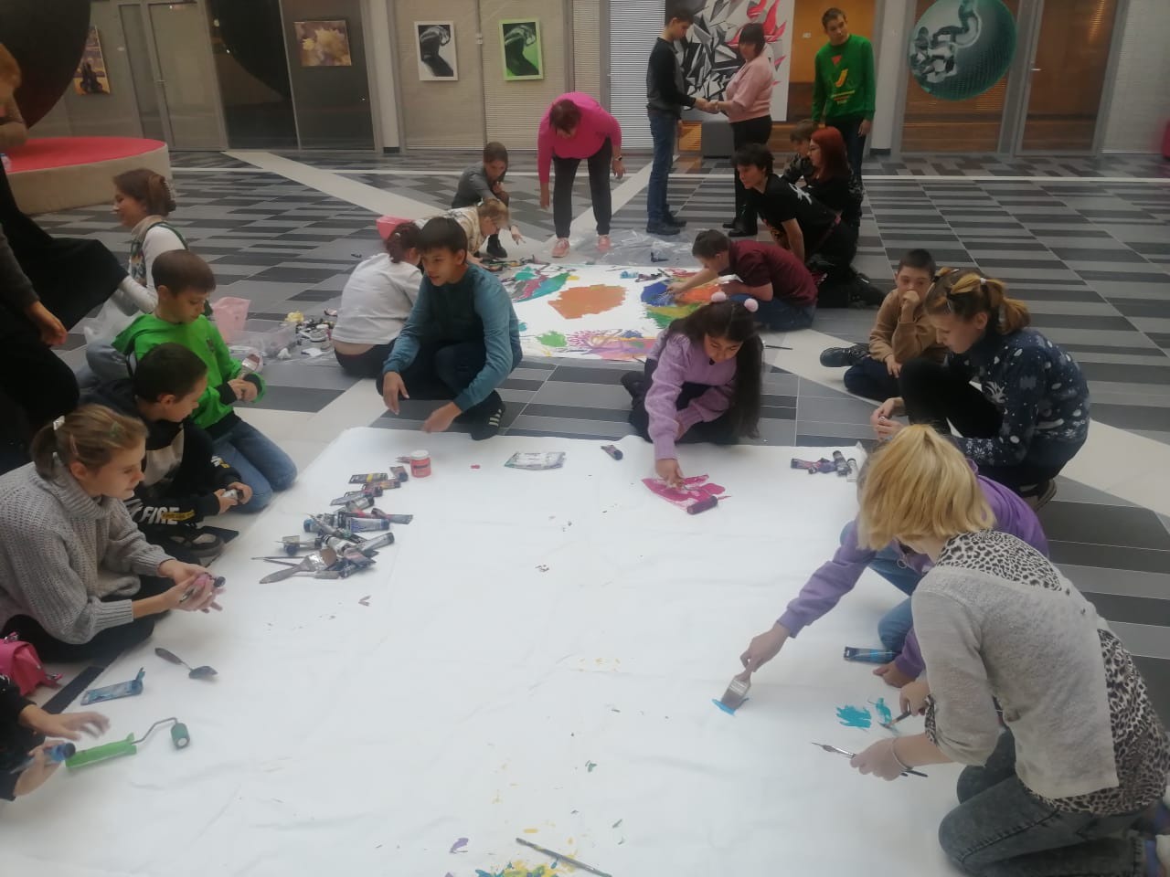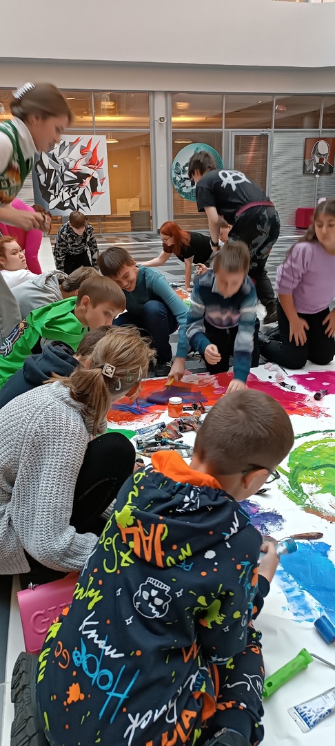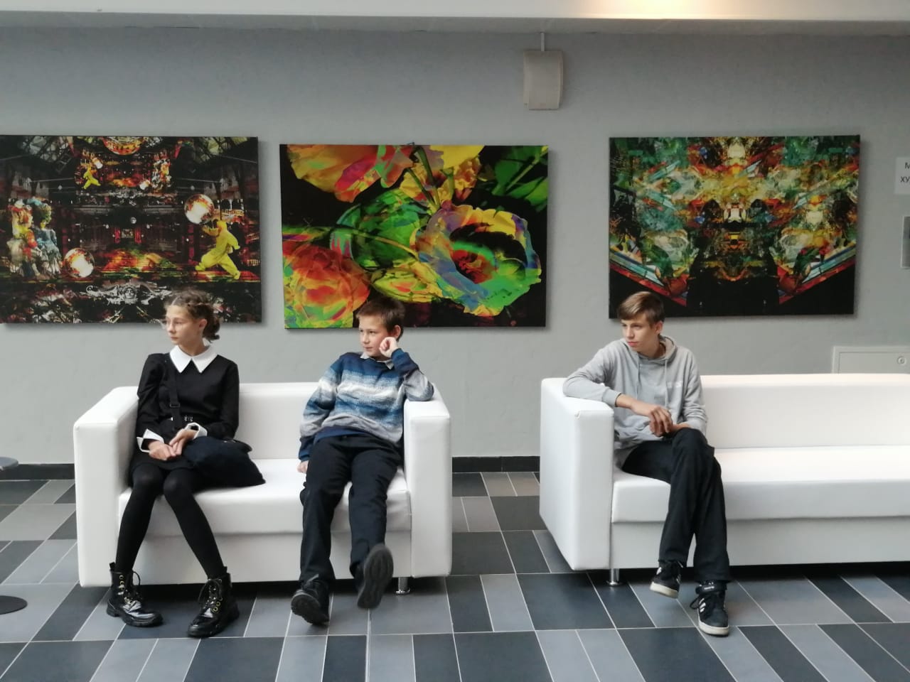 Дети познакомились с работами, представленными на выставке, попробовали себя в роли художника, владеющими новыми технологиями в живописи. Встречи и общение с художниками, музыкантами захватило детей и взрослых. Вместо запланированного часа занятий не заметили, как пролетели 3 часа! Дети в были восторге.