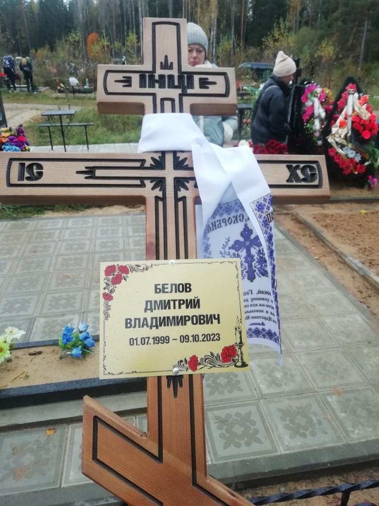 17 октября 2023 года в Казанском соборе города Людиново прошло отпевание воина Дмитрия Белова. Чин отпевания совершил благочинный Людиновского округа Козельской епархии настоятель Казанского собора города Людиново протоиерей Алексий Жиганов.