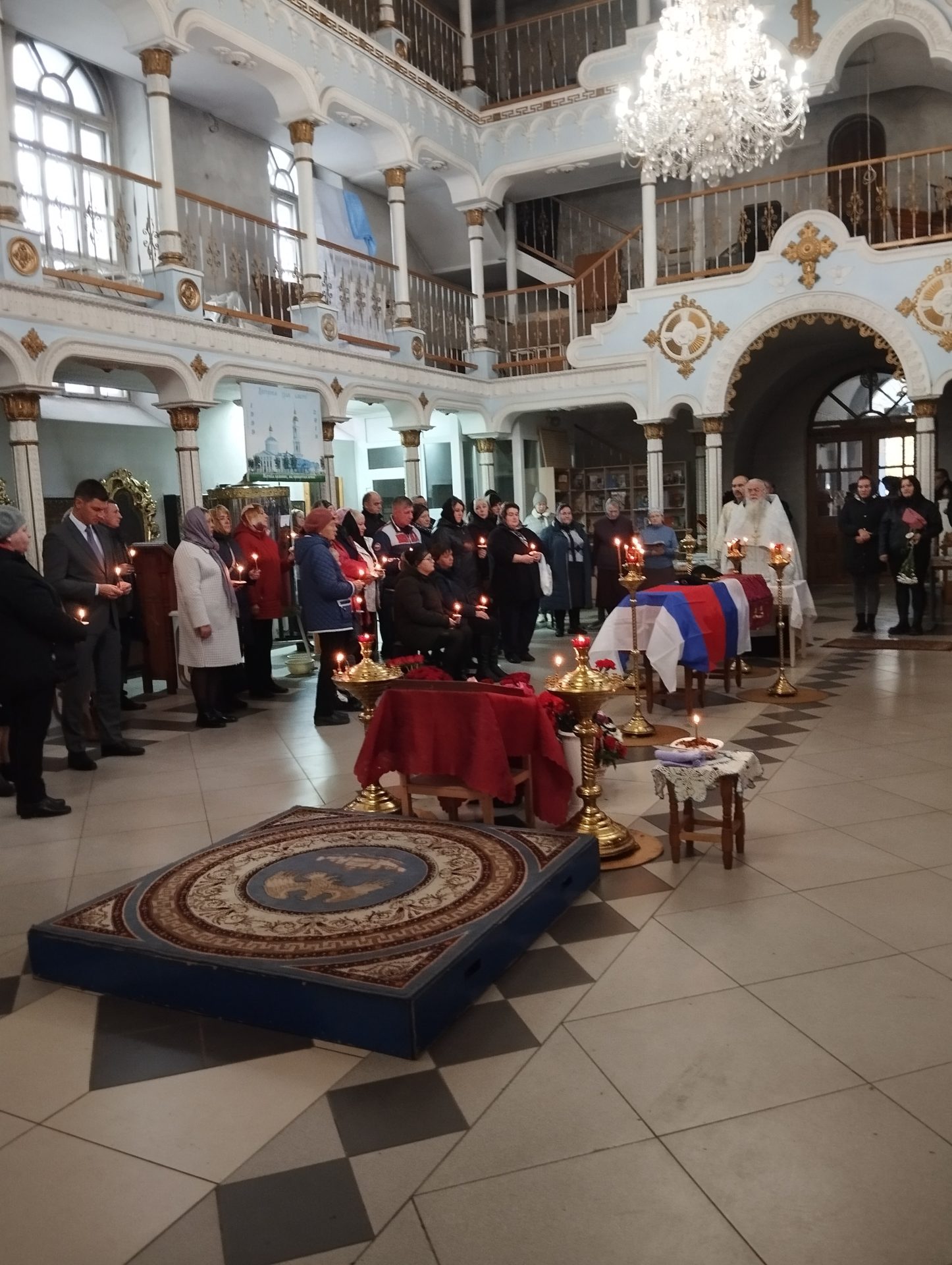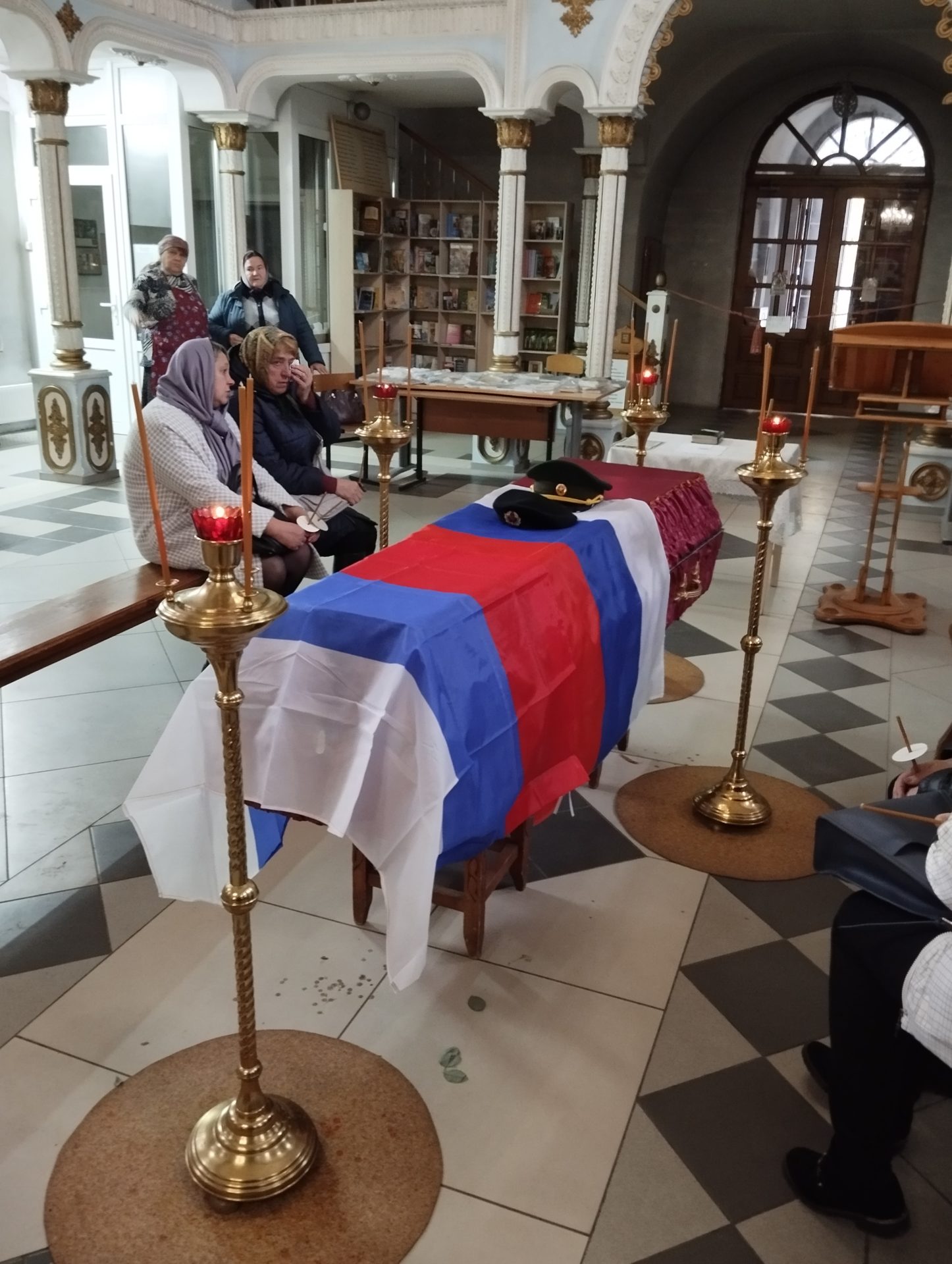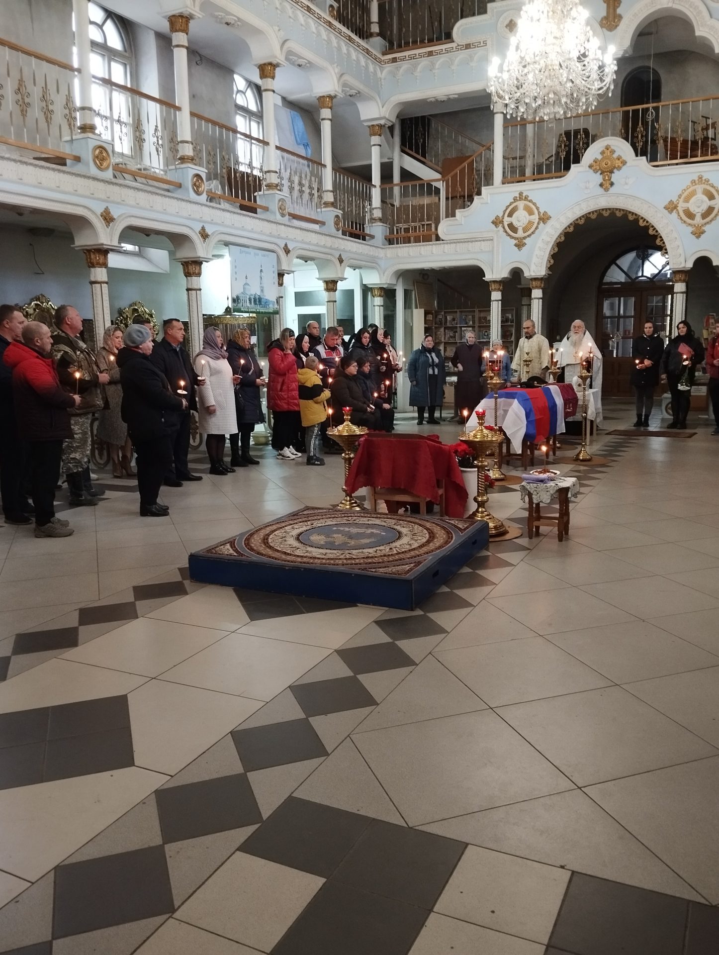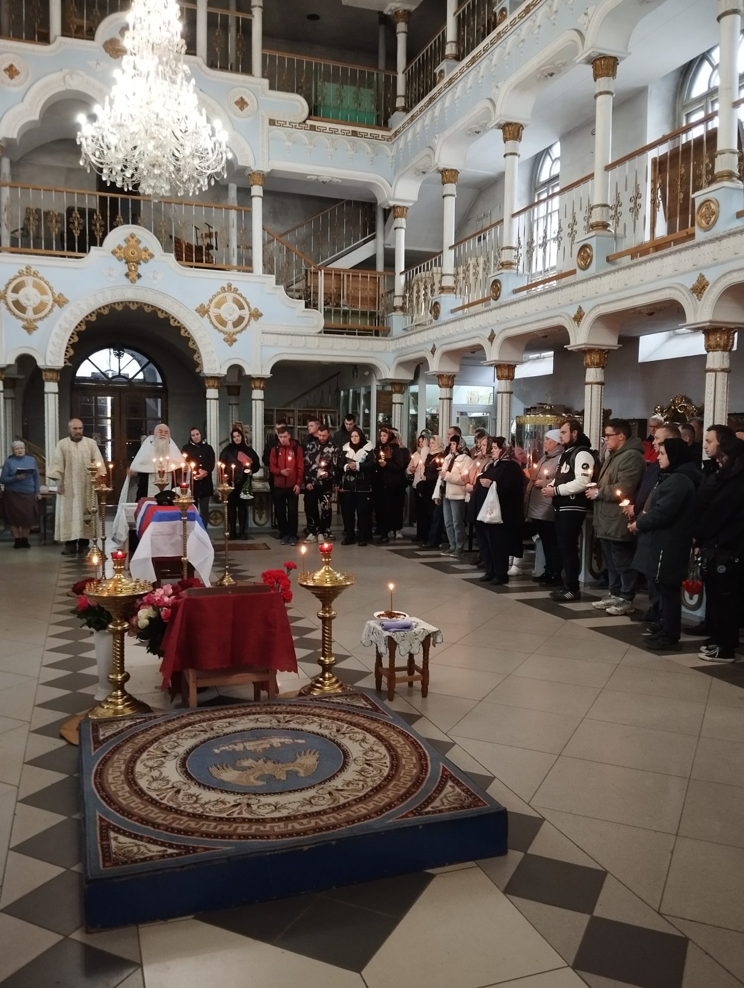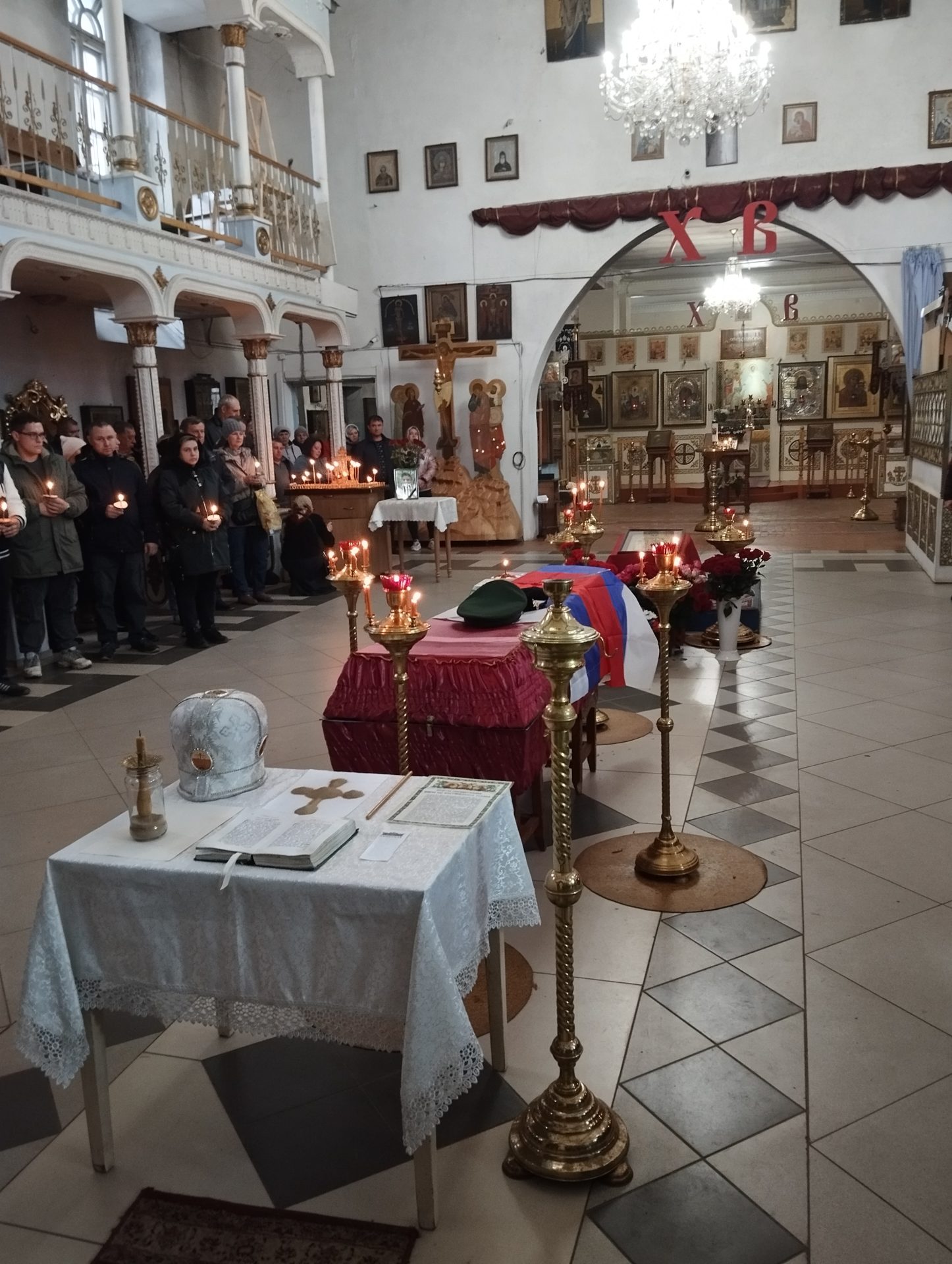 После чина отпевания со словами соболезнования к родным и близким обратился настоятель собора отец Алексий. Он также призвал помнить о подвиге воина Димитрия, молится о его душе в храме, и непременно памятуя каждый о своем последнем дне пребывания на Земле, как можно раньше, не откладывая, идти в храм: «Ведь все мы в руках Божиих, и Он любит нас и ждет всегда».