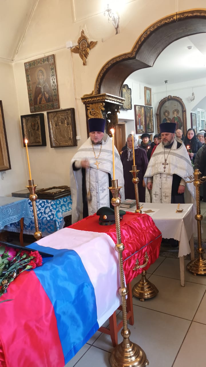 Отпевание воина в Свято-Лазаревском храме города Людиново