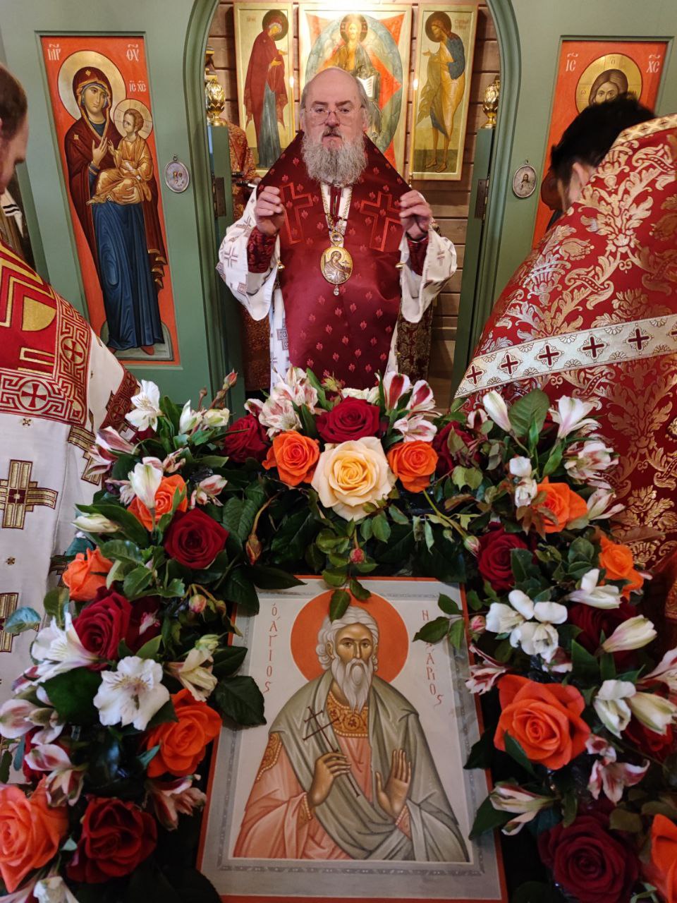Архипастырю сослужили: протоиерей Антоний Хатунцев, иеромонах Лука (Старостин), иерей Георгий Грачев и диакон Евгений Ковригин.