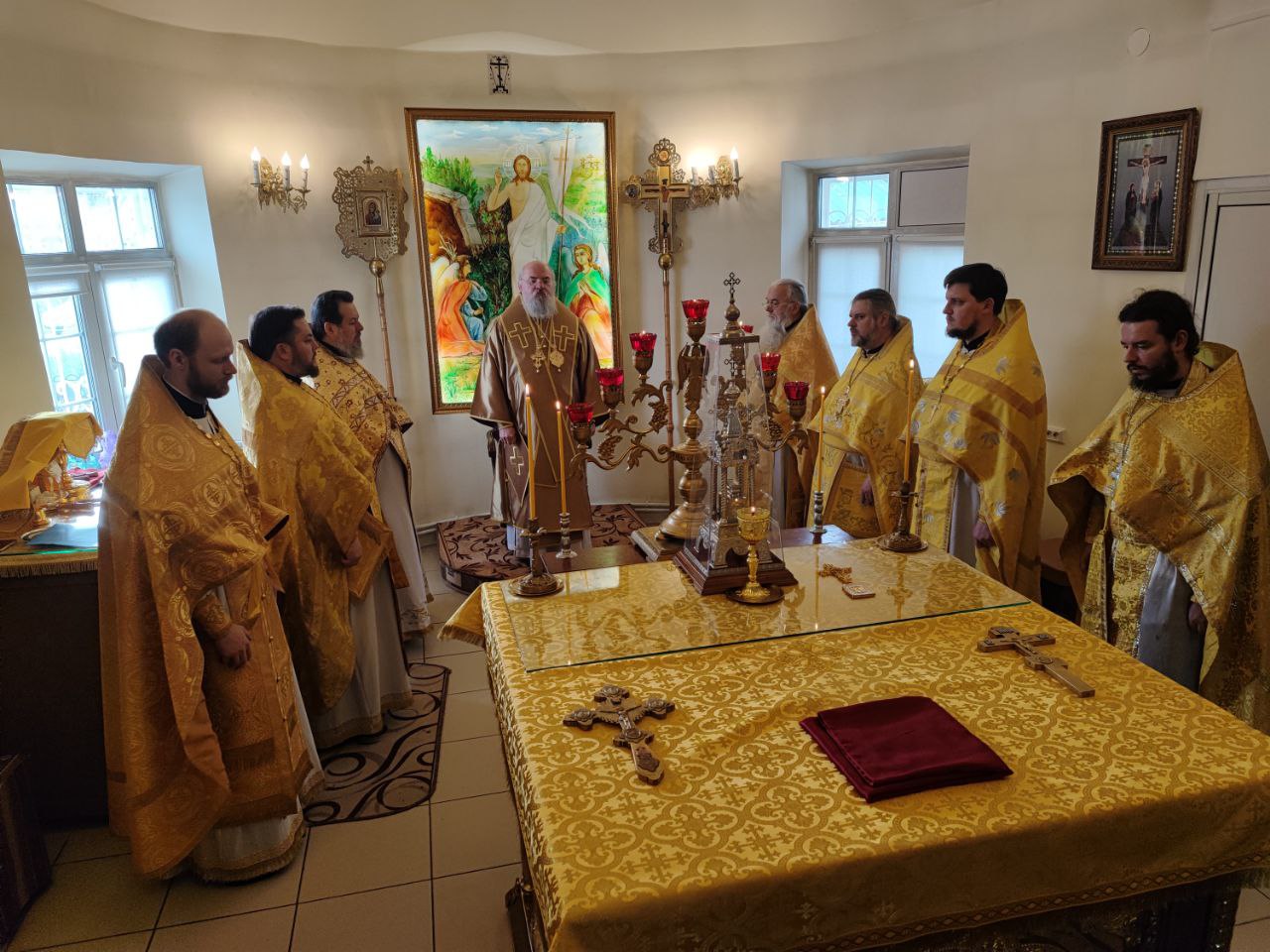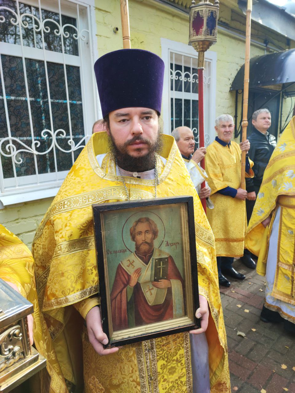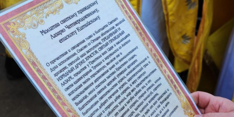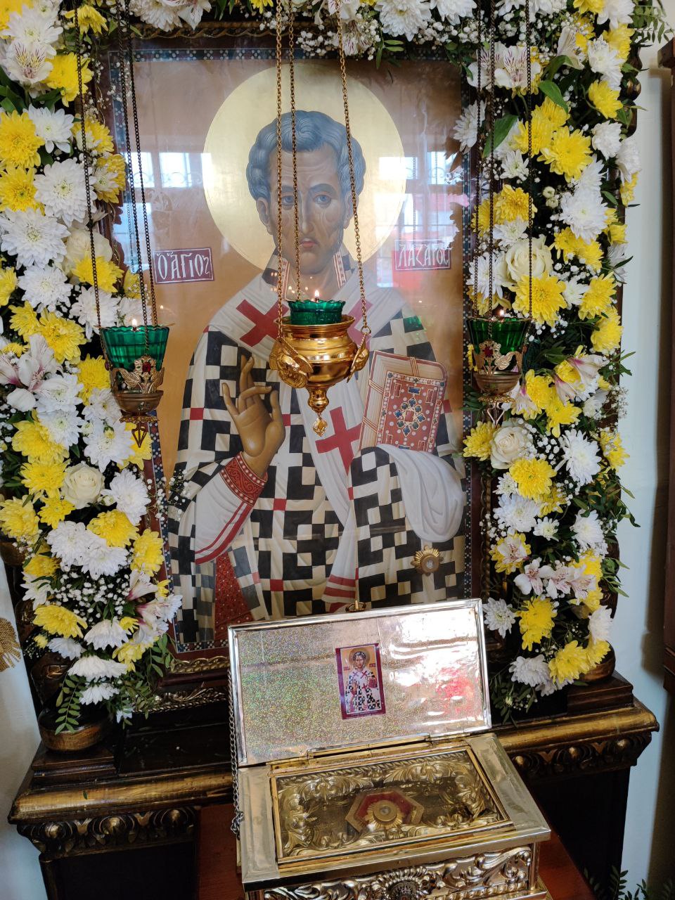 По отпусте литургии священнослужители совершили праздничный молебен пред образом святого праведного Лазаря и крестный ход вокруг храма, в заключении которого архипастырь вознес молитву святому.