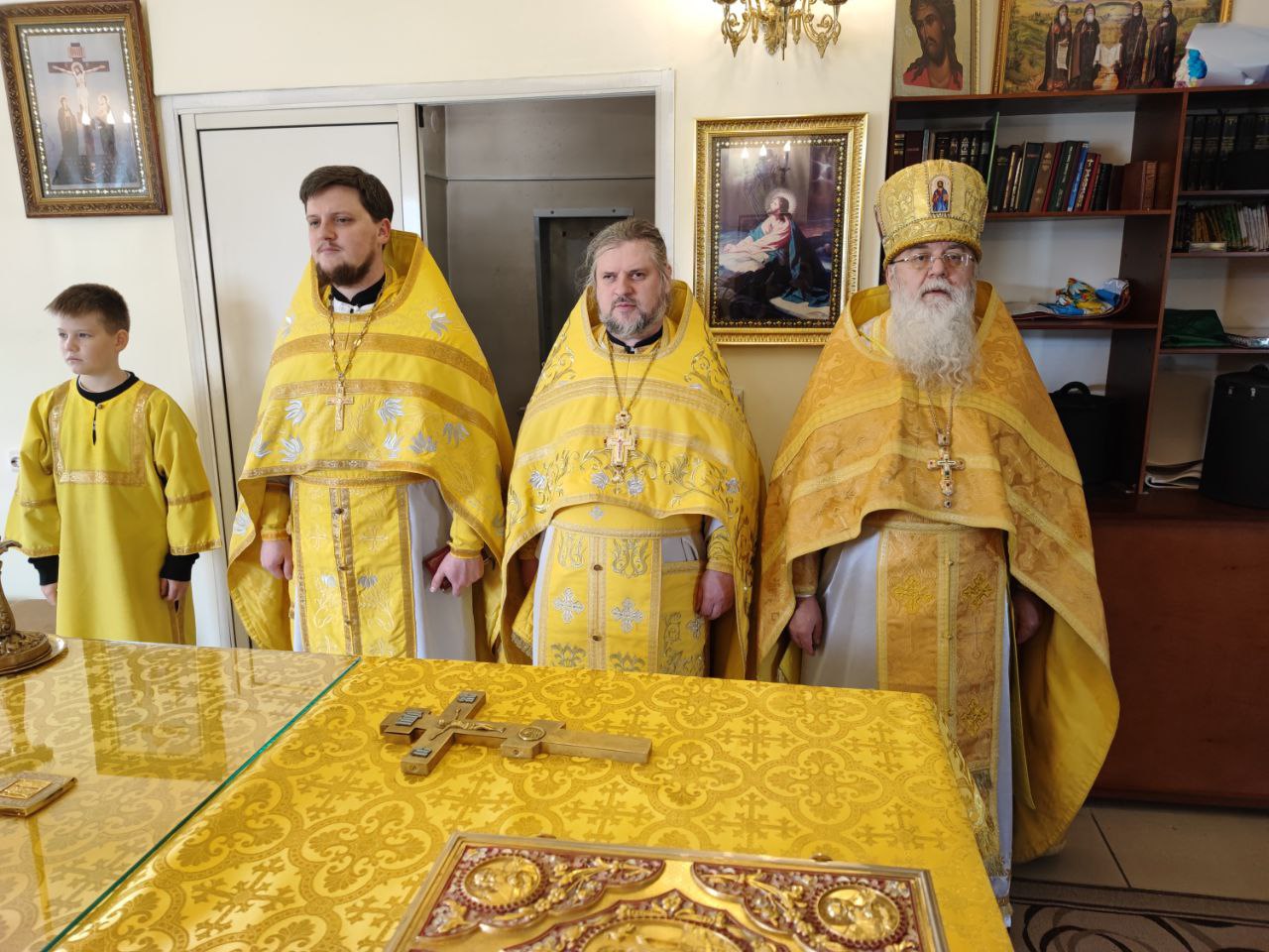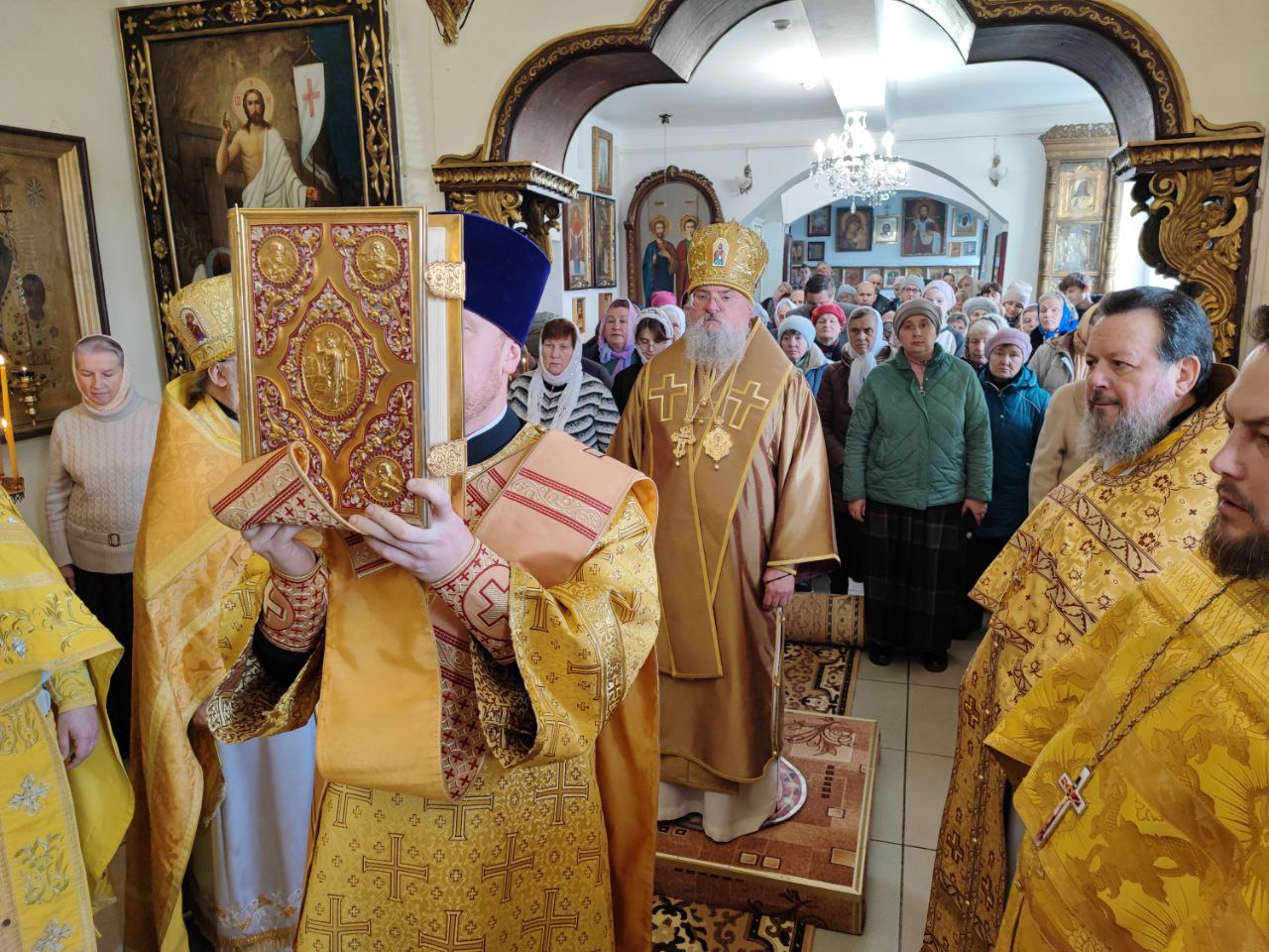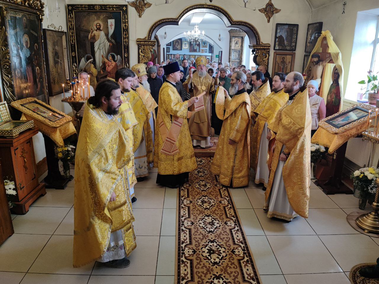 По отпусте литургии священнослужители совершили праздничный молебен пред образом святого праведного Лазаря и крестный ход вокруг храма, в заключении которого архипастырь вознес молитву святому.