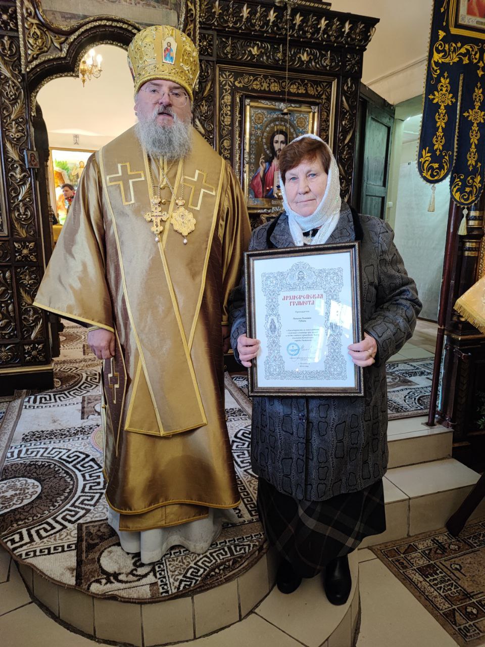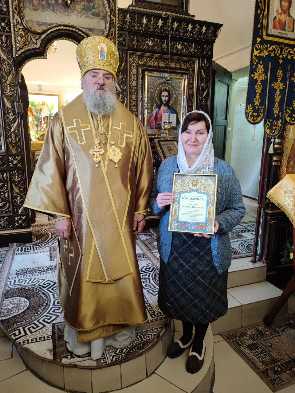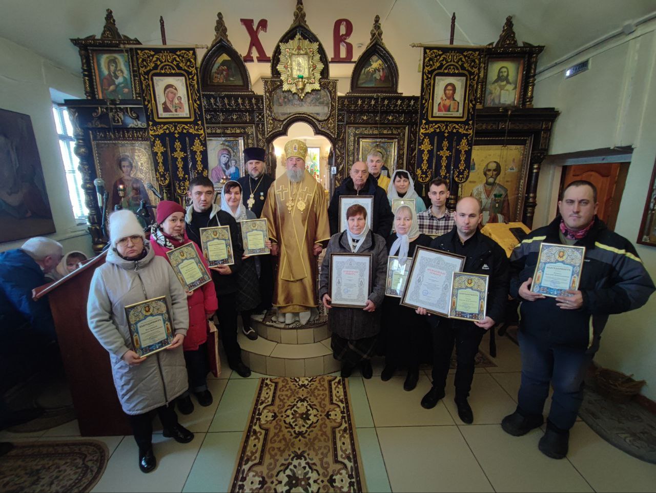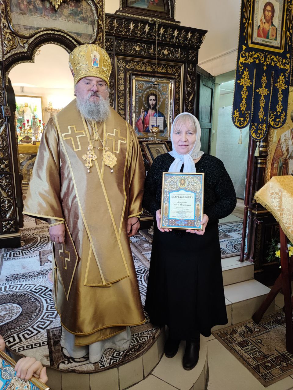 Благодарственных Архиерейских грамот и благодарственных писем были удостоены прихожане храма, внесшие вклад в благоукрашение и ремонт, а также многие годы усердно трудящиеся на приходе.