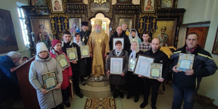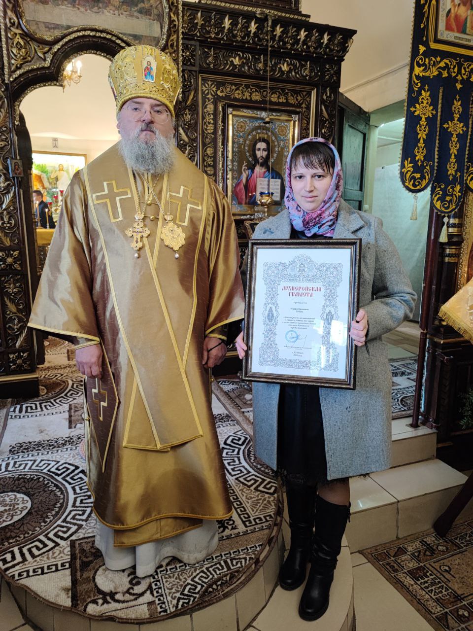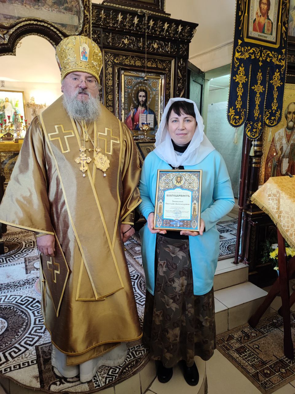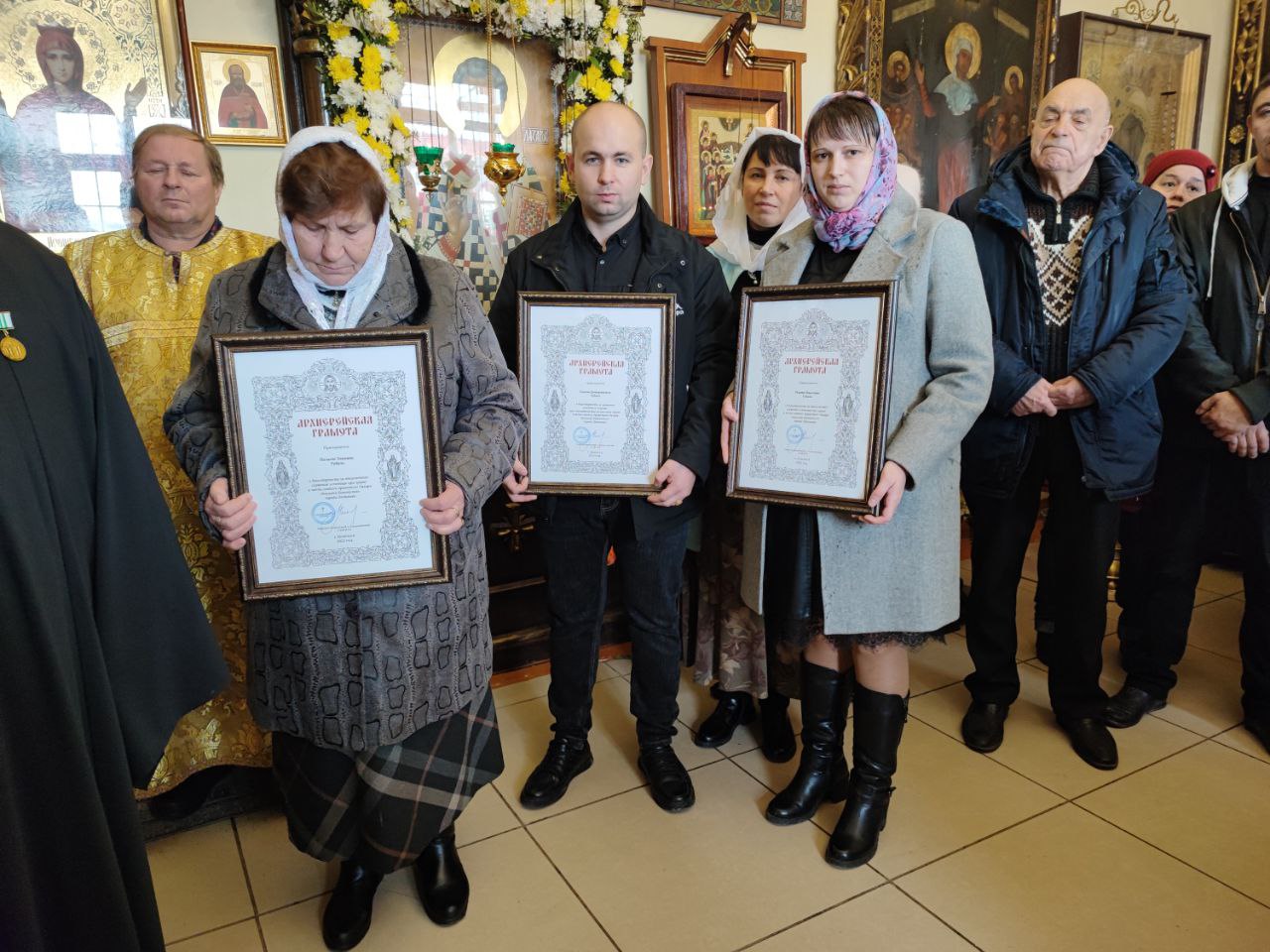 Благодарственных Архиерейских грамот и благодарственных писем были удостоены прихожане храма, внесшие вклад в благоукрашение и ремонт, а также многие годы усердно трудящиеся на приходе.