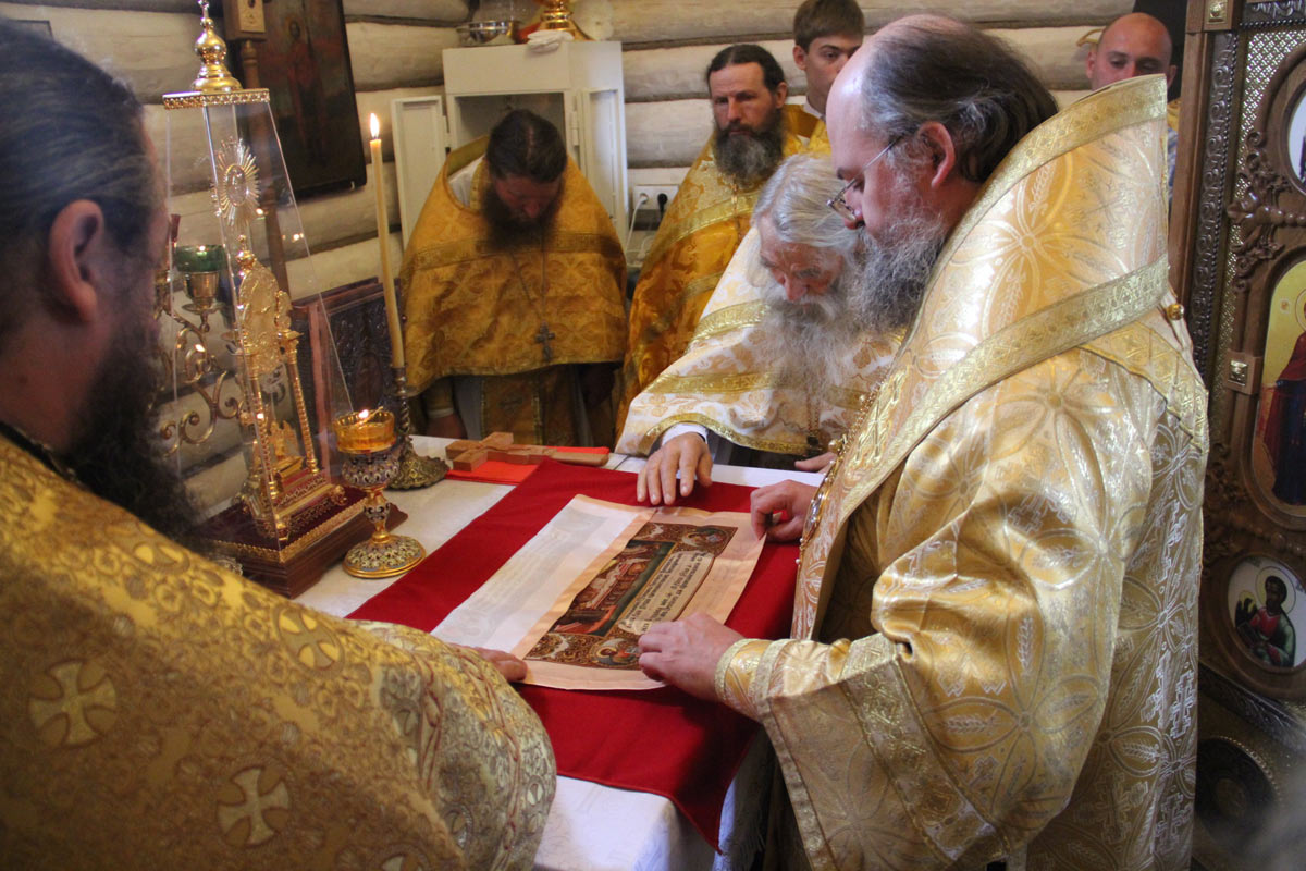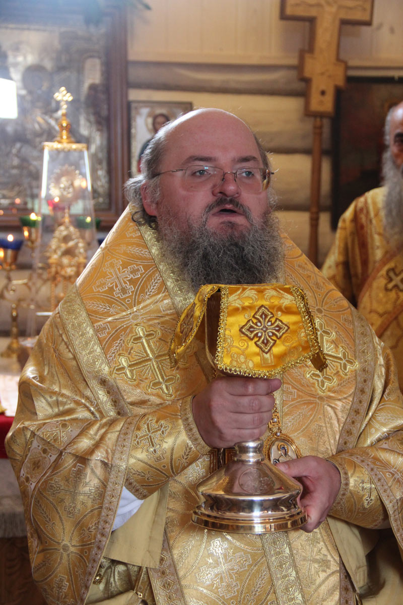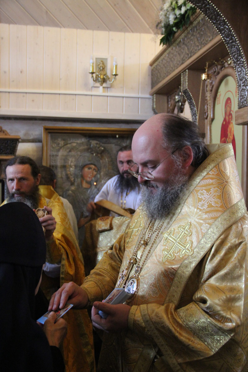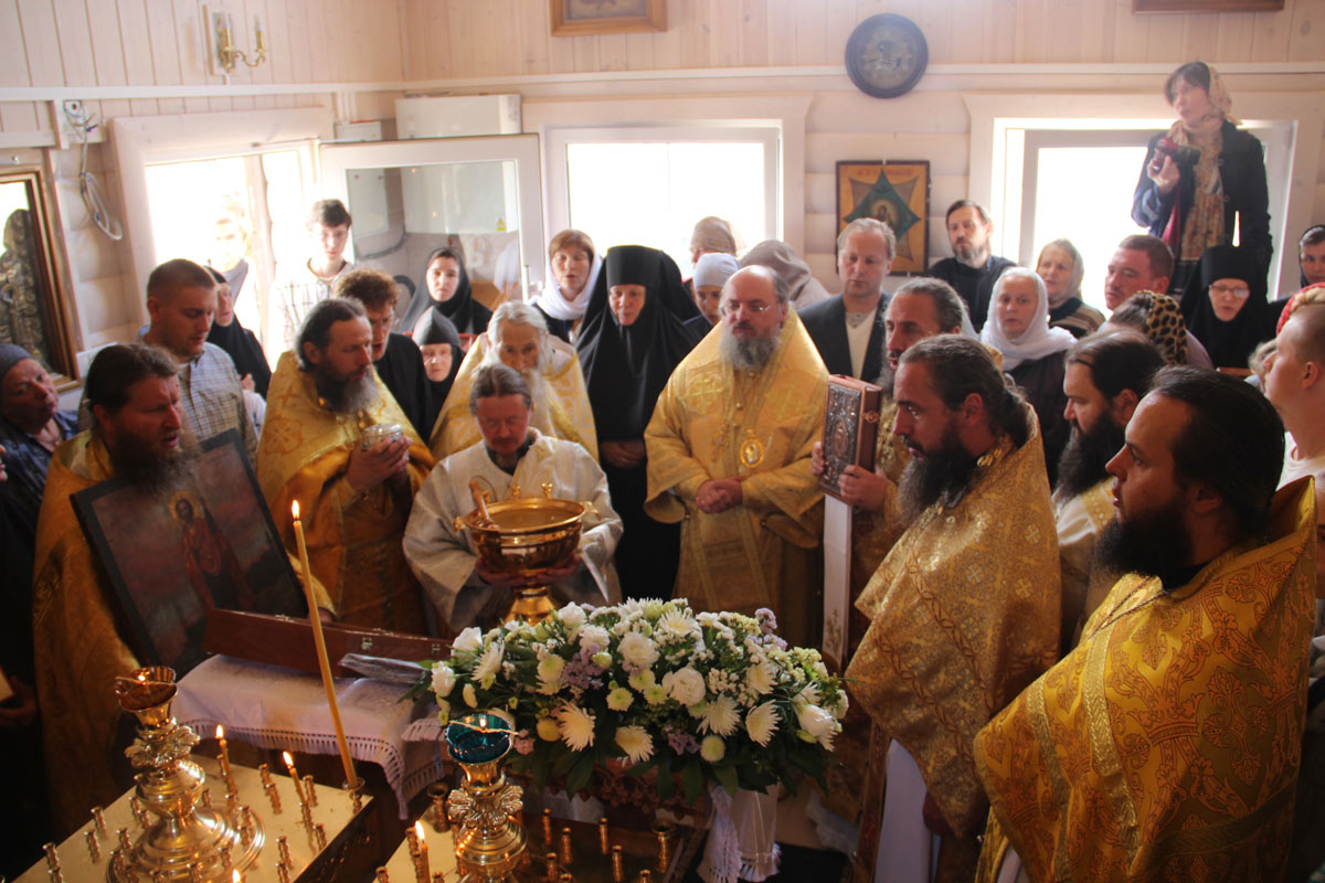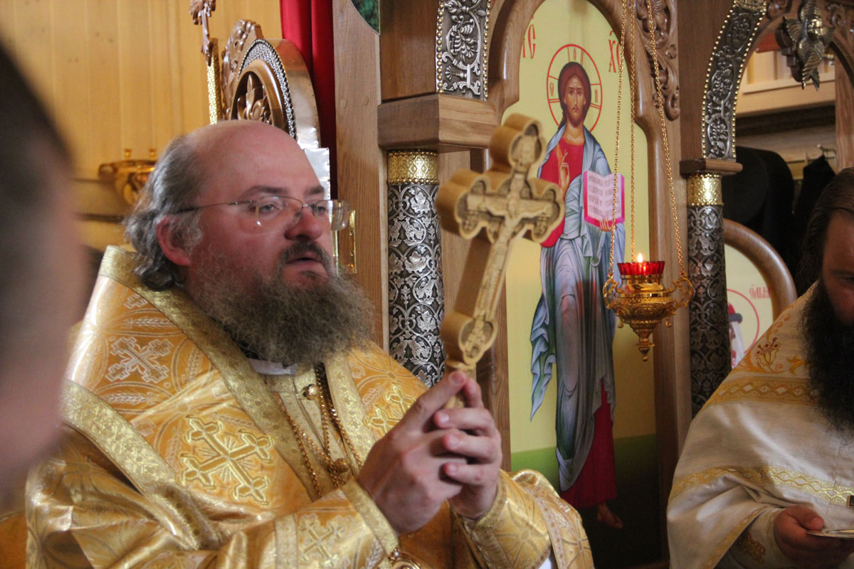 После отпуста литургии священнослужители совершили праздничный крестный ход вокруг храма, в завершении которого, вознеся молитву святой равноапостольной великой Российской княгине Ольге, владыка обратился к богомольцам с проповедью.